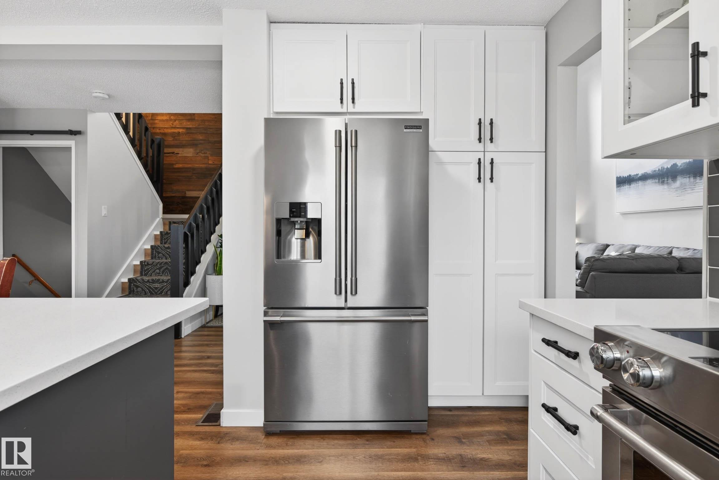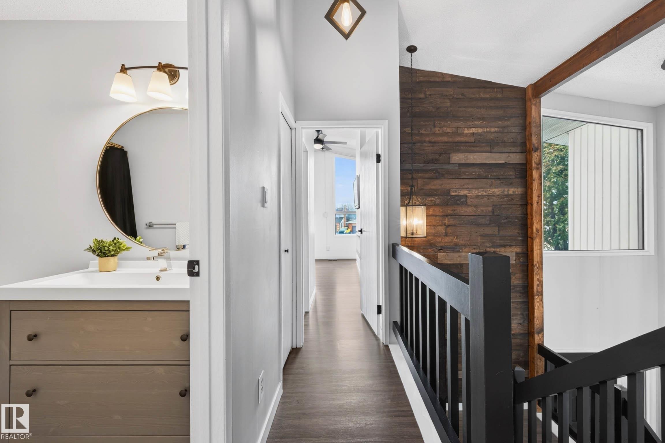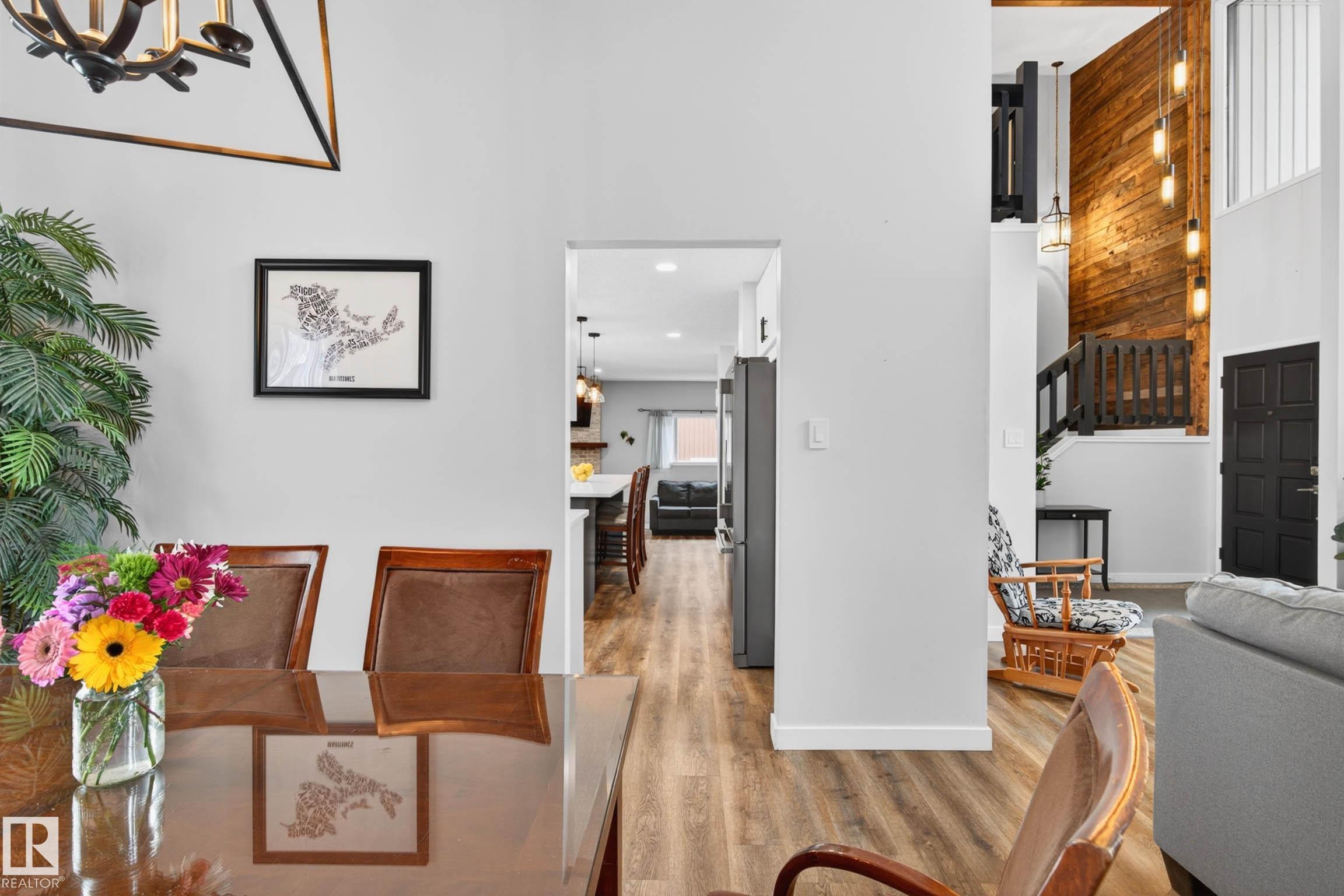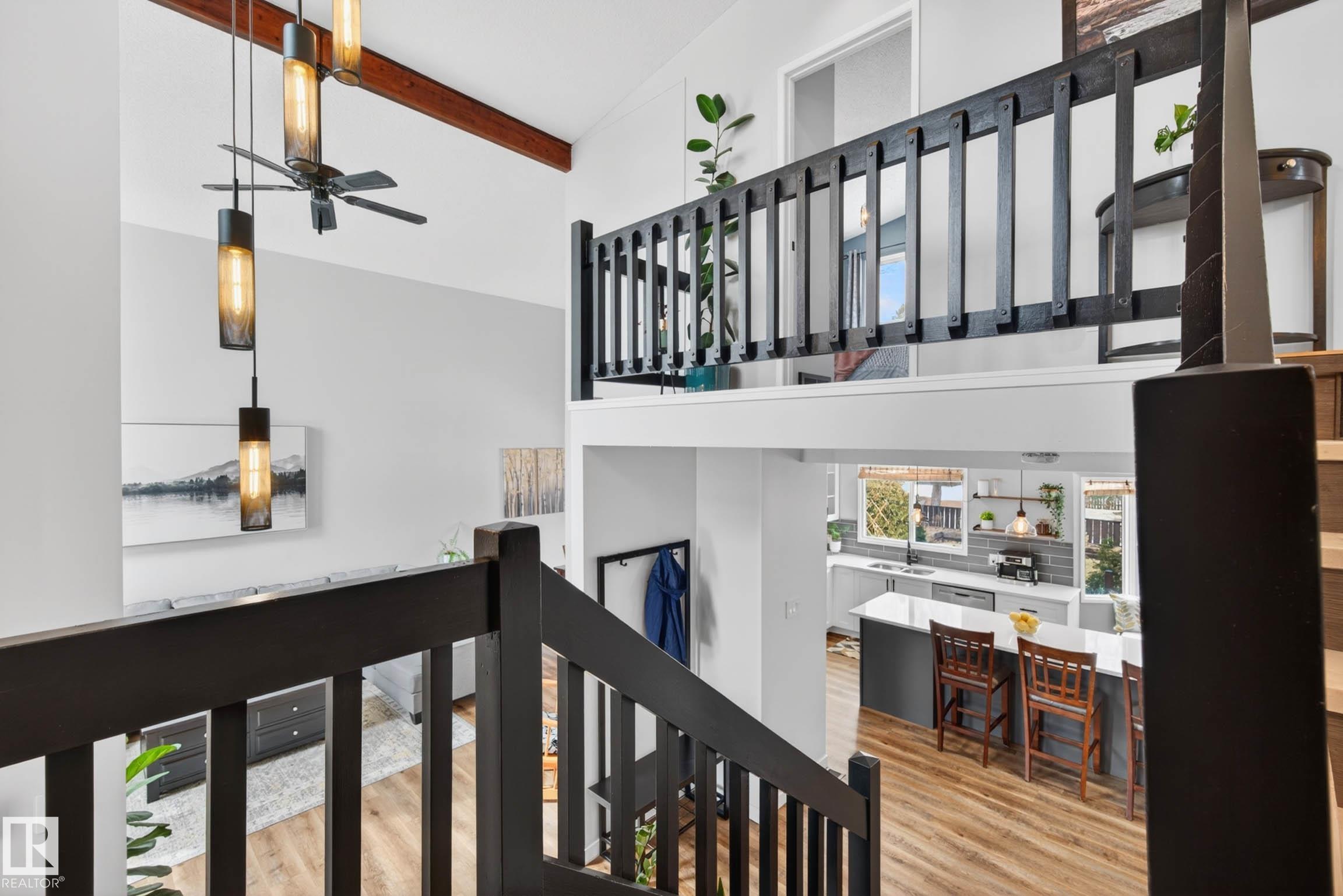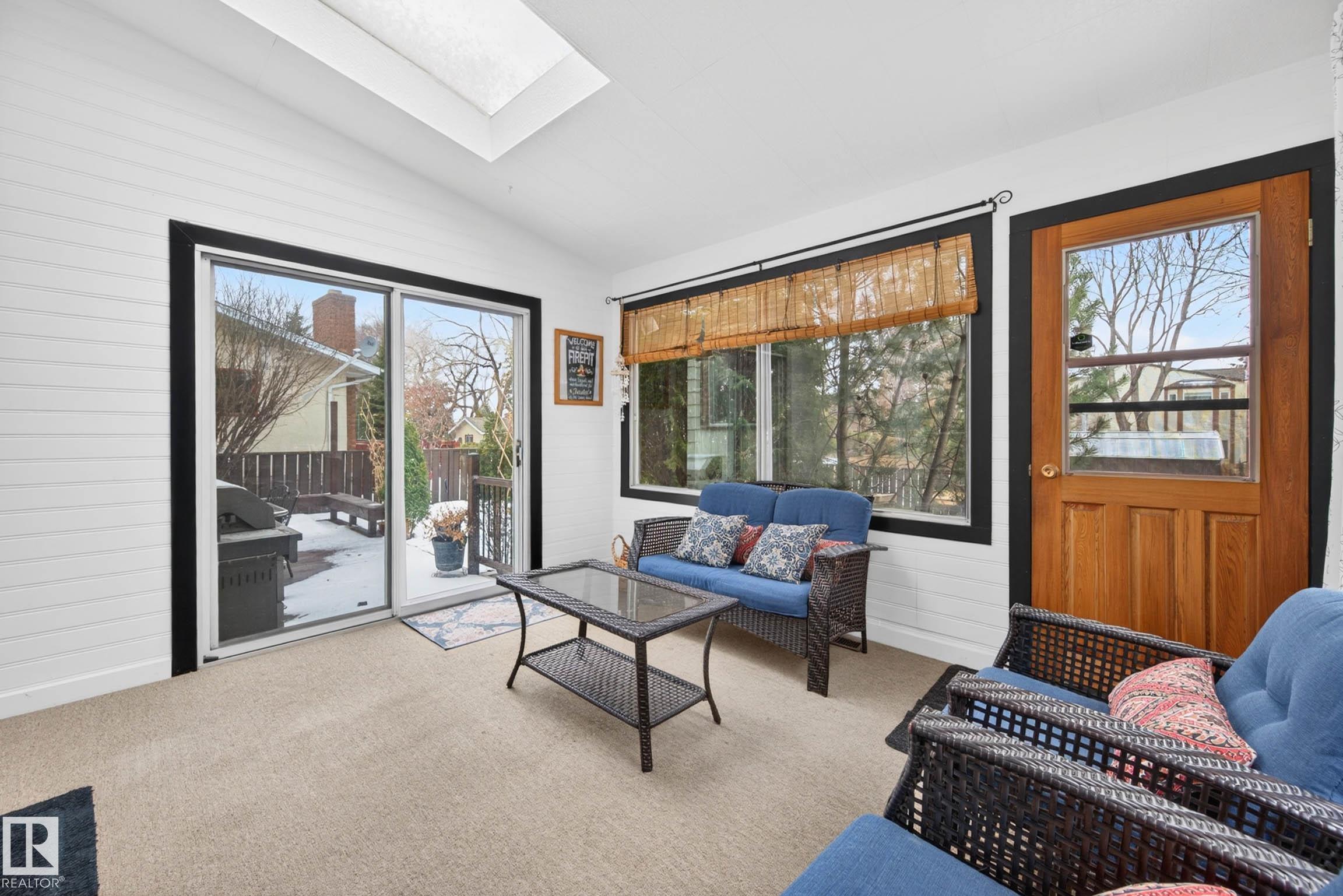Rare Find! Renovated Home with a Huge Private Yard in the Heart of Hillview! This extensively Renovated 2-storey offers 5 bedrooms and 3.5 bathrooms (with 4 bedrooms upstairs), combining space, function, and modern design. The main floor features a bright open-concept layout with a beautifully updated kitchen, ideal for both everyday living and entertaining. A stunning 23-ft vaulted ceiling creates an impressive sense of space and natural light. The fully finished basement adds even more versatility with additional living space, bedroom, and bathroom. Step outside to your private, landscaped backyard with mature trees, backing directly onto a peaceful walking trail. Heated Double Garage and bonus Sun Room. Located less than a 10-minute walk to the Millbourne/Woodvale LRT, providing quick access to Downtown Edmonton and Grey Nuns Hospital. A rare opportunity to own a fully renovated family home with this level of space and location at an exceptional price!