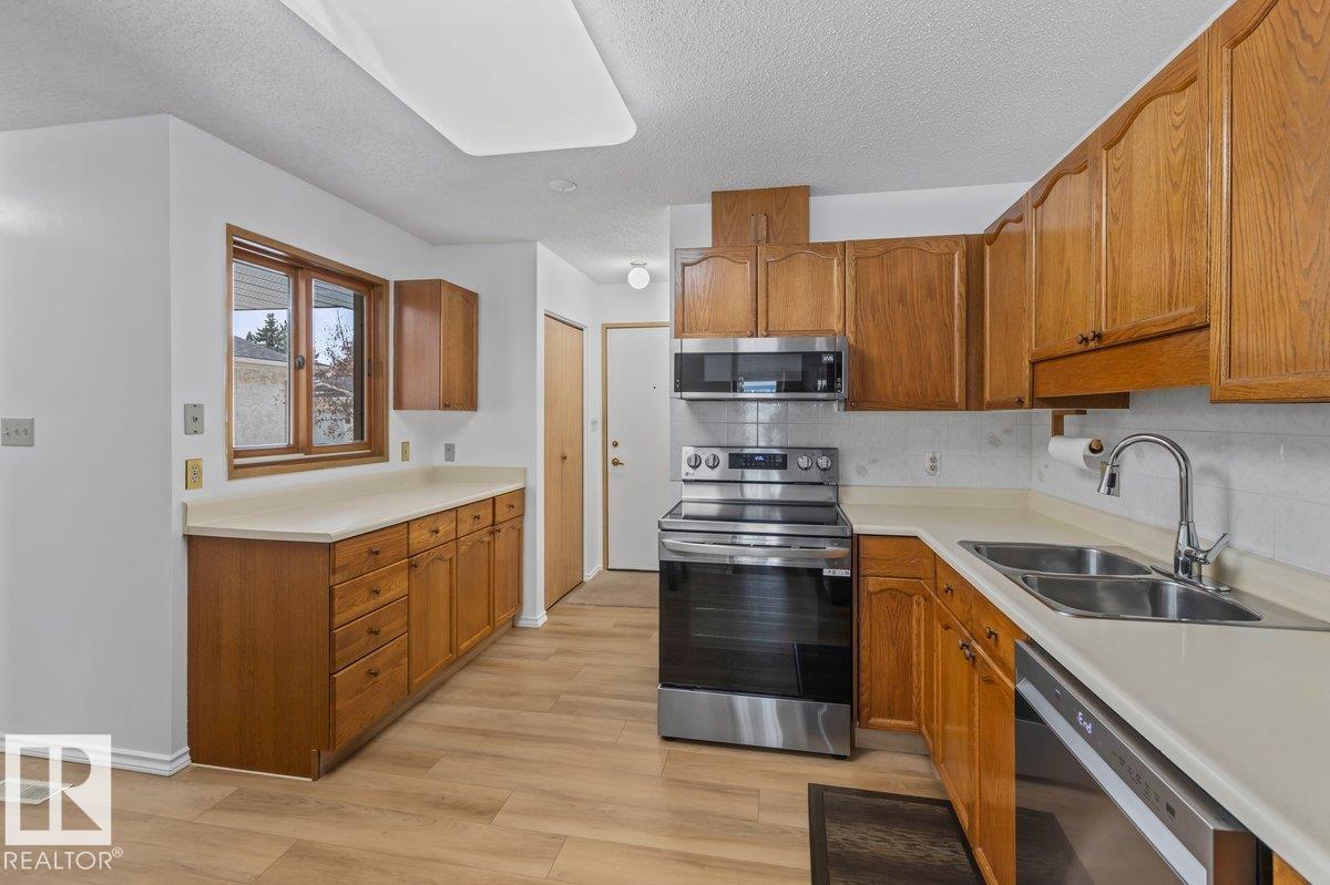 Welcome to Knottwood Village, a well maintained 45+ adult living community ideally located just minutes from the Anthony Henday & close to shopping, restaurants, & Costco. Step inside to a bright & functional layout featuring a large primary bedroom, a spacious living room filled with natural light, a generous dining area, & a kitchen with ample cupboard & counter space. The fully finished basement adds excellent flexibility with room for a rec space, hobbies, or overnight guests. Extensive 2025 upgrades include a new refrigerator, stove, over the range microwave, PEX water lines, upgraded attic insulation, hot water tank, furnace, air conditioner, air filter, humidifier, Ecobee thermostat, & luxury vinyl flooring throughout. Enjoy the covered back deck, perfect for relaxing or entertaining. The clubhouse offers a games area, library, party room, hot tub, & indoor pool. Complete with an attached garage & central vacuum, this move in ready home offers comfort & convenience in a welcoming community.