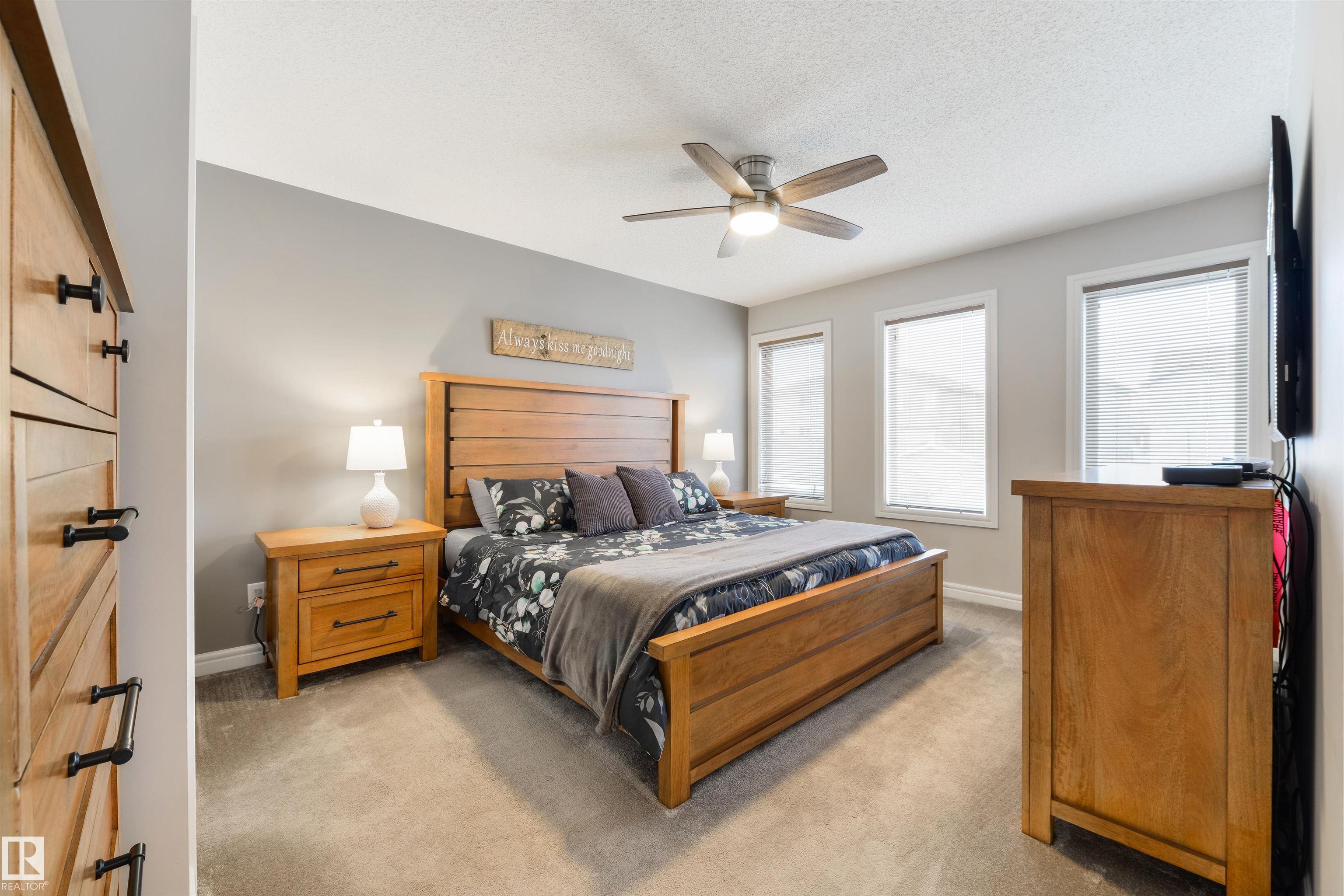 Fantastic layout w/ room for the whole crew! Extensively updated w/ Govee exterior lighting, central A/C, fresh paint, new furnace (2024), & new HWT (2026), the main floor features a dedicated office/den, 2pc bath off the back hall, spacious living room, & a functional kitchen w/ stainless appliances, centre island w/ raised breakfast bar, corner pantry, & a separate dinette. Upstairs showcases new carpeting & 3 bedrooms incl. French doors leading into a king-sized owner's suite w/ walk-in closet & 4pc ensuite, while the fully-finished basement adds a rec room, workout space, 4th bedroom, and laundry & storage area. The exterior is complete w/ a welcoming front porch, HEATED double-attached garage, new 2-tiered exterior deck w/ LED lighting, low-maintenance landscaping w/ new artificial turf (2025), & a highly desirable WEST-FACING backyard for afternoon and evening sun. W/in walking distance to playgrounds, trails, shopping, & Jubilee Park, this home is move-in ready w/ all the big-ticket items complete!