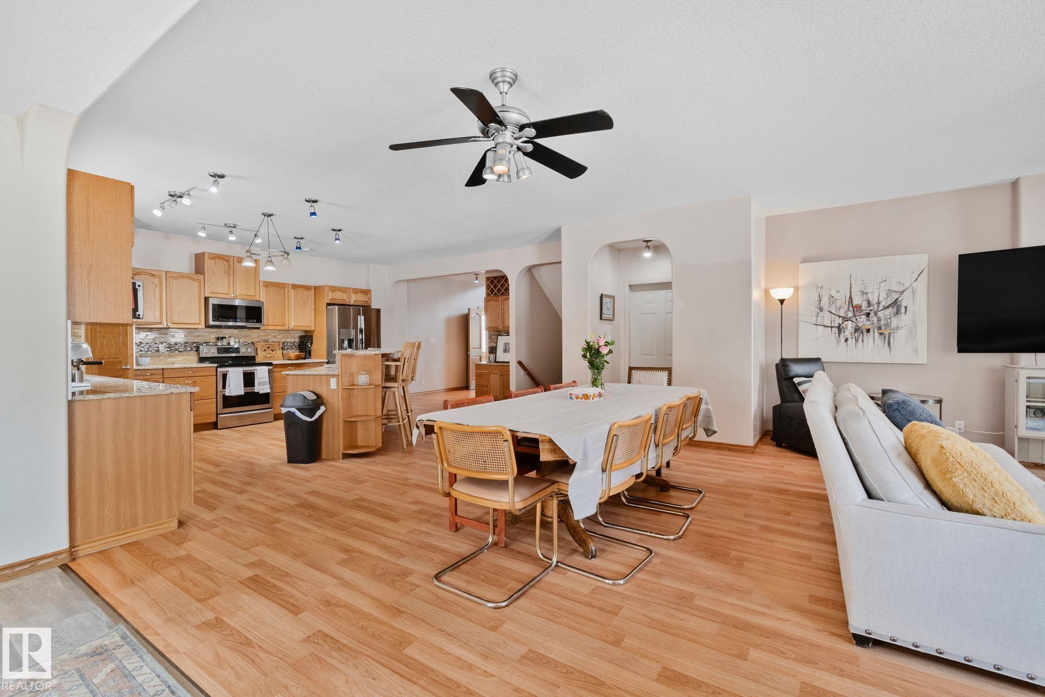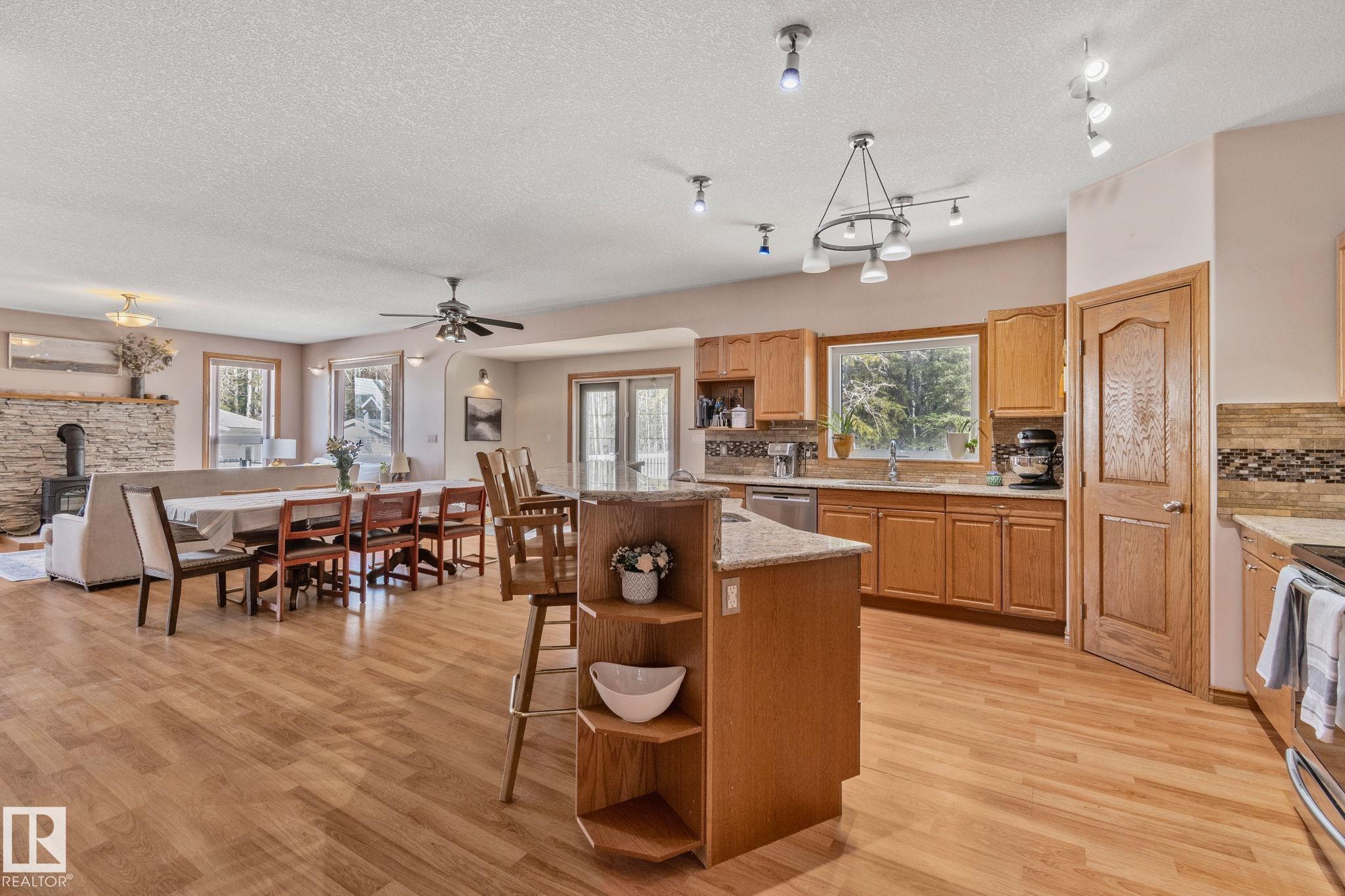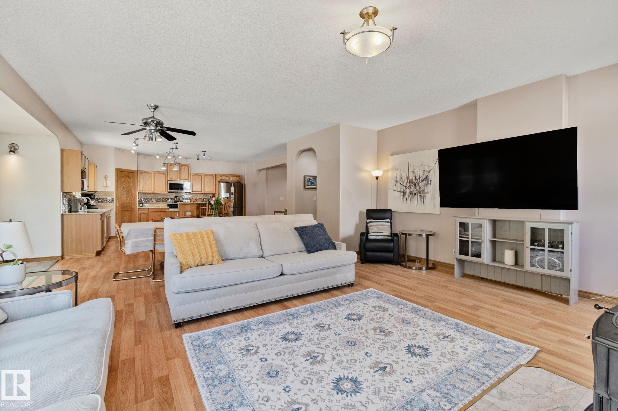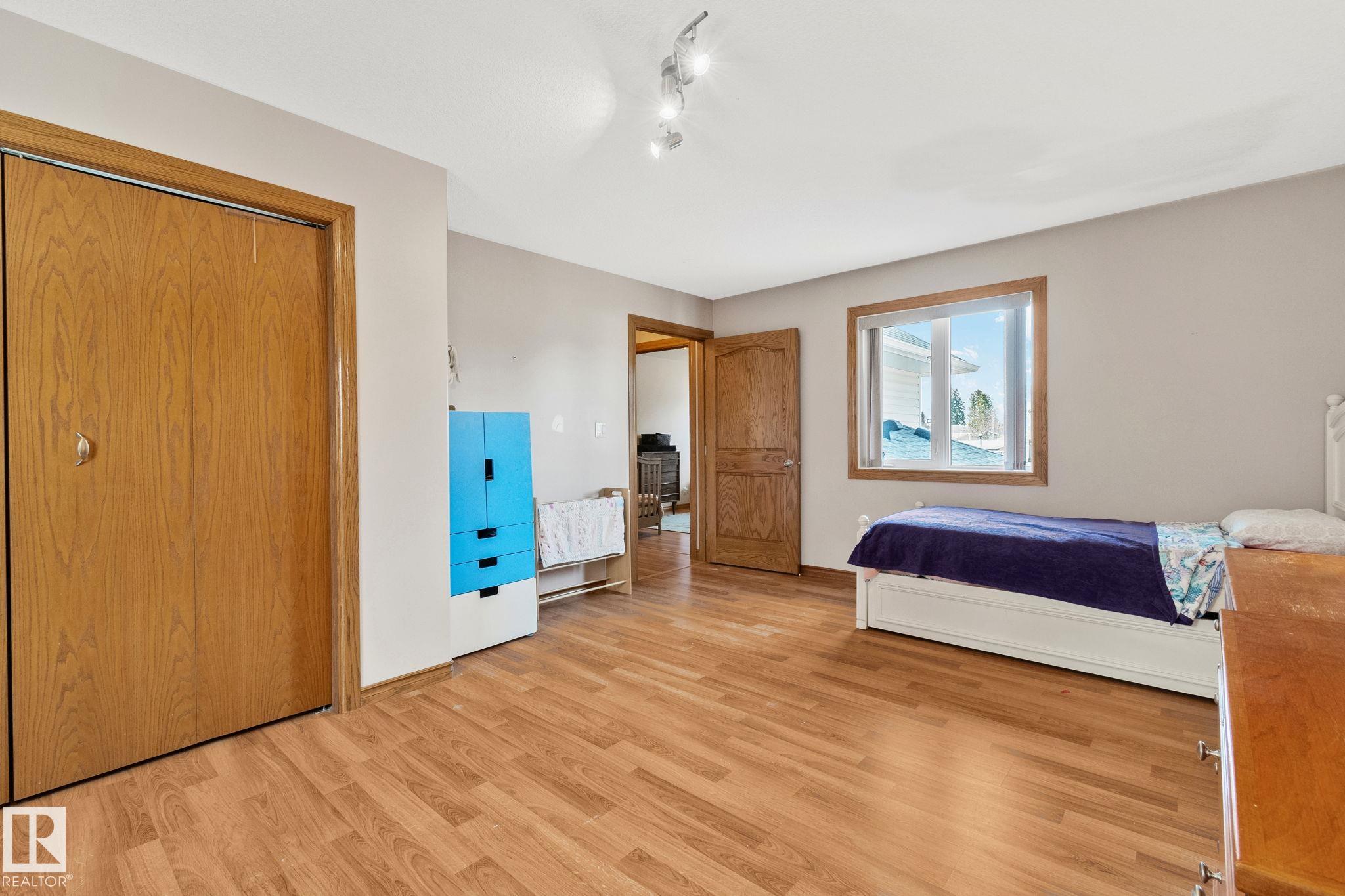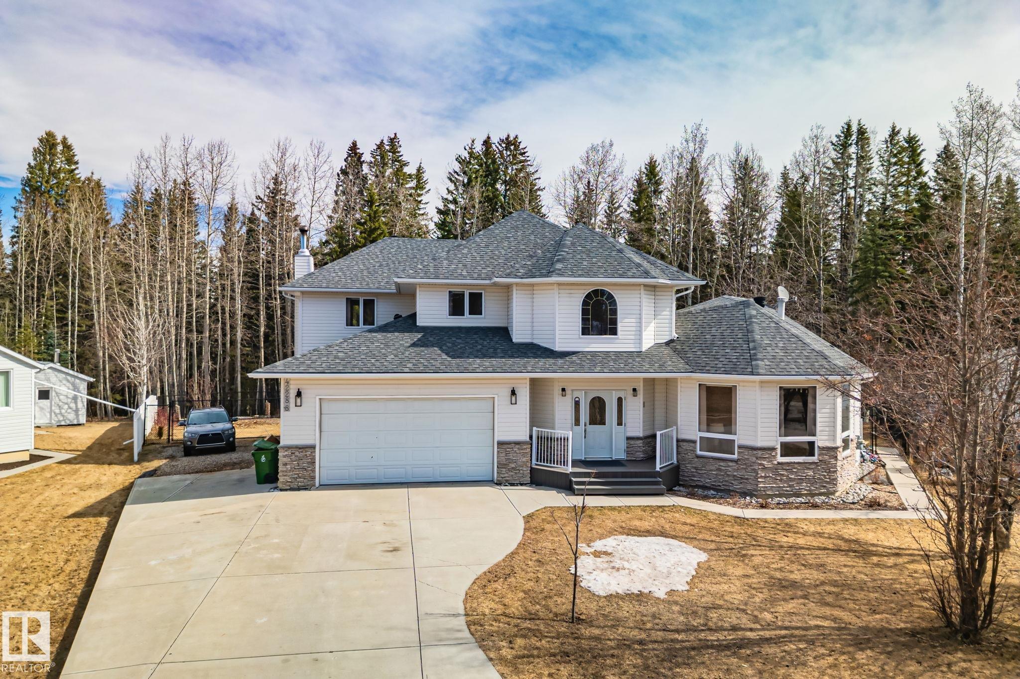 Welcome to 4228 8th Avenue, located in a quiet cul-de-sac on a 0.31-acre lot backing onto a greenbelt. This well-maintained home offers over 4,600 sq ft of living space with 6 large bedrooms and 3.5 bathrooms, including a fully finished basement with 2 bedrooms, a full bath, and a family/rec area. The main floor features an open-concept layout with a bright kitchen, granite countertops, oak cabinetry, stainless steel appliances, and a spacious dining area. A separate rear entrance leads to a self-contained guest space with its own kitchen, bedroom, bathroom, and living area. Upstairs, the primary bedroom includes a private balcony, walk-in closet with additional laundry, and a 5-piece ensuite.Outside offers a large fenced backyard, attached garage, RV parking, and two decks. Ideally located within walking distance to schools and a short drive to the upcoming recreation centre.