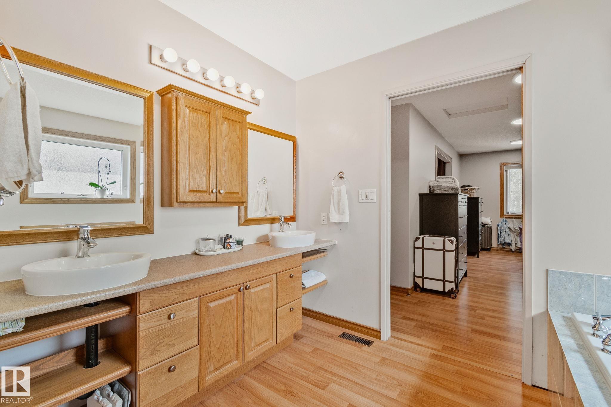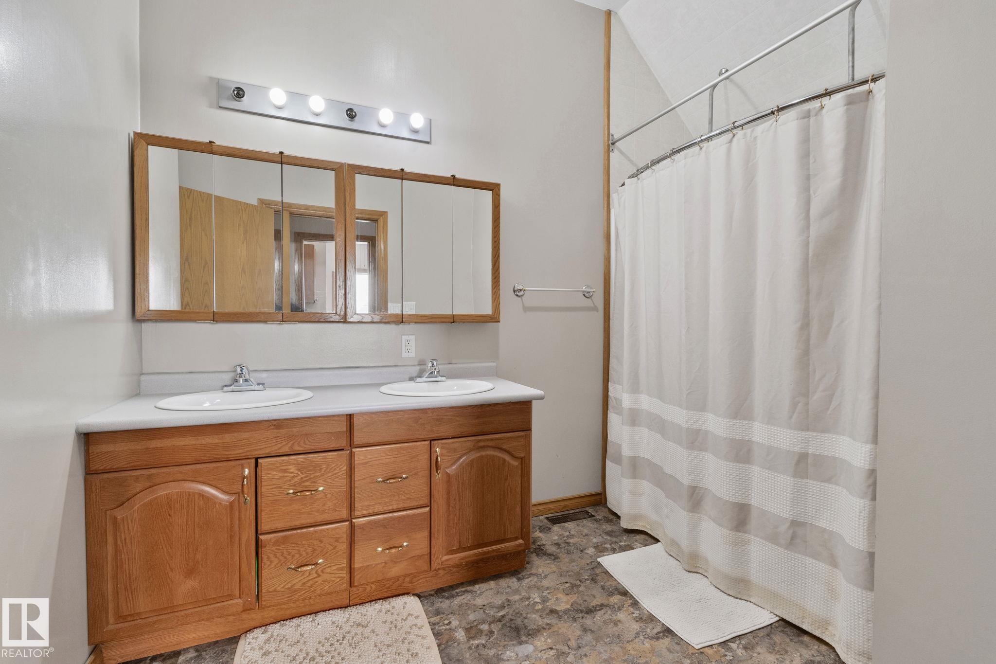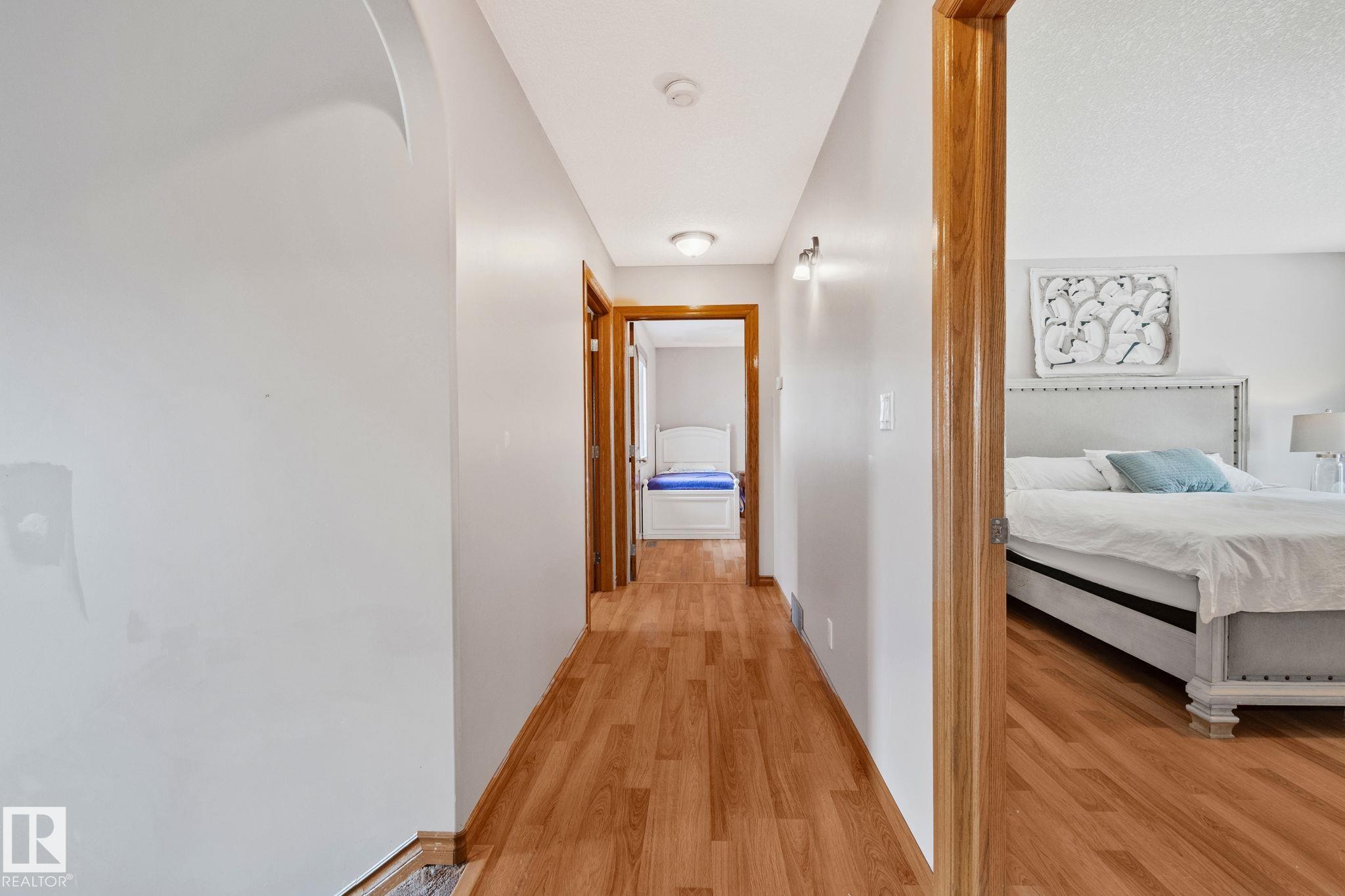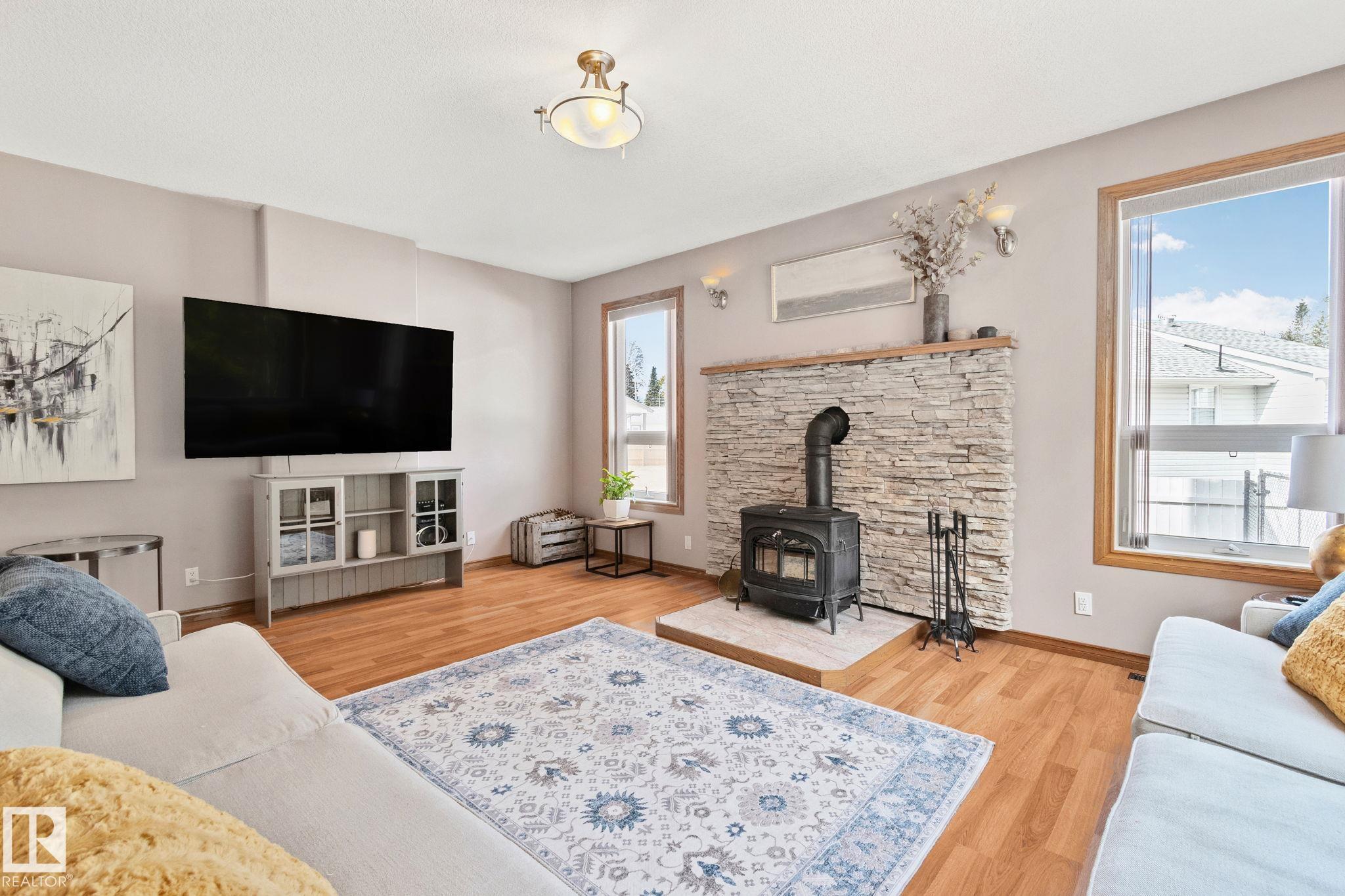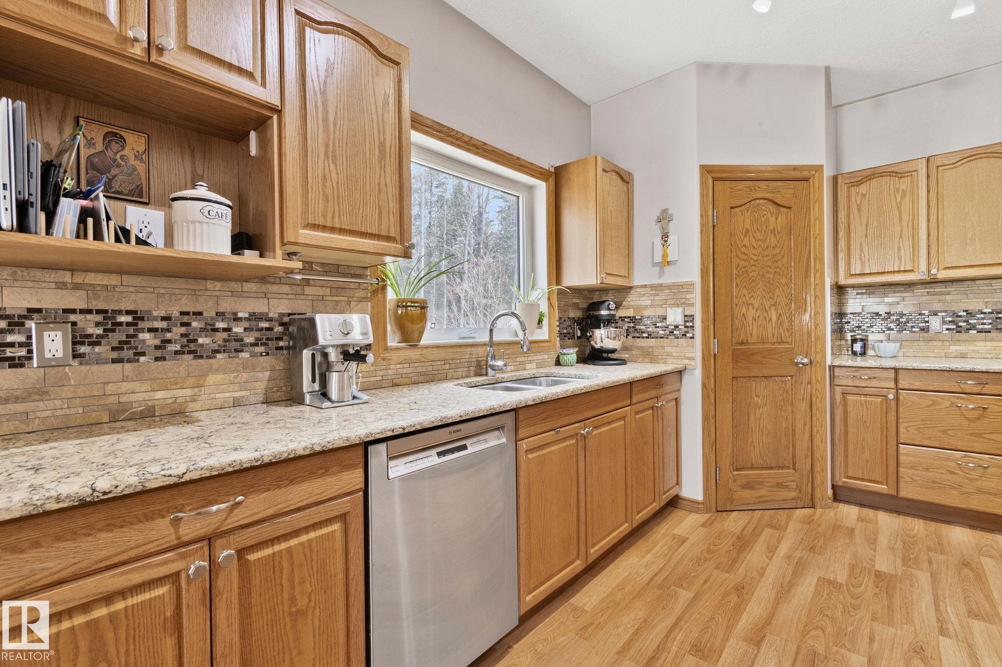 Welcome to 4228 8th Avenue, located in a quiet cul-de-sac on a 0.31-acre lot backing onto a greenbelt. This well-maintained home offers over 4,600 sq ft of living space with 6 large bedrooms and 3.5 bathrooms, including a fully finished basement with 2 bedrooms, a full bath, and a family/rec area. The main floor features an open-concept layout with a bright kitchen, granite countertops, oak cabinetry, stainless steel appliances, and a spacious dining area. A separate rear entrance leads to a self-contained guest space with its own kitchen, bedroom, bathroom, and living area. Upstairs, the primary bedroom includes a private balcony, walk-in closet with additional laundry, and a 5-piece ensuite.Outside offers a large fenced backyard, attached garage, RV parking, and two decks. Ideally located within walking distance to schools and a short drive to the upcoming recreation centre.