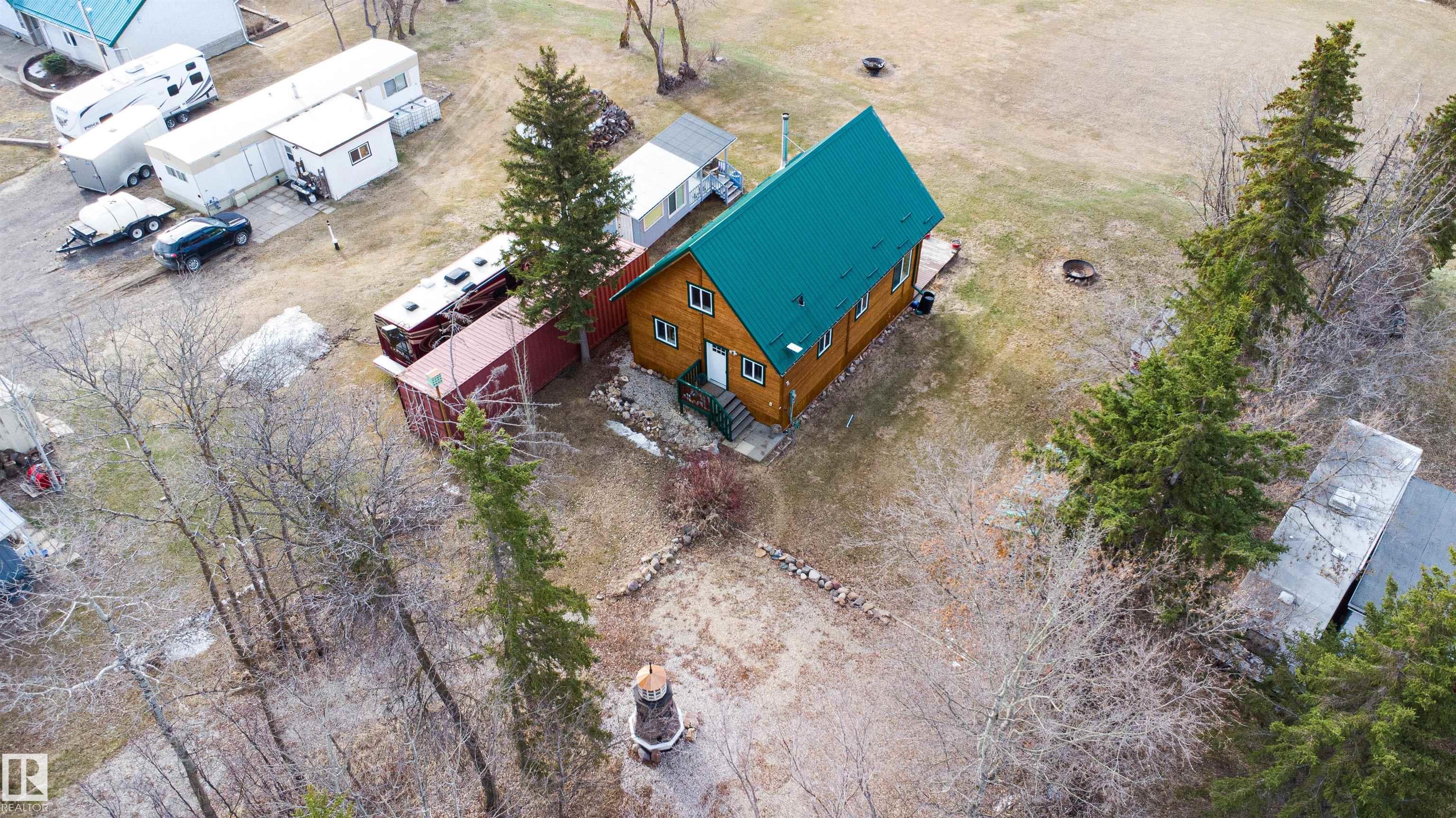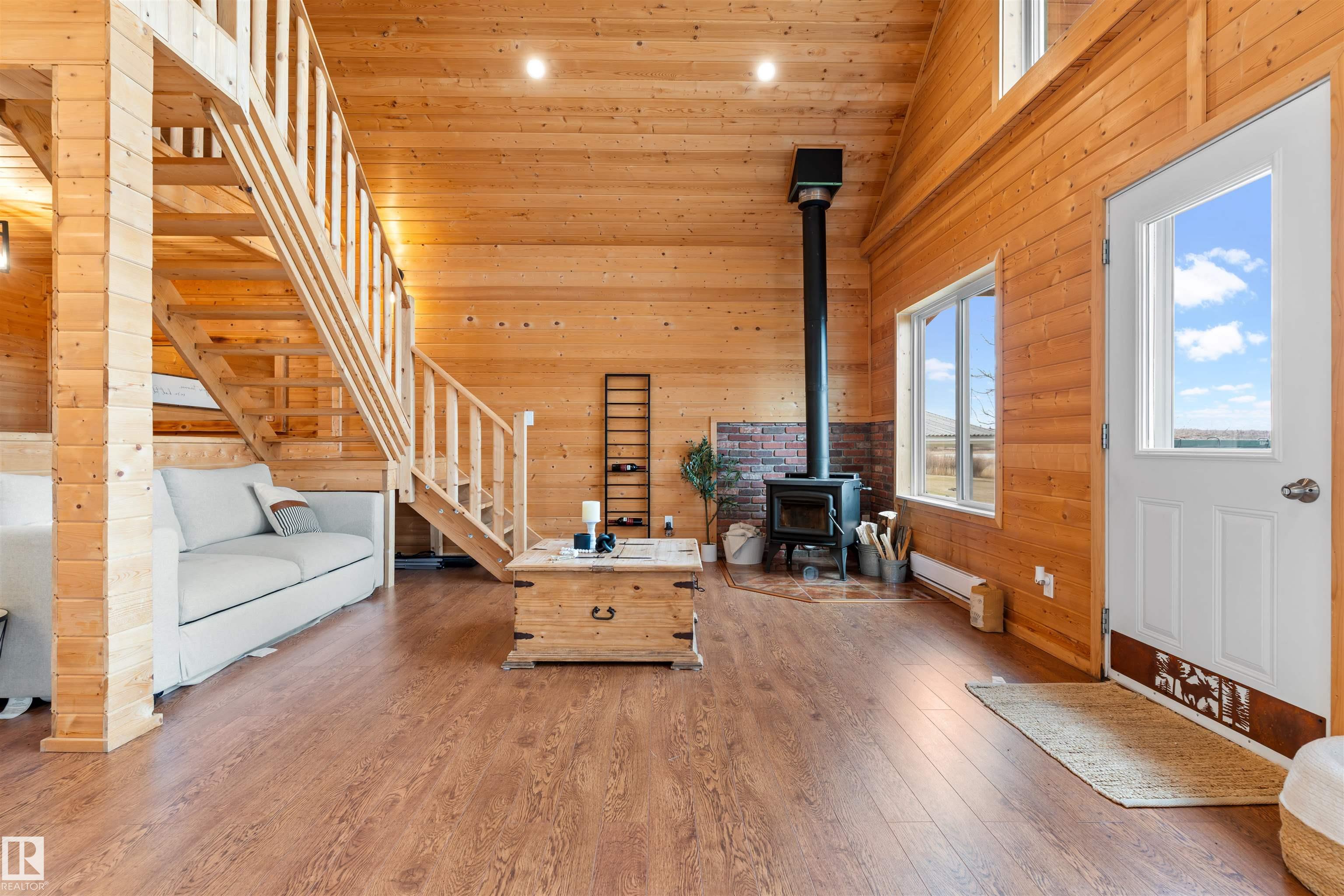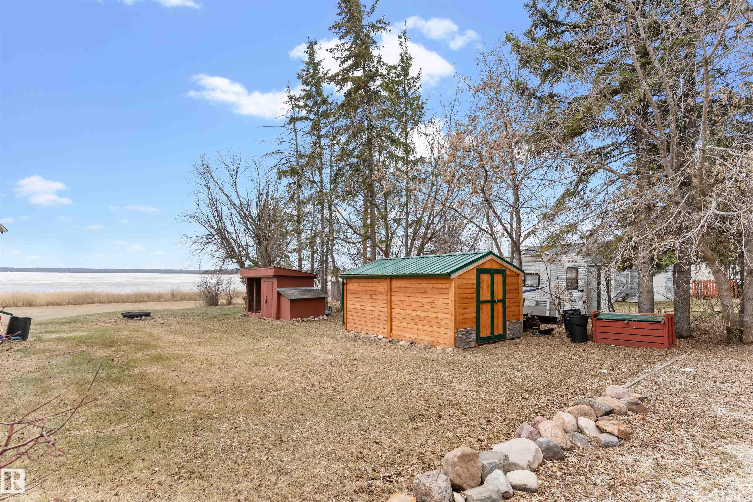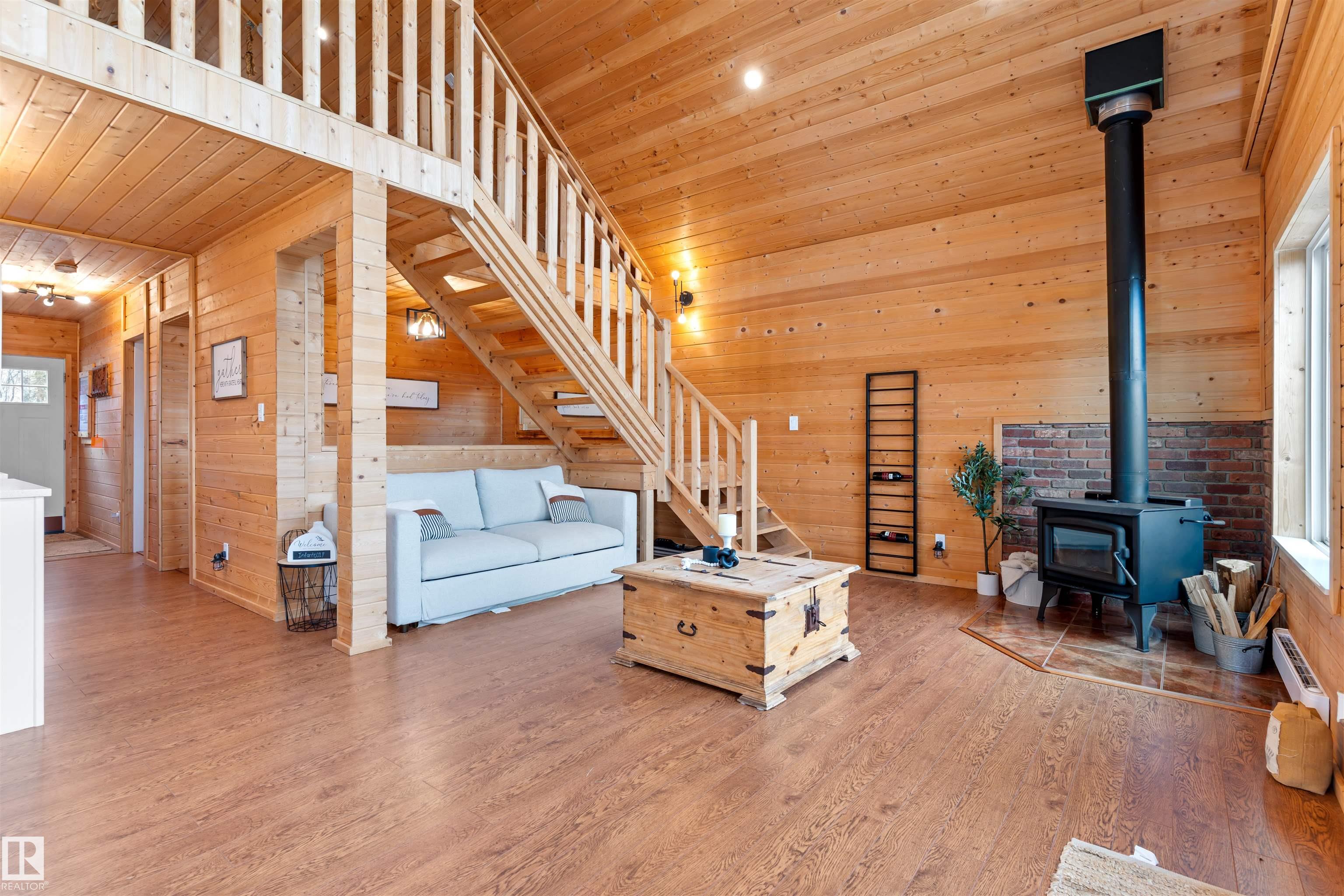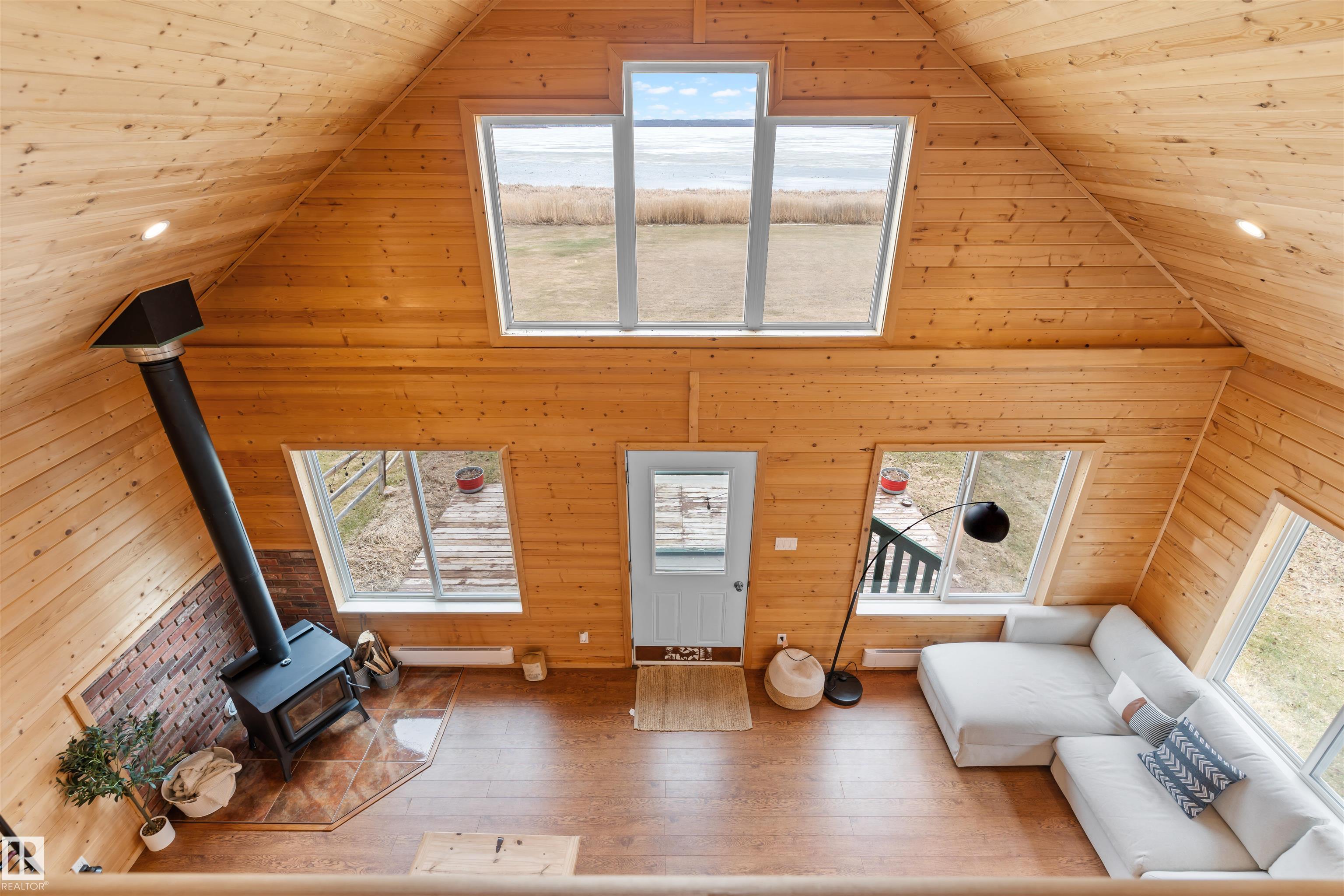 Never-ending memories will be created here at this Lakefront home on Sandy Lake, located on the south shore. This custom chalet-style home sits on 2 Lots and offers direct lake access. With stunning west-facing views, and a peaceful setting just steps from the water. Built in 2016, the home features an 18-foot vaulted ceiling with an open-concept kitchen, dining, and living area designed to capture natural light and lake views. The main floor includes a bedroom, 1.5 bathrooms, and quality wood finishes throughout. A loft overlooks the living space and provides additional sleeping or lounge area. Enjoy a wood-burning stove, expansive windows, and a south-facing lakeside deck ideal for relaxing or entertaining. The treed lot balances privacy with open space, complete with firepit area and room for gatherings. Fully serviced with power, heat cistern, and a holding tank. A rare opportunity to own a turnkey waterfront retreat ideal for year-round use, recreation, or quiet escape.