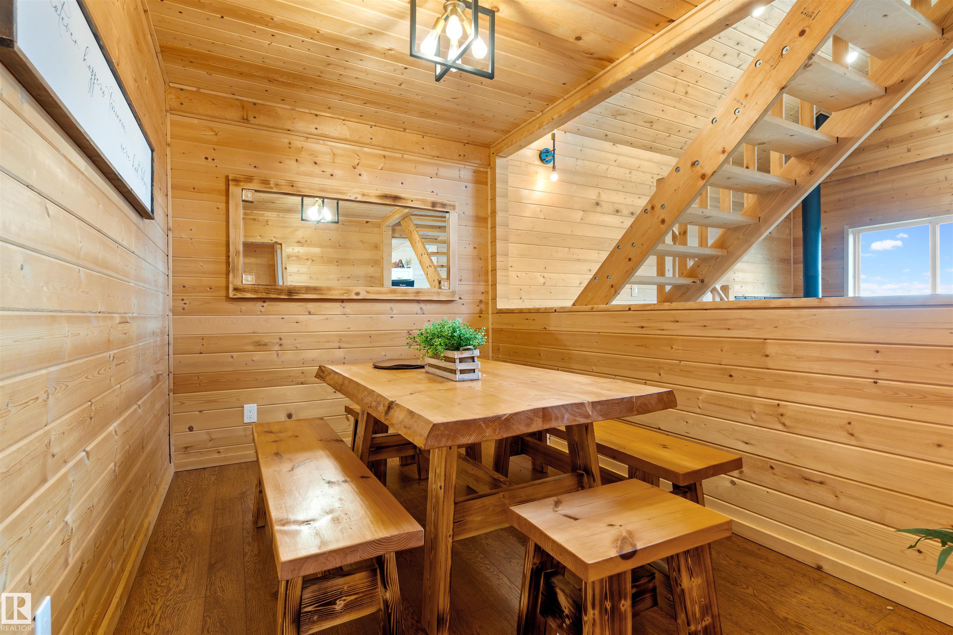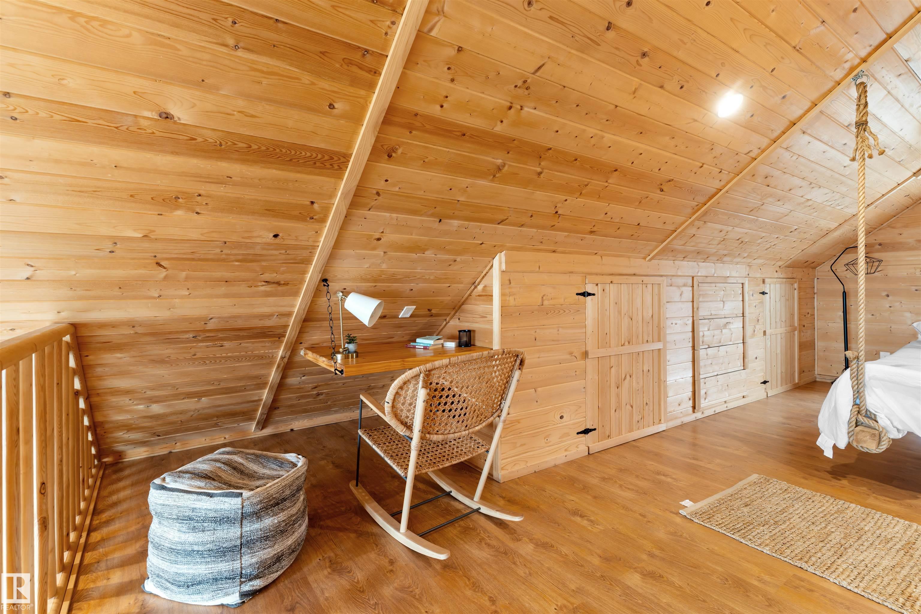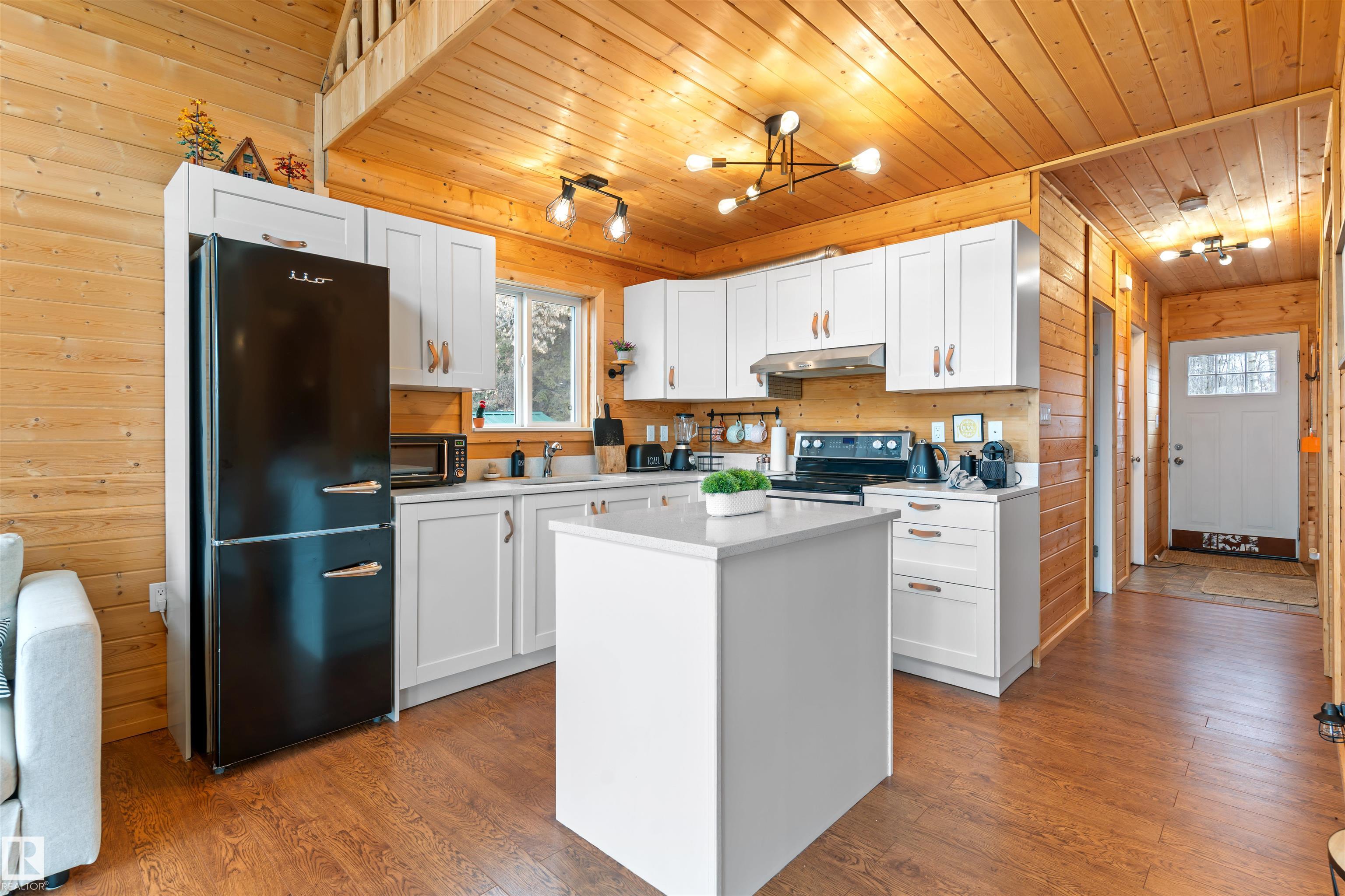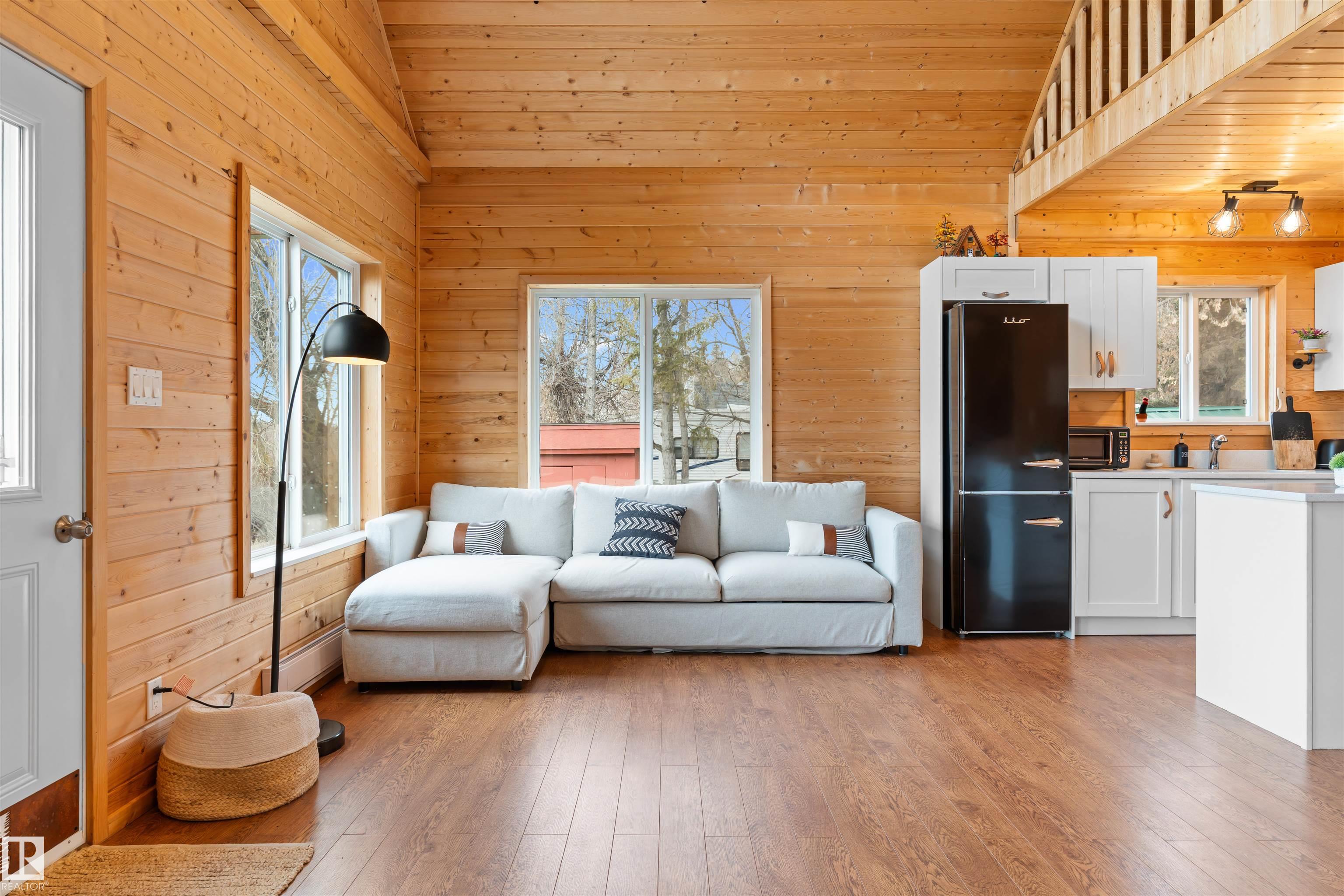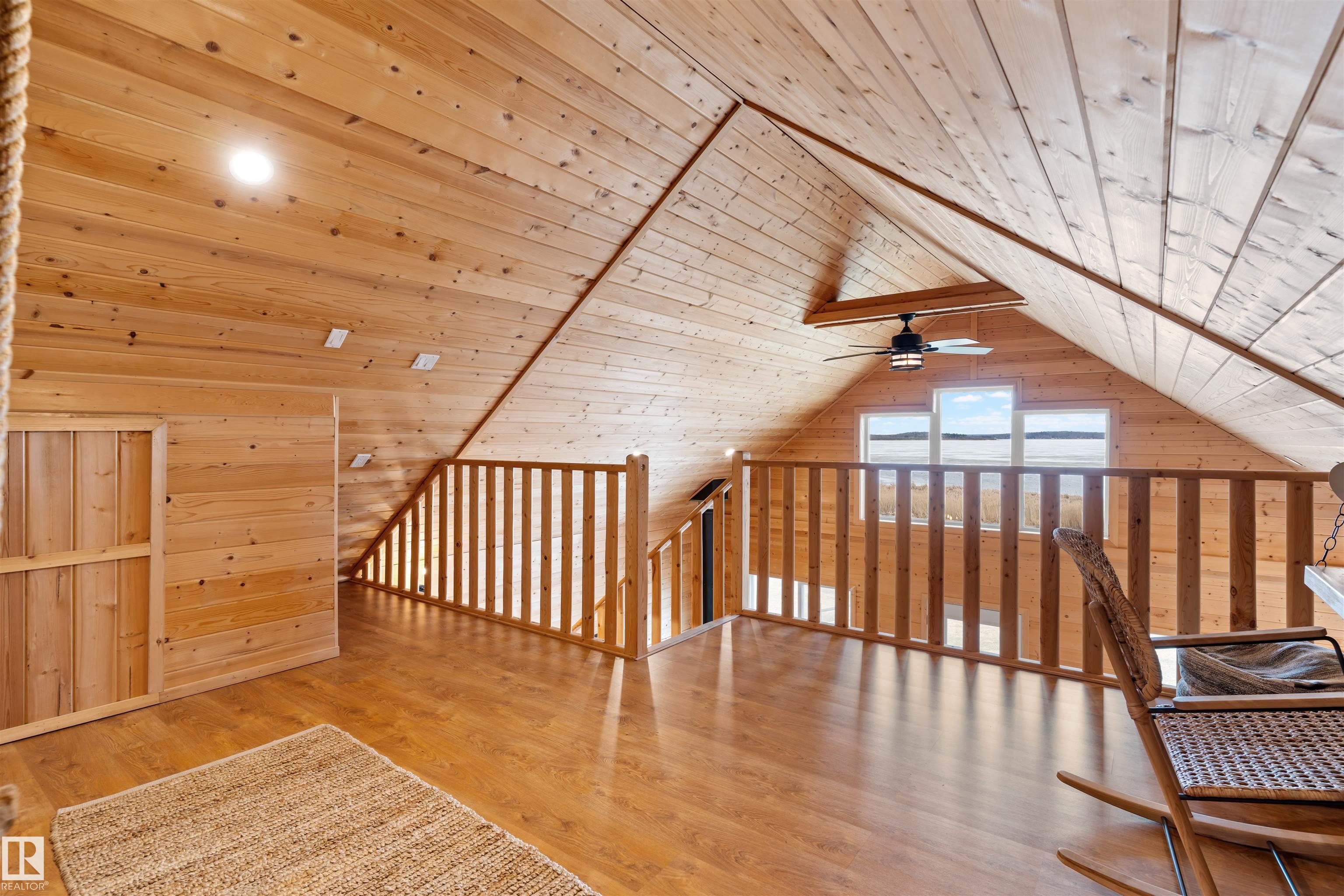 Never-ending memories will be created here at this Lakefront home on Sandy Lake, located on the south shore. This custom chalet-style home sits on 2 Lots and offers direct lake access. With stunning west-facing views, and a peaceful setting just steps from the water. Built in 2016, the home features an 18-foot vaulted ceiling with an open-concept kitchen, dining, and living area designed to capture natural light and lake views. The main floor includes a bedroom, 1.5 bathrooms, and quality wood finishes throughout. A loft overlooks the living space and provides additional sleeping or lounge area. Enjoy a wood-burning stove, expansive windows, and a south-facing lakeside deck ideal for relaxing or entertaining. The treed lot balances privacy with open space, complete with firepit area and room for gatherings. Fully serviced with power, heat cistern, and a holding tank. A rare opportunity to own a turnkey waterfront retreat ideal for year-round use, recreation, or quiet escape.