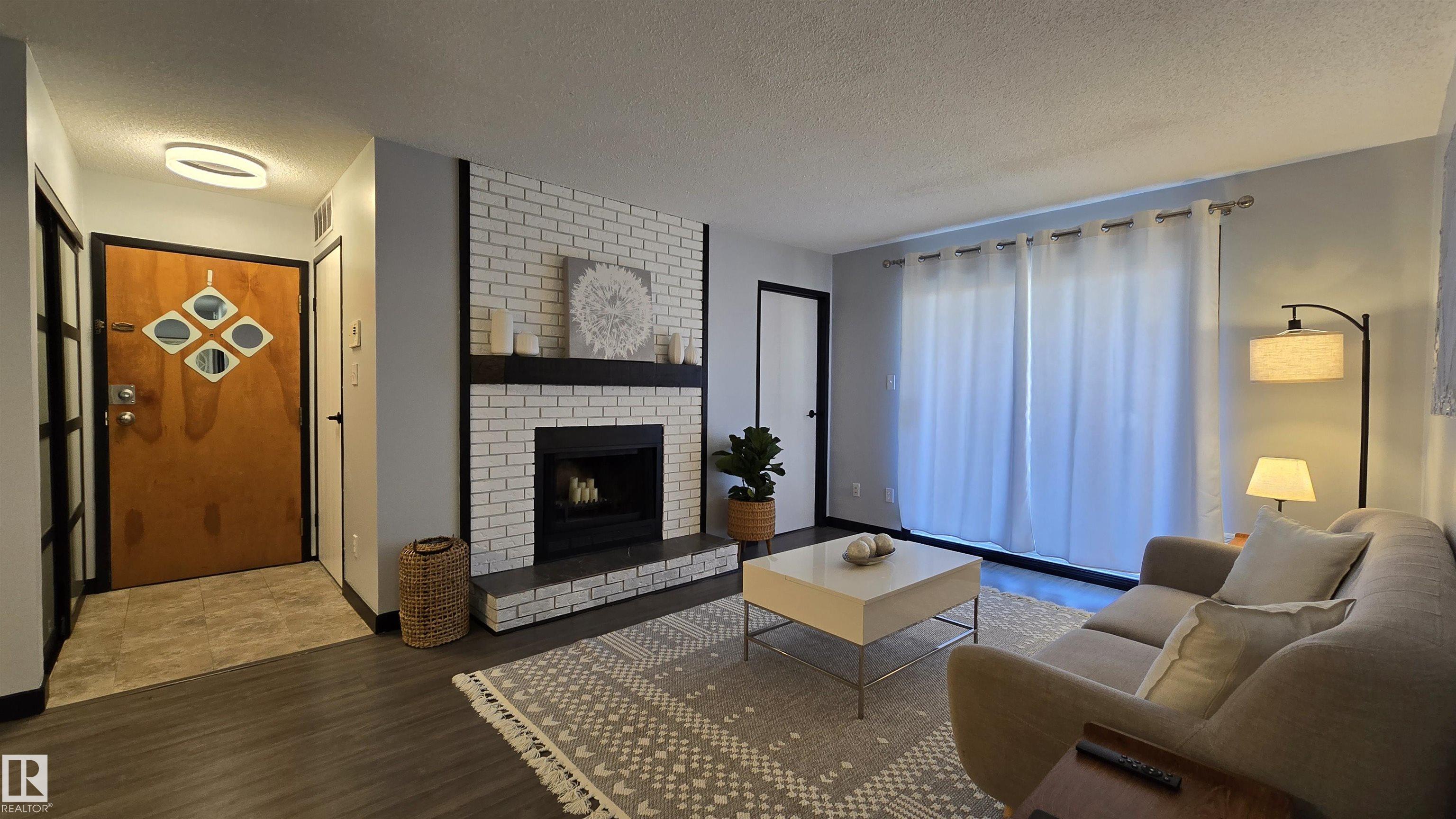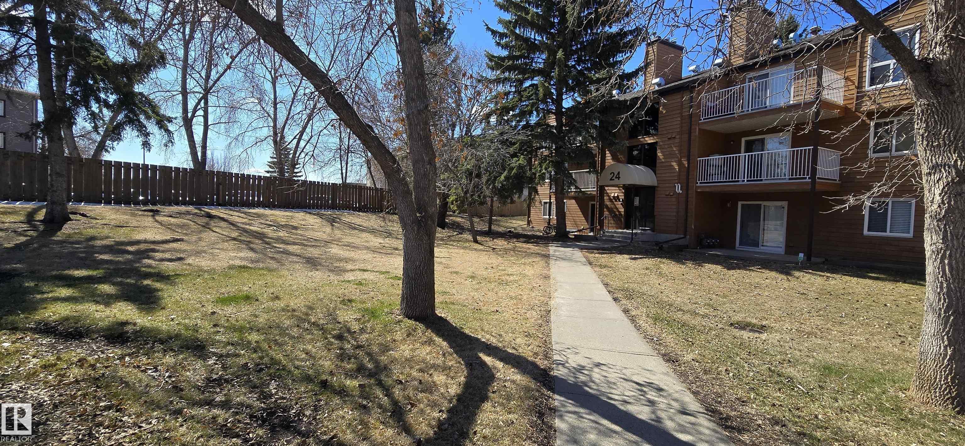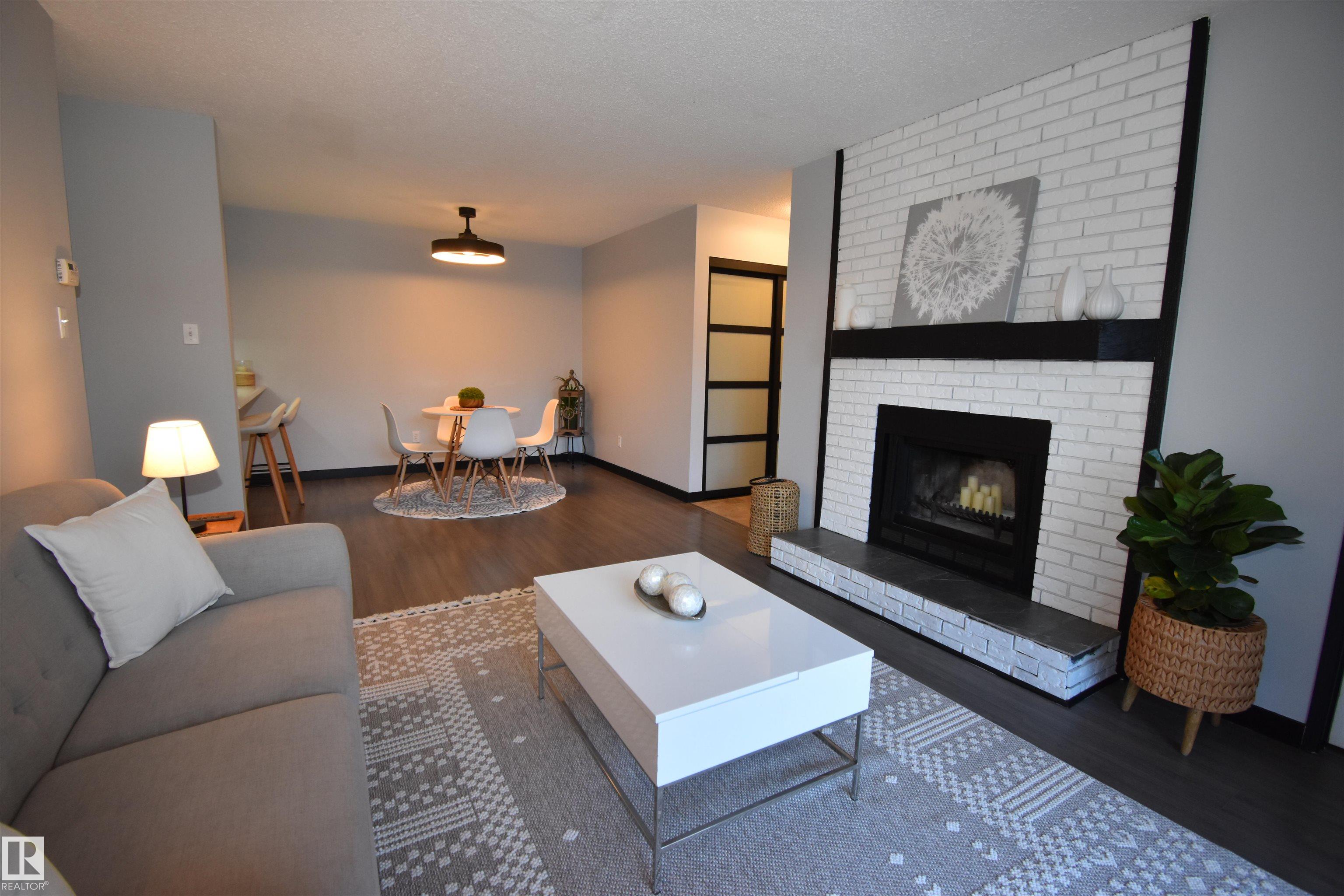 Absolute Hidden Gem! A small condo complex tucked away in a fantastic quiet little corner of St. Albert. This 2 bedroom unit has been almost completely upgraded from top to bottom including laminate flooring, modern lighting, fresh paint, counter tops, fixtures, appliances, furnace, hot water tank and more! Nothing left to do but move in! Upon entering, you are greeted with a huge family room and cozy wood burning brick fireplace. Big and bright kitchen with ample cupboard space. Big master bedroom with huge walk in closet. Enjoy your summer BBQ?s on the large deck. Ample storage in the in-suite storage room! Over the years the well managed condo corporation have replaced the outside deck, railings, shingles, windows, downspouts, steps etc. and soon all of the siding (new vinyl siding scheduled to commence this year in 2026!). Superb location within just steps to parks and the St. Albert trail system. Close to schools shopping and the quick access to the Henday. You definitely don?t want to miss this one!