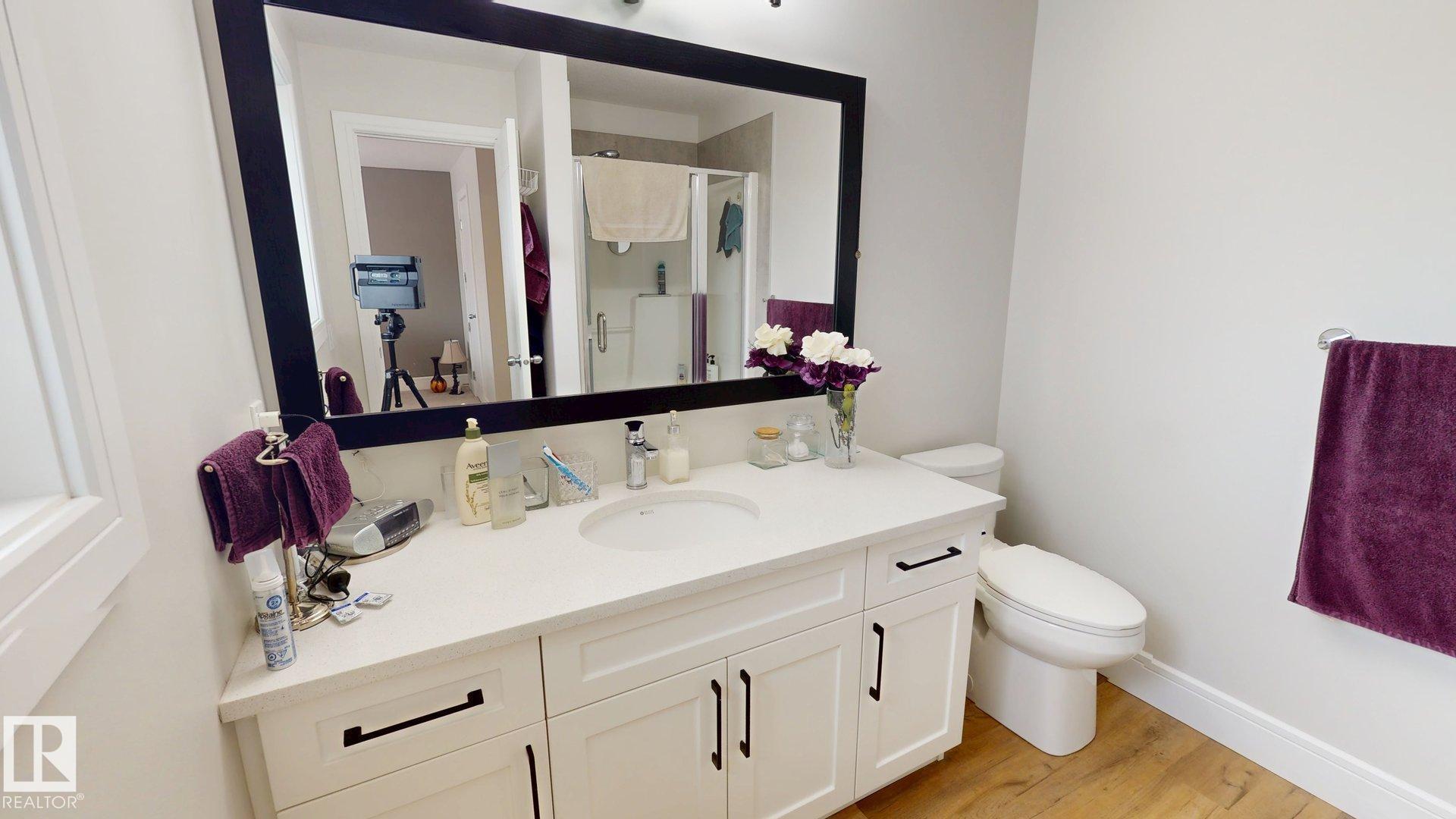 Welcome to 111 Spruce Gardens Crescent, a former show home and a quality built duplex by Homexx, with a heated double attached garage in desirable family friendly neighborhood of Spruce Ridge. The main floor features vinyl plank flooring, 2 entry closets, a tucked away 1/2 bath, modern kitchen with quartz countertops, stainless appliances, tall upper cabinets, garburator and pantry. Nicely opened to adjacent sunny south facing dining room and living room. Upstairs you will find 3 generous sized bedrooms including a spacious primary with ensuite & walk-in closet, a 4 pc bathroom, a laundry room and a versatile flex room which can be used a playroom/office/tv room, adorned with a glass stub wall railing and also features unique custom solid core doors. Fully fenced south facing back yard with access to walking trail and includes deck with natural gas hookup and gazebo covered hot tub.