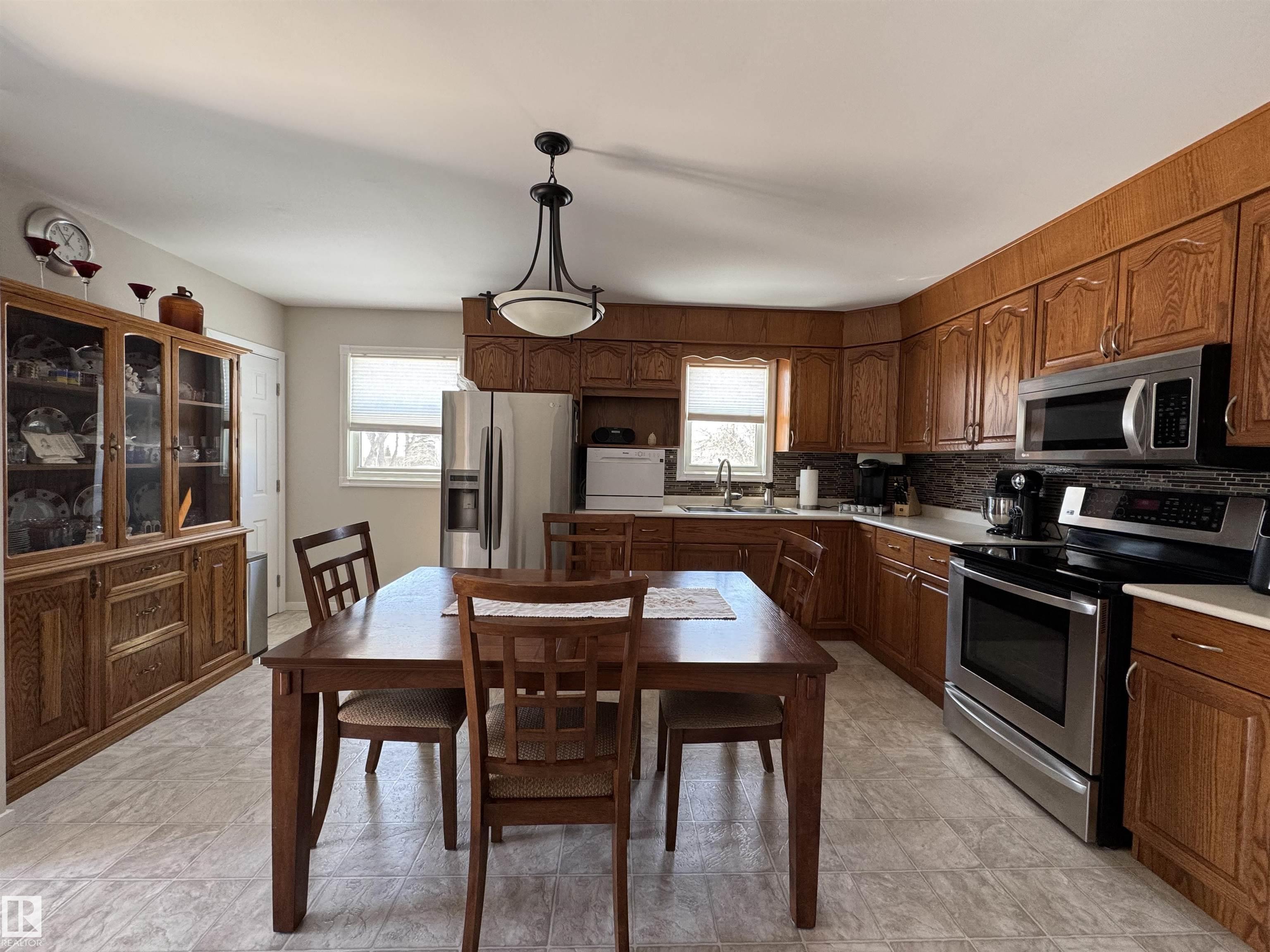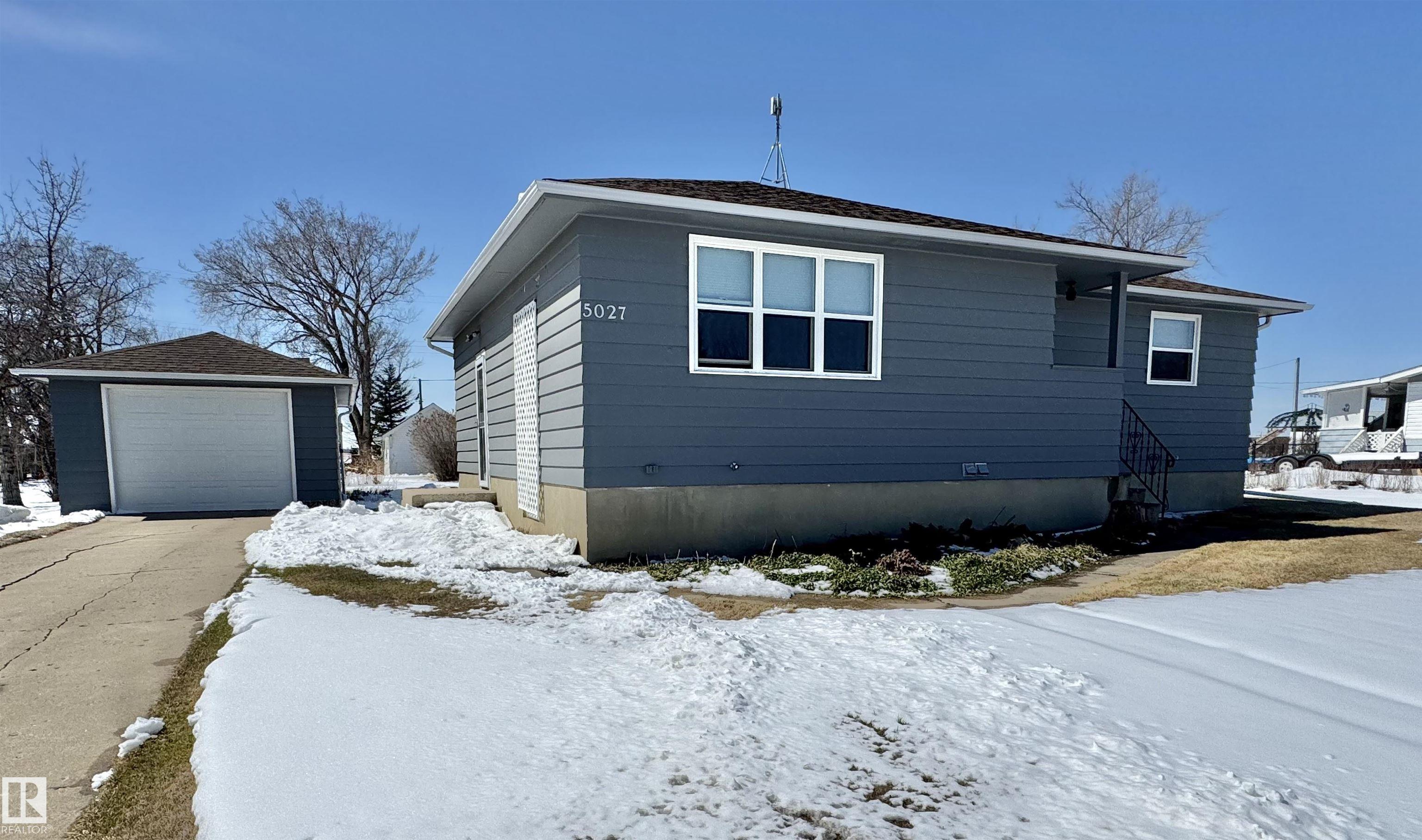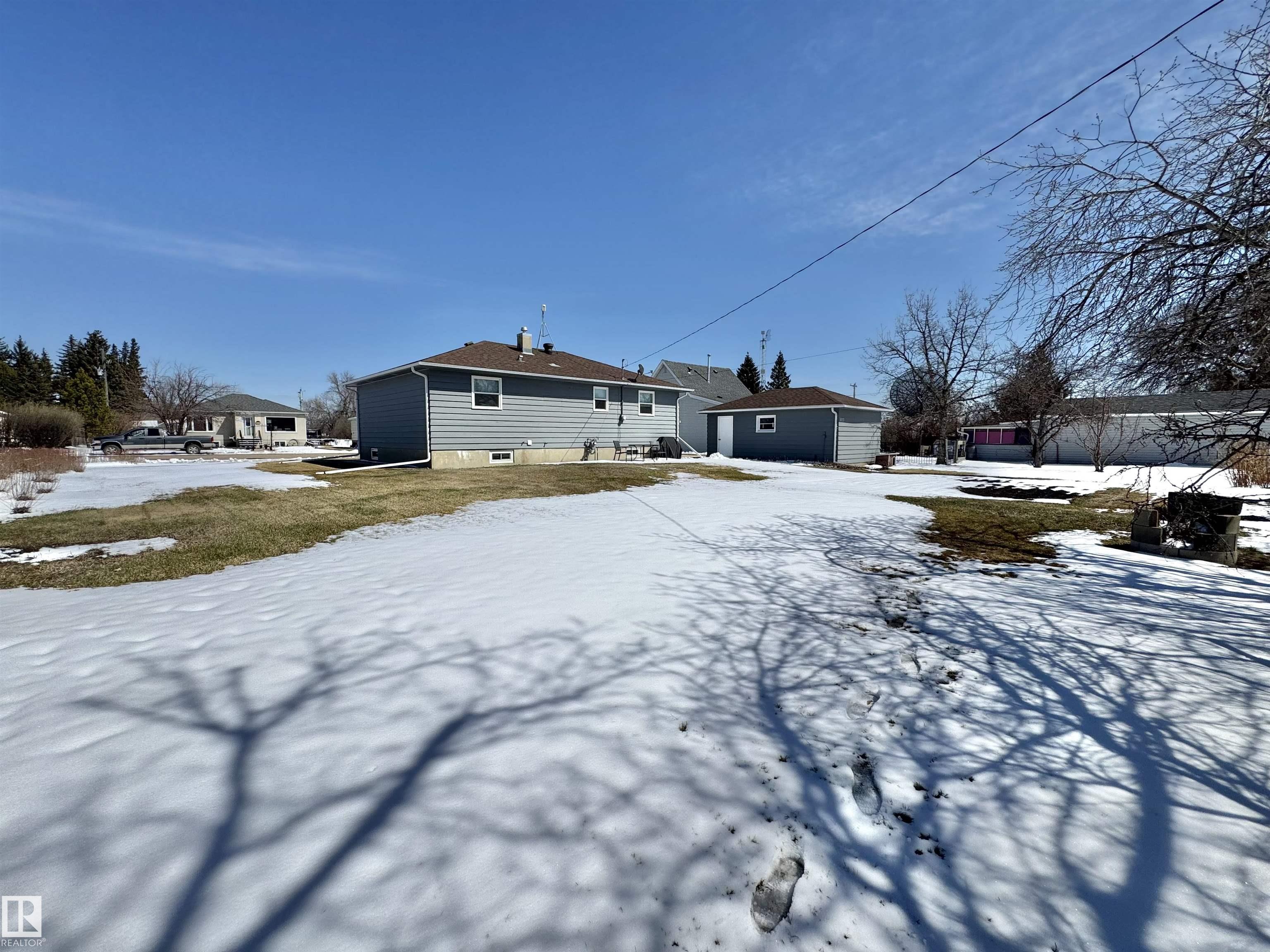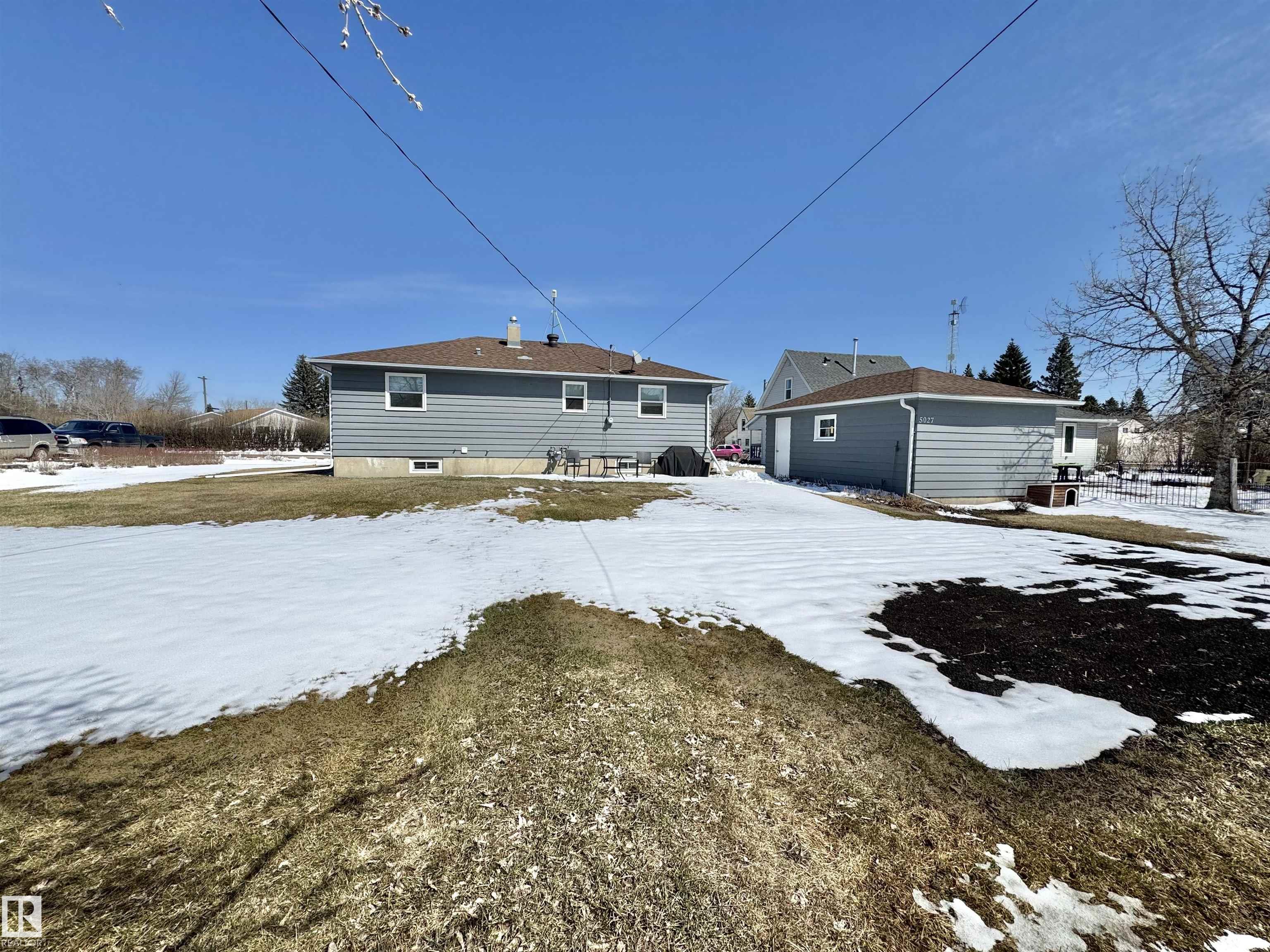 What a beautifully well maintained and updated family home situated on a 12500 sq ft double lot in the quaint hamlet of Lavoy. As one enters the home you are welcomed into a spacious eatery in kitchen complete with real oak cupboards and stainless steel appliances. A bright living room, 3 spacious bedrooms and an updated full 4 pc bathroom complete the main floor. Downstairs features a family room, 2 bedrooms, a den, laundry area and a rough in for a second bathroom. A single detached garage and front concrete driveway lead to the spacious back yard with garden area and fire pit. Many updates throughout the years including vinyl windows(2015), exterior doors(2020), furnace(2019), hot water tank(2019) paint, baseboard, shingles(2015). An absolute must see.