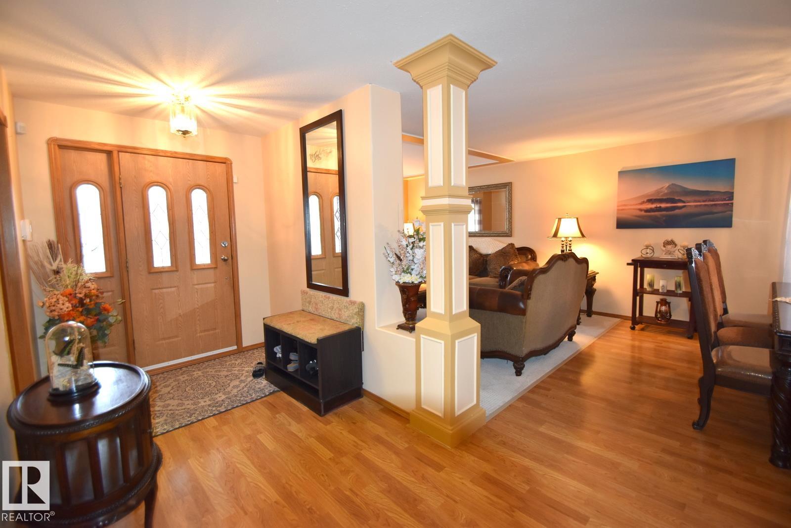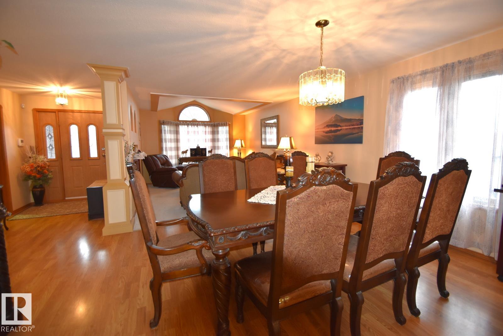 RARE FIND in Boyle! Elegant custom-built home on a large dbl lot w/ front & back driveway access. Approx 5,000 sq.ft liv space including walkout bsmt. 6 bdrms & 4 bathrms, Ideal for large or growing families. Main floor offers a grand foyer, french-door office, two spacious living rooms w/ fireplaces, and a beautiful large kitchen! Formal & casual dining areas, w/ patio doors to the covered porch & deck overlooking scenic hillside views & sunsets. 3 bedrooms, including a primary w/ ensuite, additional 4-pc & 2-pc baths, laundry, and direct access to the att'd dbl garage complete the main level!.. The basement offers a large rec room w/wet bar, pool table & shuffleboard... plus a separate living space that's wheelchair-accessible w/ sep' outdoor entrance, 3 bedrooms, kitchenette, laundry, large 3-pc bath?perfect for hosting friends or extended family! UPGRADES: newer furnace, roof, new flooring, central vac, appliances. Immaculately maintained and move-in ready, close to Boyle?s K?12 school & amenities.
