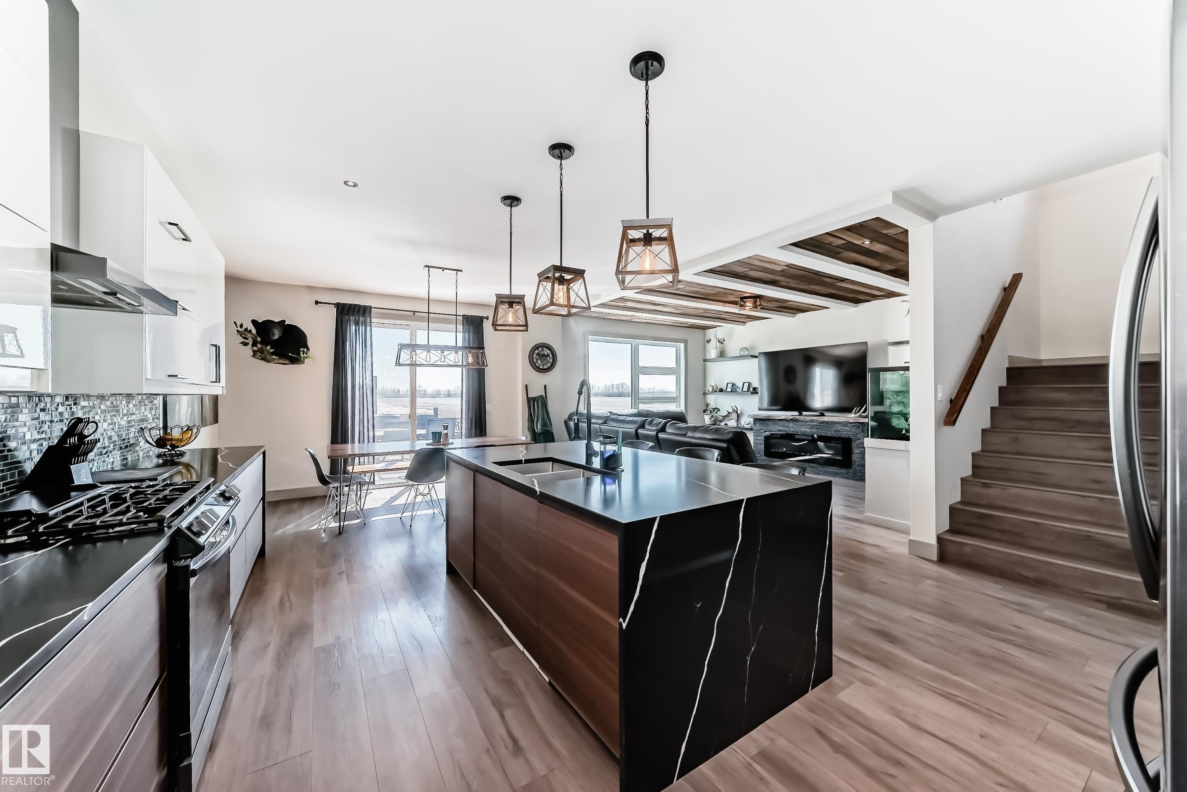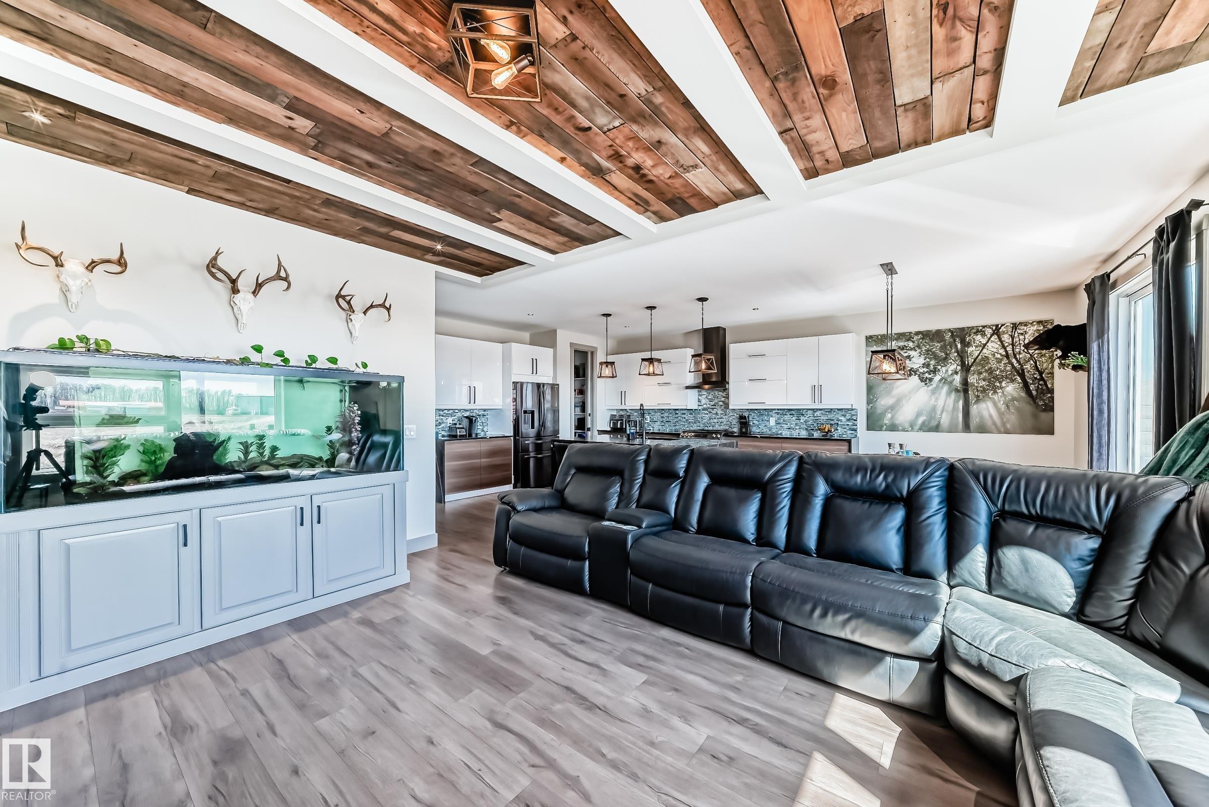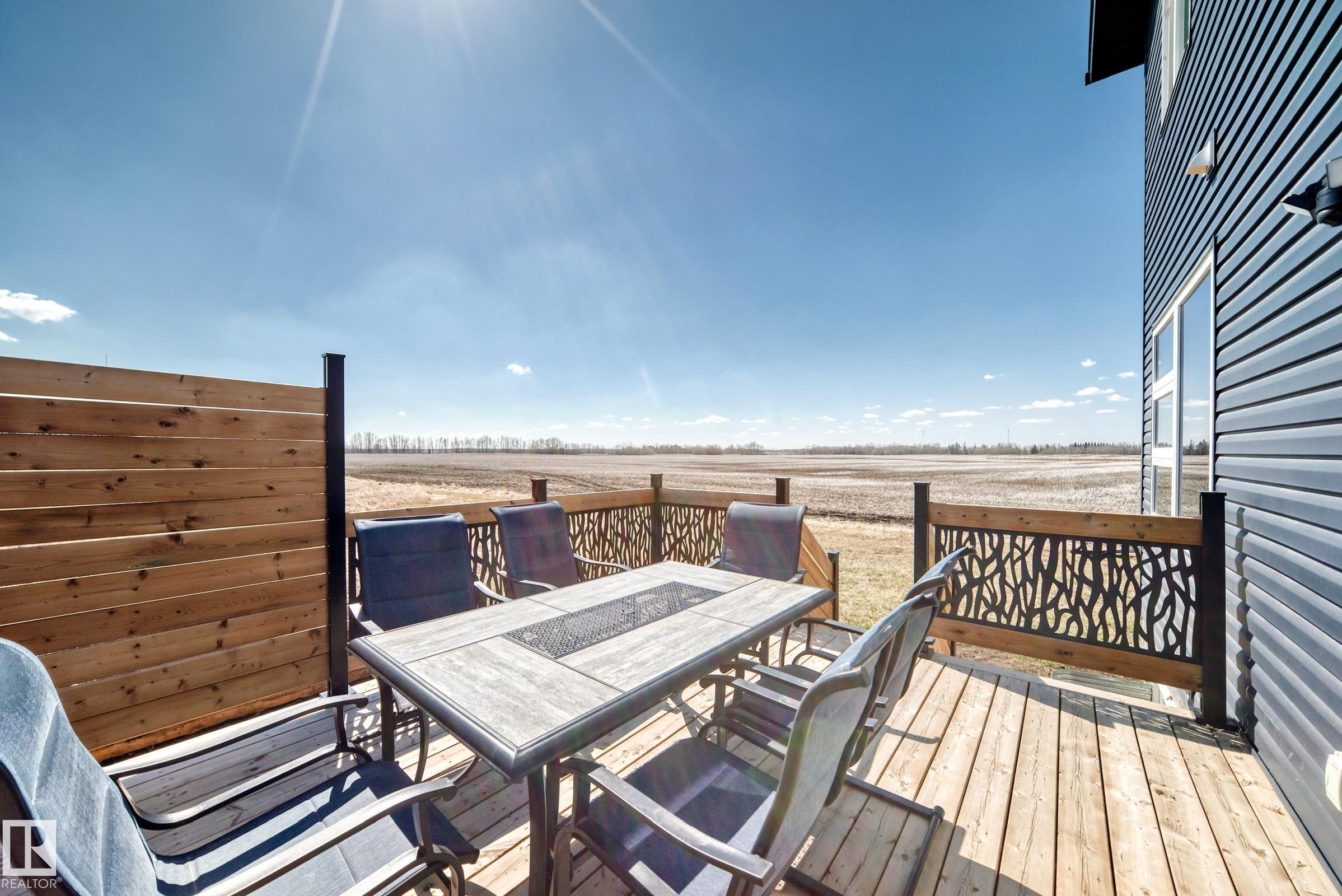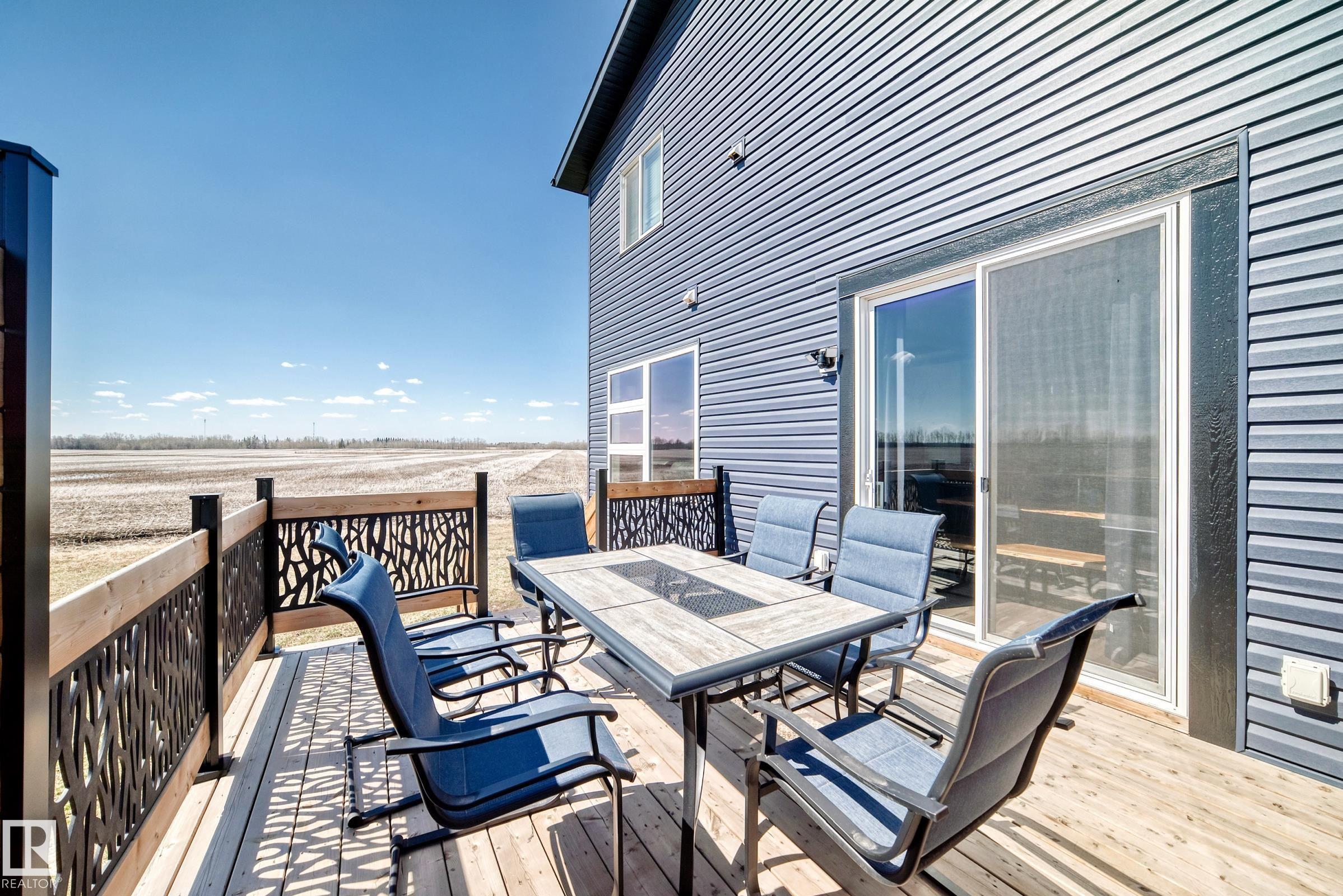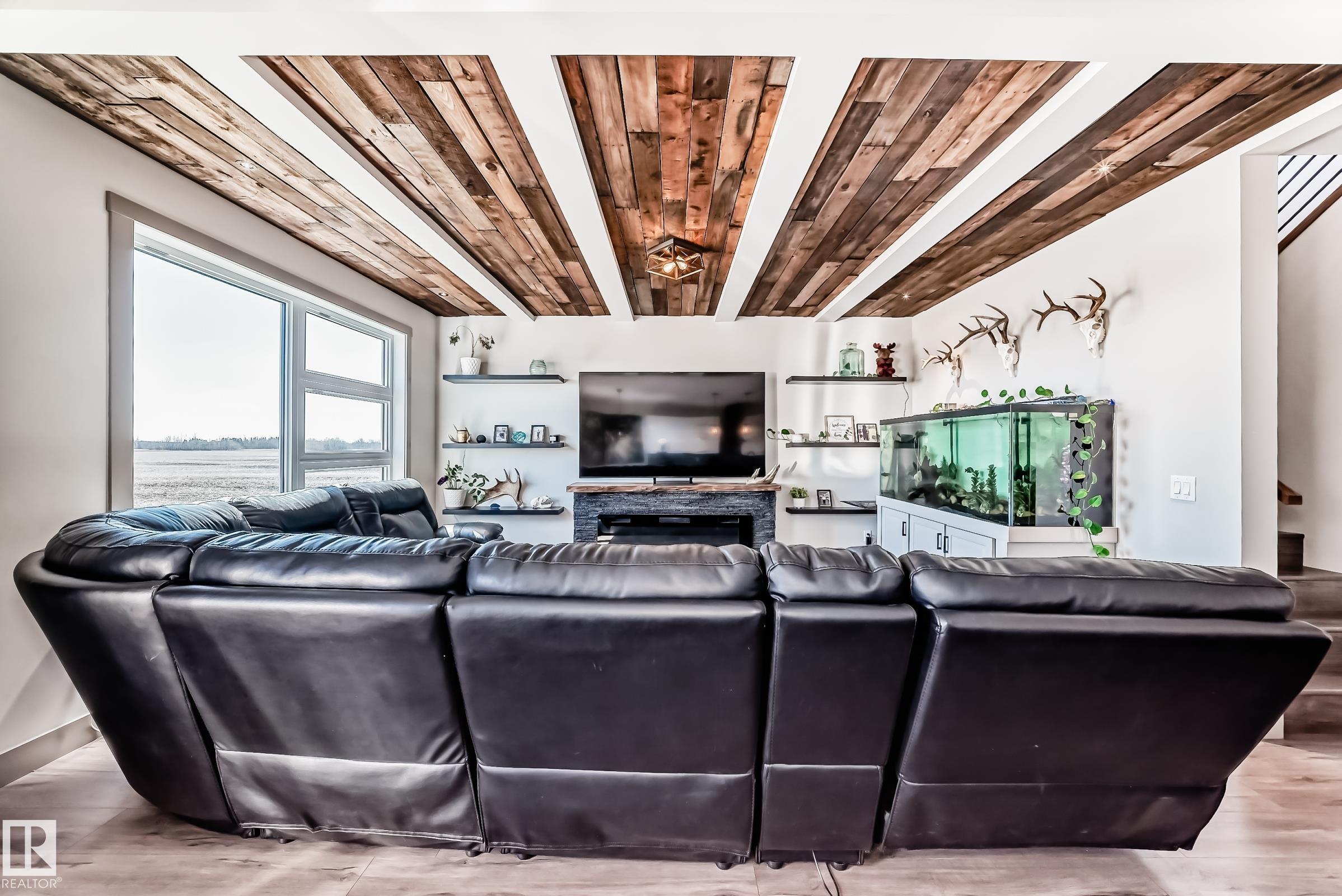 Discover executive luxury in this contemporary 2,646 sq ft masterpiece featuring 4+1 bedrooms, 4 full baths, a main-floor office and Central AC. The striking exterior boasts a triple car garage, RV parking and security system. The chef?s kitchen is a showstopper, anchored by a quartz waterfall island, premium cabinetry, water softener, gas stove, spacious countertops and a walk-in pantry. The "modern rustic" living area features reclaimed wood ceilings and an electric stone mantel fireplace, with large windows this cozy space gives endless field views. Retreat to the vaulted primary suite with skylights, a private fireplace and a spa ensuite featuring heated floors, dbl sink, a soaker tub, and a rain shower. For maximum versatility, the partially finished basement includes a separate entrance, 1 bed + 1 bath; ideal for a future suite. Outside, a designer deck with privacy slats offers the ultimate space to enjoy the Alberta prairies. This home seamlessly blends high-end finishes with rural living.
