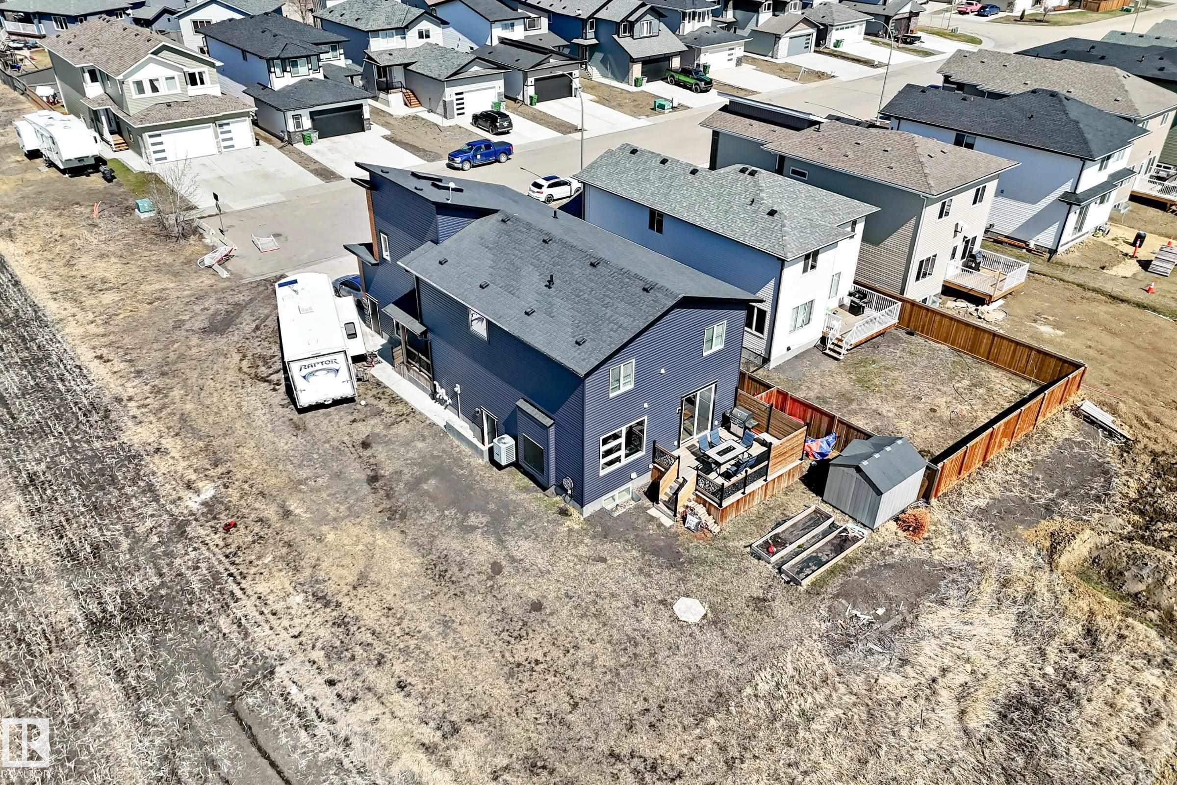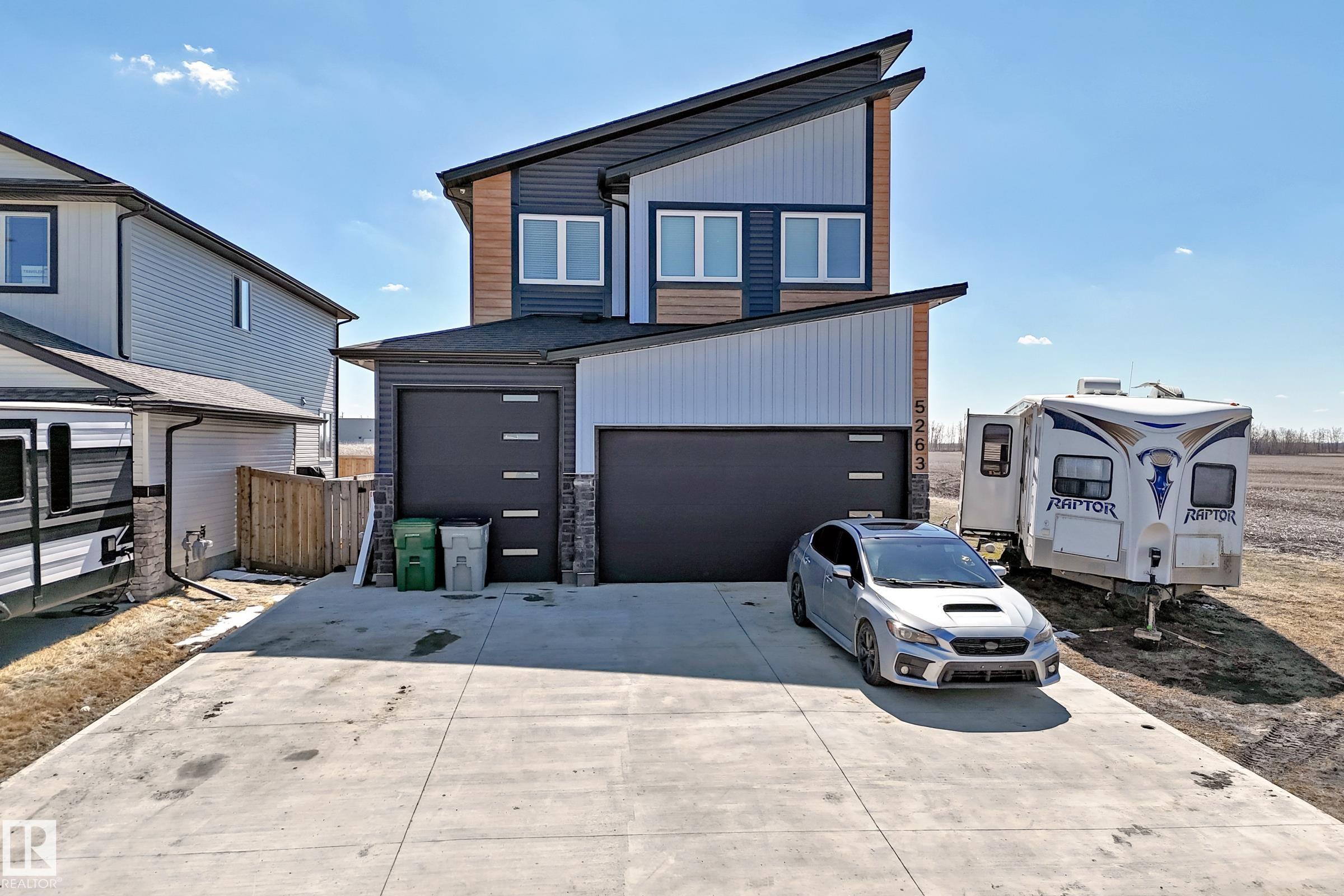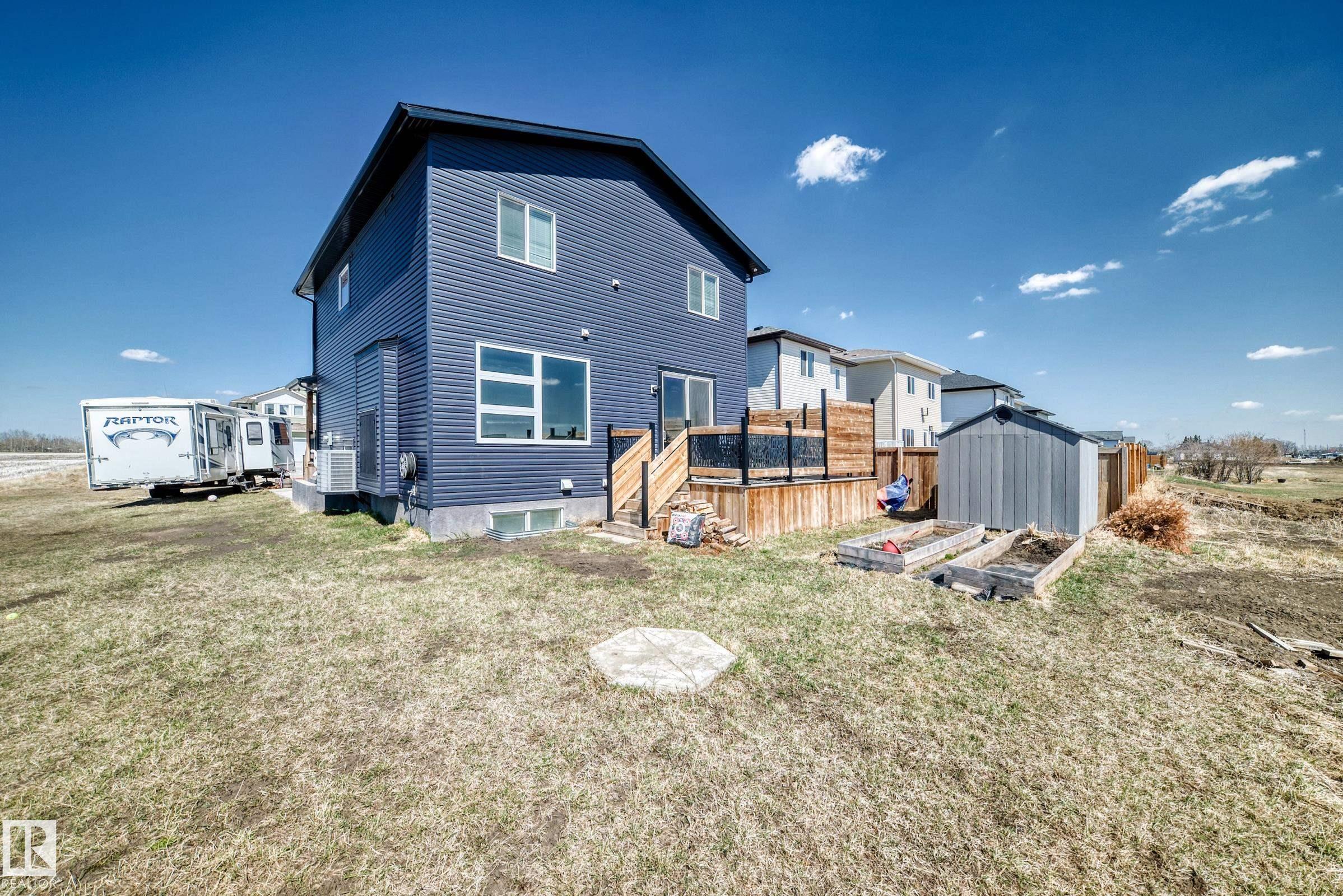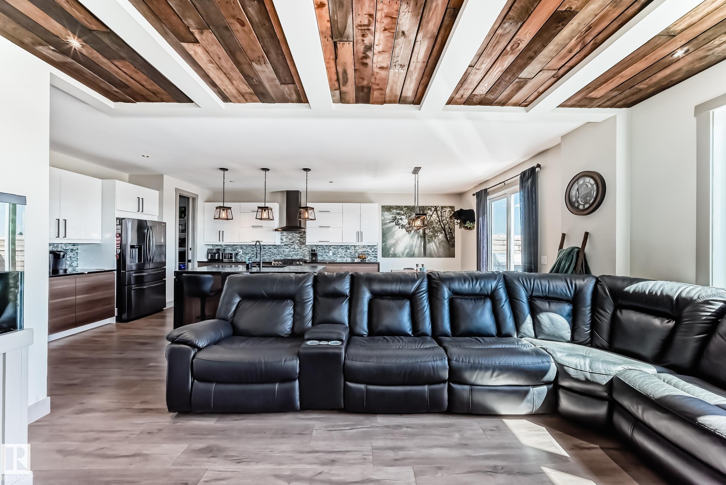 Discover executive luxury in this contemporary 2,646 sq ft masterpiece featuring 4+1 bedrooms, 4 full baths, a main-floor office and Central AC. The striking exterior boasts a triple car garage, RV parking and security system. The chef?s kitchen is a showstopper, anchored by a quartz waterfall island, premium cabinetry, water softener, gas stove, spacious countertops and a walk-in pantry. The "modern rustic" living area features reclaimed wood ceilings and an electric stone mantel fireplace, with large windows this cozy space gives endless field views. Retreat to the vaulted primary suite with skylights, a private fireplace and a spa ensuite featuring heated floors, dbl sink, a soaker tub, and a rain shower. For maximum versatility, the partially finished basement includes a separate entrance, 1 bed + 1 bath; ideal for a future suite. Outside, a designer deck with privacy slats offers the ultimate space to enjoy the Alberta prairies. This home seamlessly blends high-end finishes with rural living.