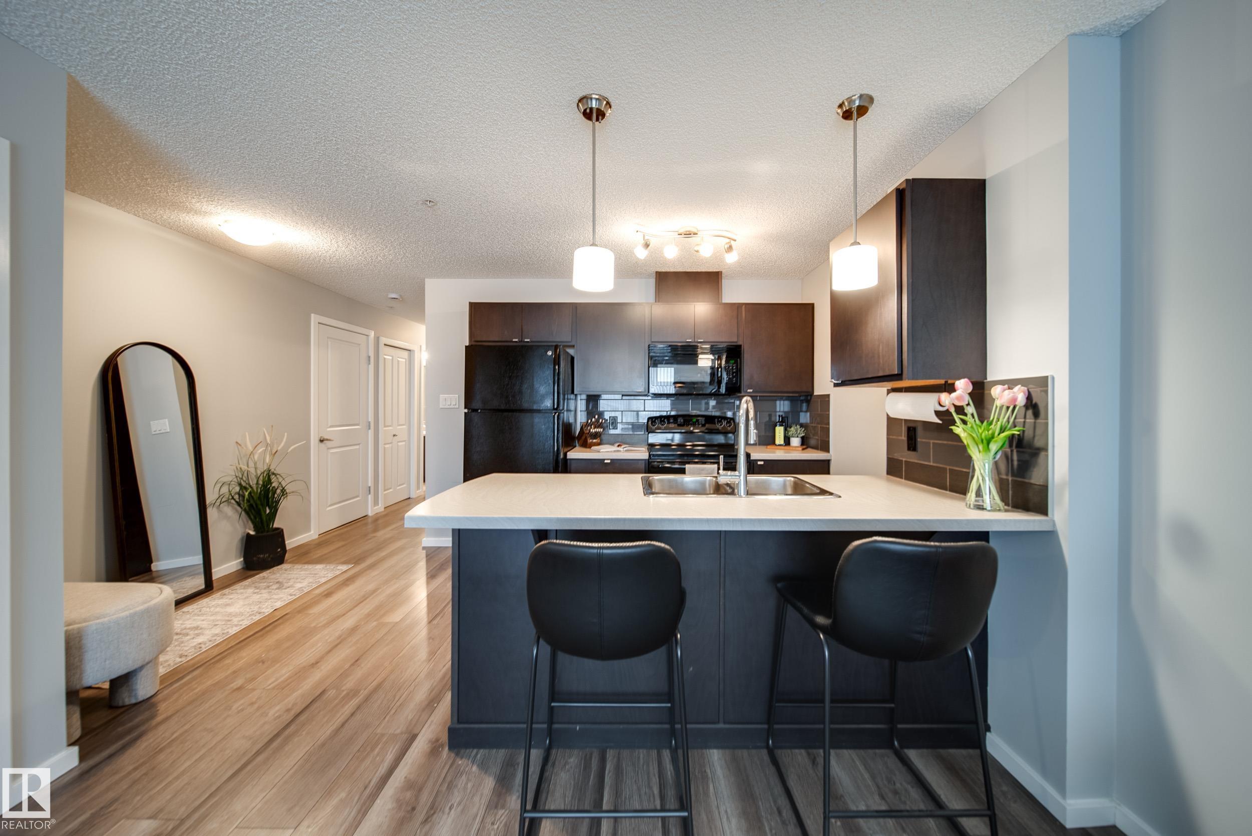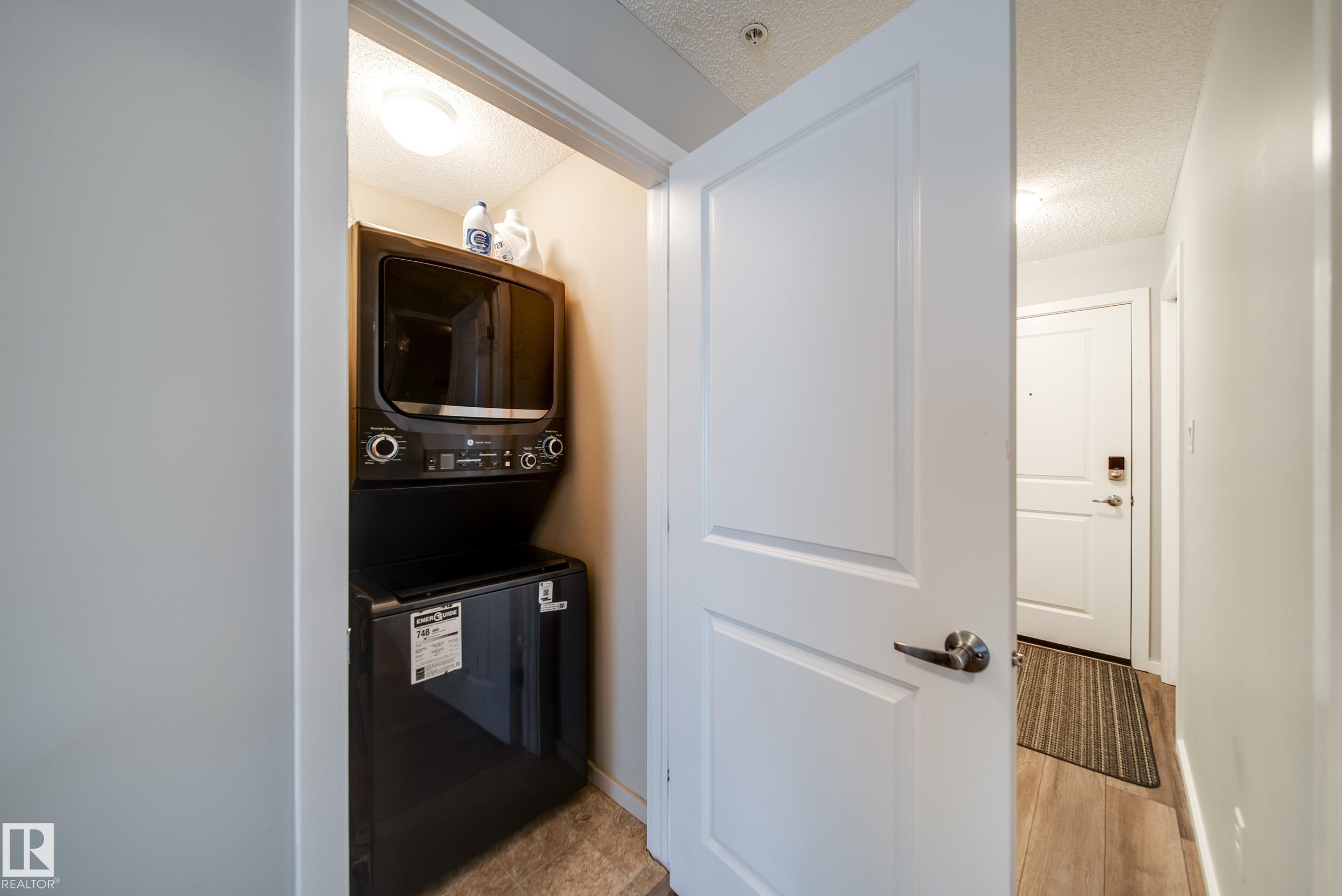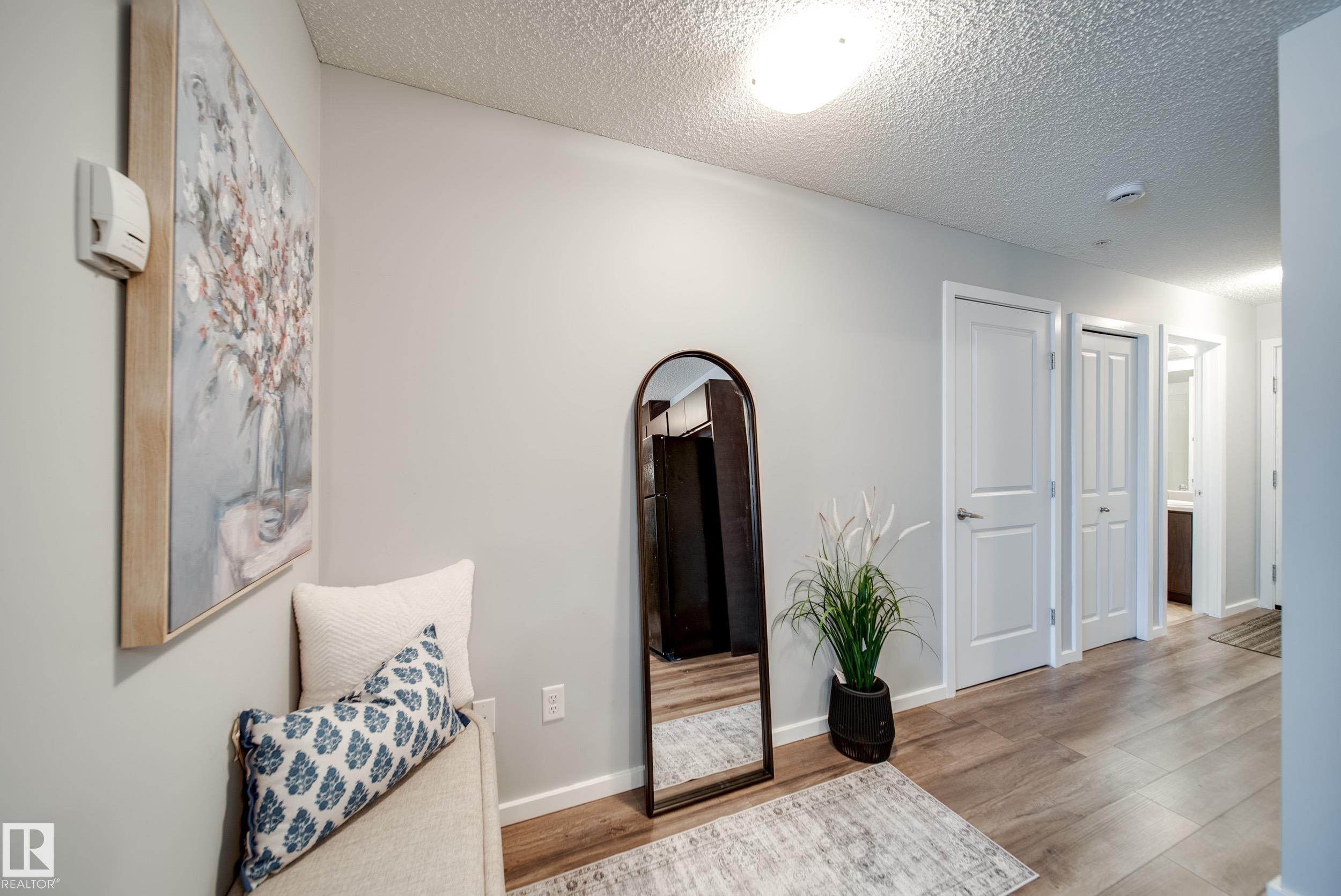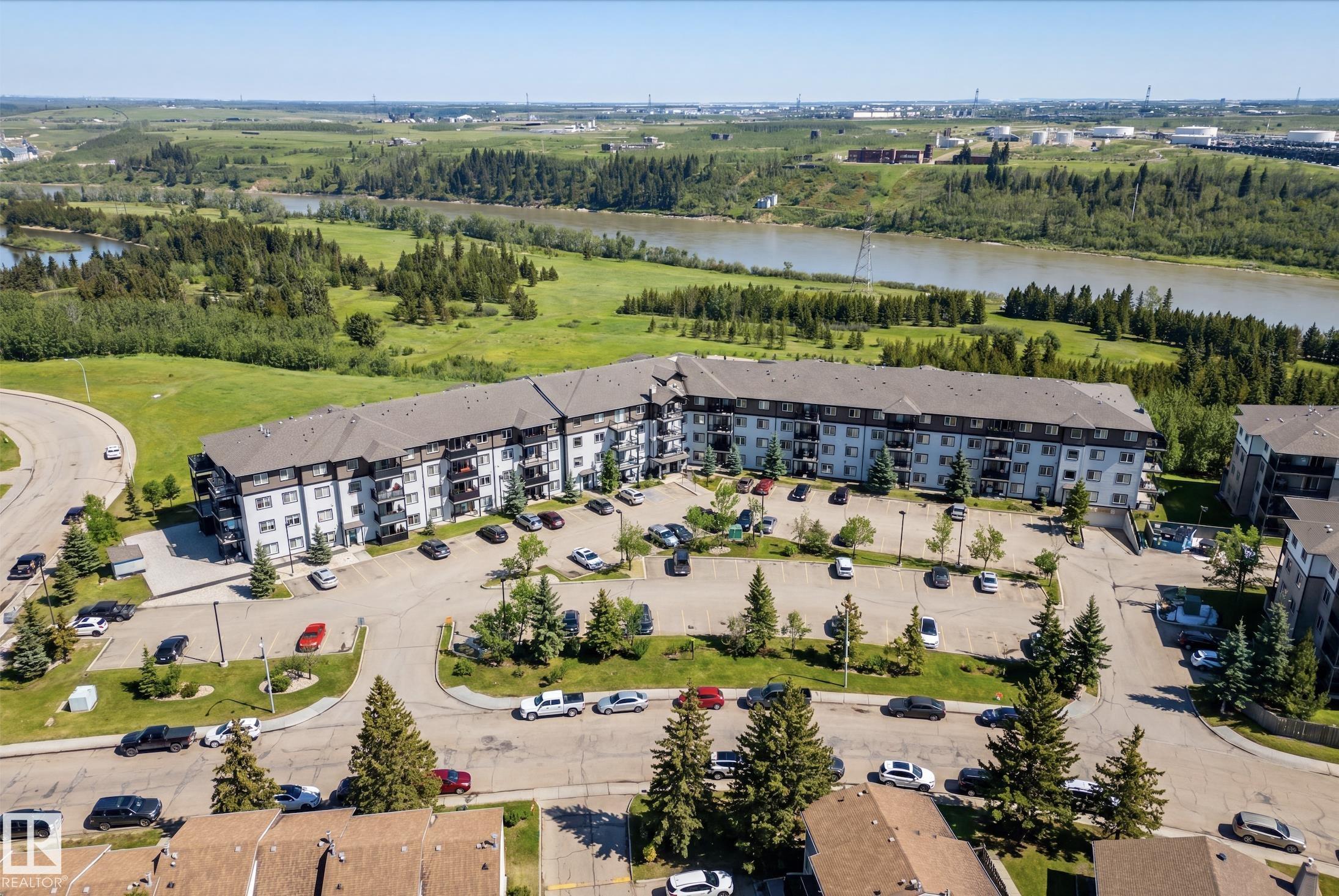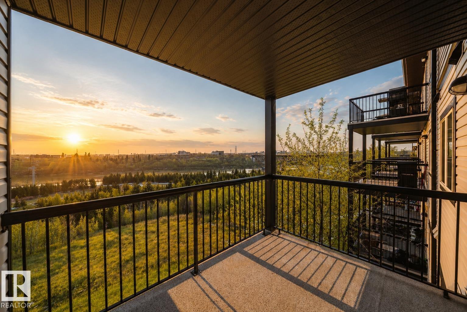 STUNNING RIVER VALLEY VIEWS! Welcome to The Avenue at Hermitage in Canon Ridge, where nature, convenience, and low maintenance living come together. This well maintained 2 bed, 2 bath condo offers a bright open concept layout w/ a spacious living room that flows into the functional kitchen featuring island seating & ample cabinetry. Step onto your private covered patio & take in the peaceful river valley views overlooking trails and green space, perfect for morning coffee or evening relaxation. The primary suite offers beautiful views, a walkthrough closet, and 4pc ensuite. The 2nd bedroom is thoughtfully positioned on the opposite side of the unit near an additional full bathroom, ideal for guests, roommates, or a home office. Complete with in-suite brand new washer and dryer & 1 titled underground parking stall. Enjoy secure building access, visitor parking, nearby parks, shopping, schools, transit, & quick access to the Yellowhead & Henday. Heat & water included in condo fees. Call this home!