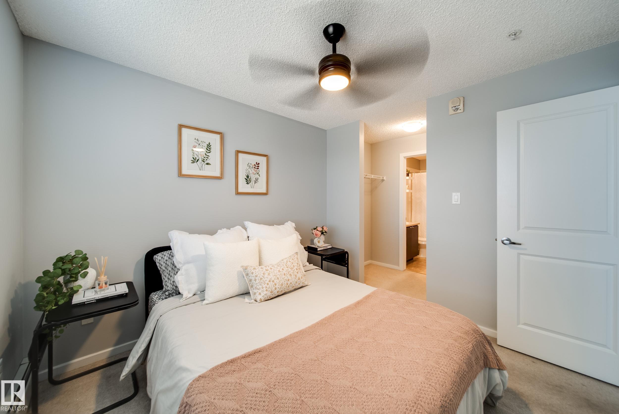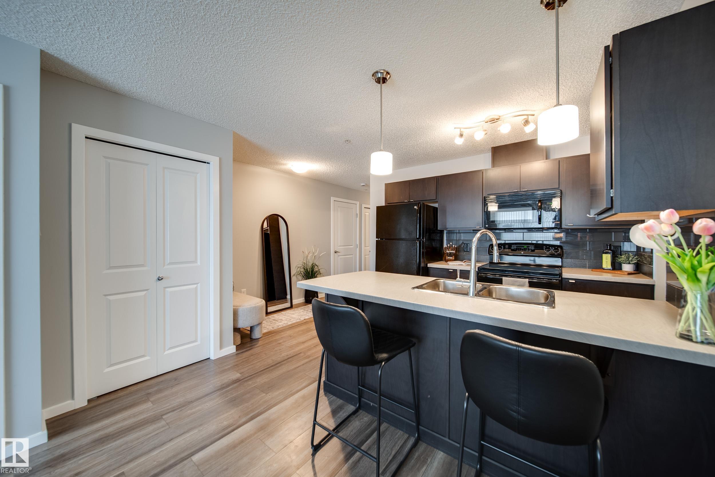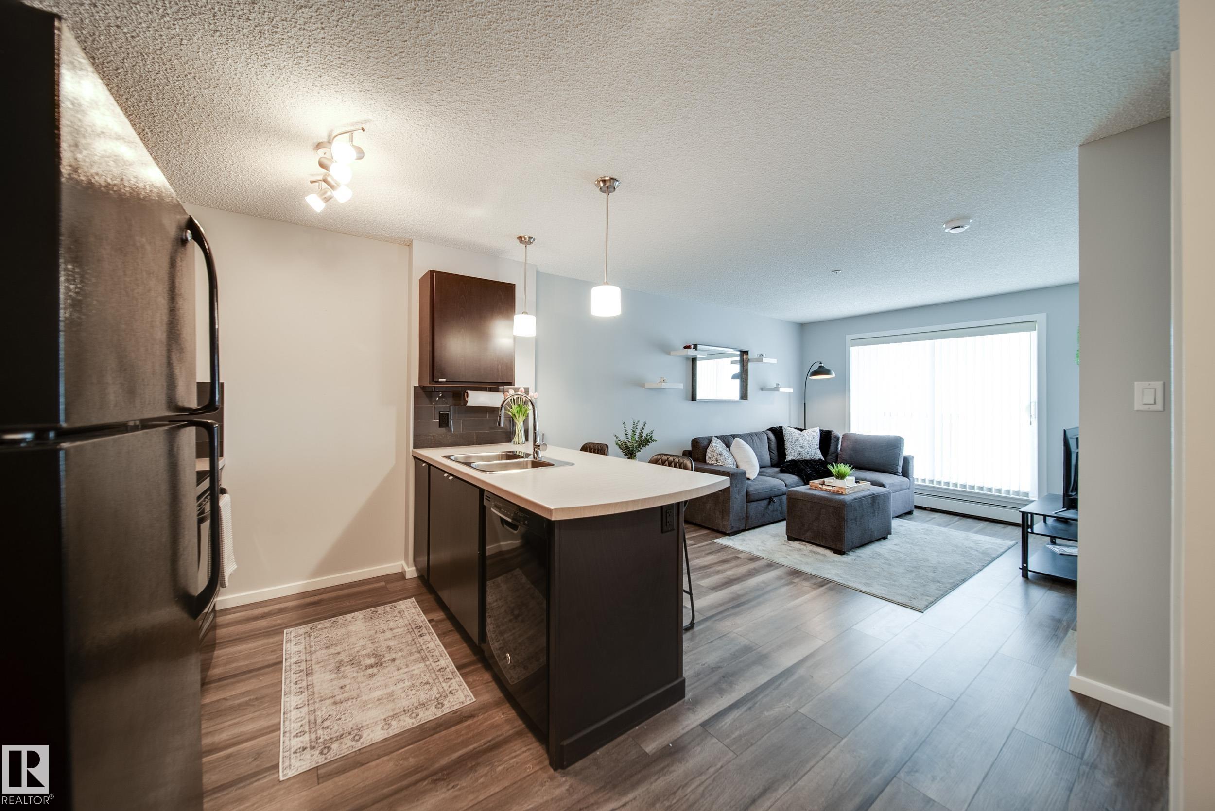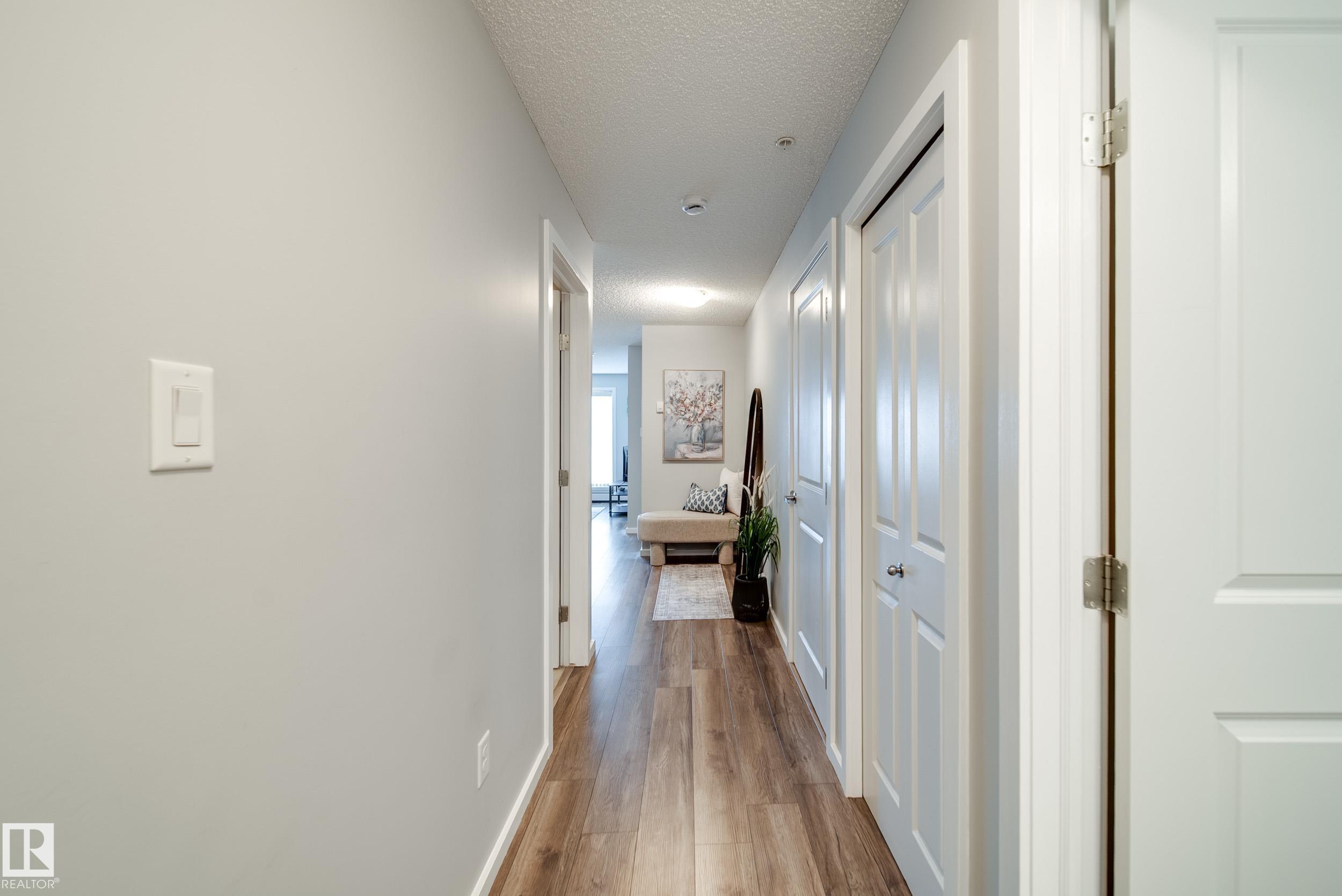STUNNING RIVER VALLEY VIEWS! Welcome to The Avenue at Hermitage in Canon Ridge, where nature, convenience, and low maintenance living come together. This well maintained 2 bed, 2 bath condo offers a bright open concept layout w/ a spacious living room that flows into the functional kitchen featuring island seating & ample cabinetry. Step onto your private covered patio & take in the peaceful river valley views overlooking trails and green space, perfect for morning coffee or evening relaxation. The primary suite offers beautiful views, a walkthrough closet, and 4pc ensuite. The 2nd bedroom is thoughtfully positioned on the opposite side of the unit near an additional full bathroom, ideal for guests, roommates, or a home office. Complete with in-suite brand new washer and dryer & 1 titled underground parking stall. Enjoy secure building access, visitor parking, nearby parks, shopping, schools, transit, & quick access to the Yellowhead & Henday. Heat & water included in condo fees. Call this home!