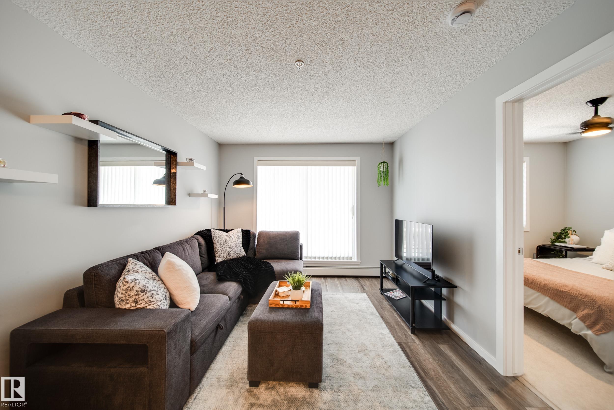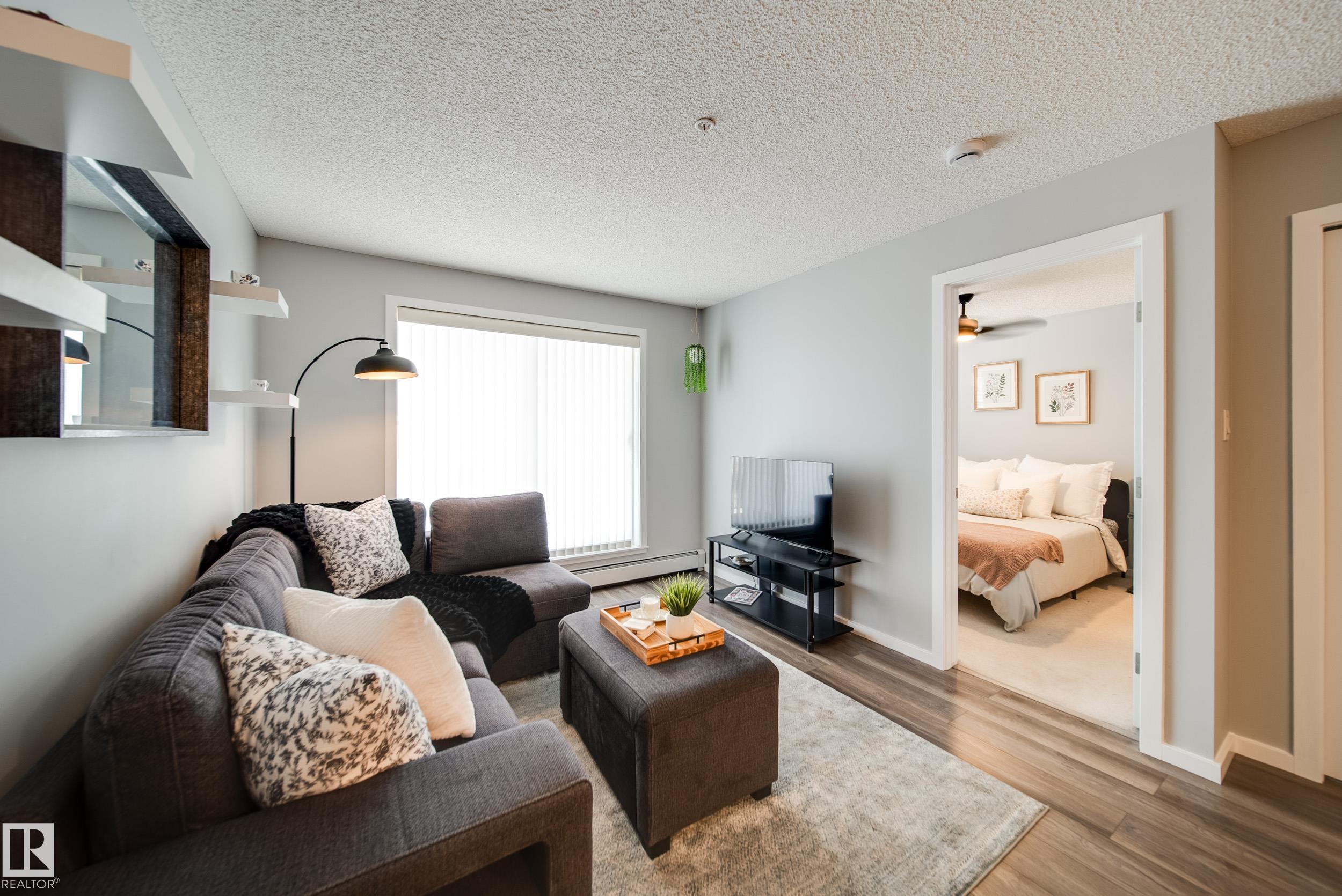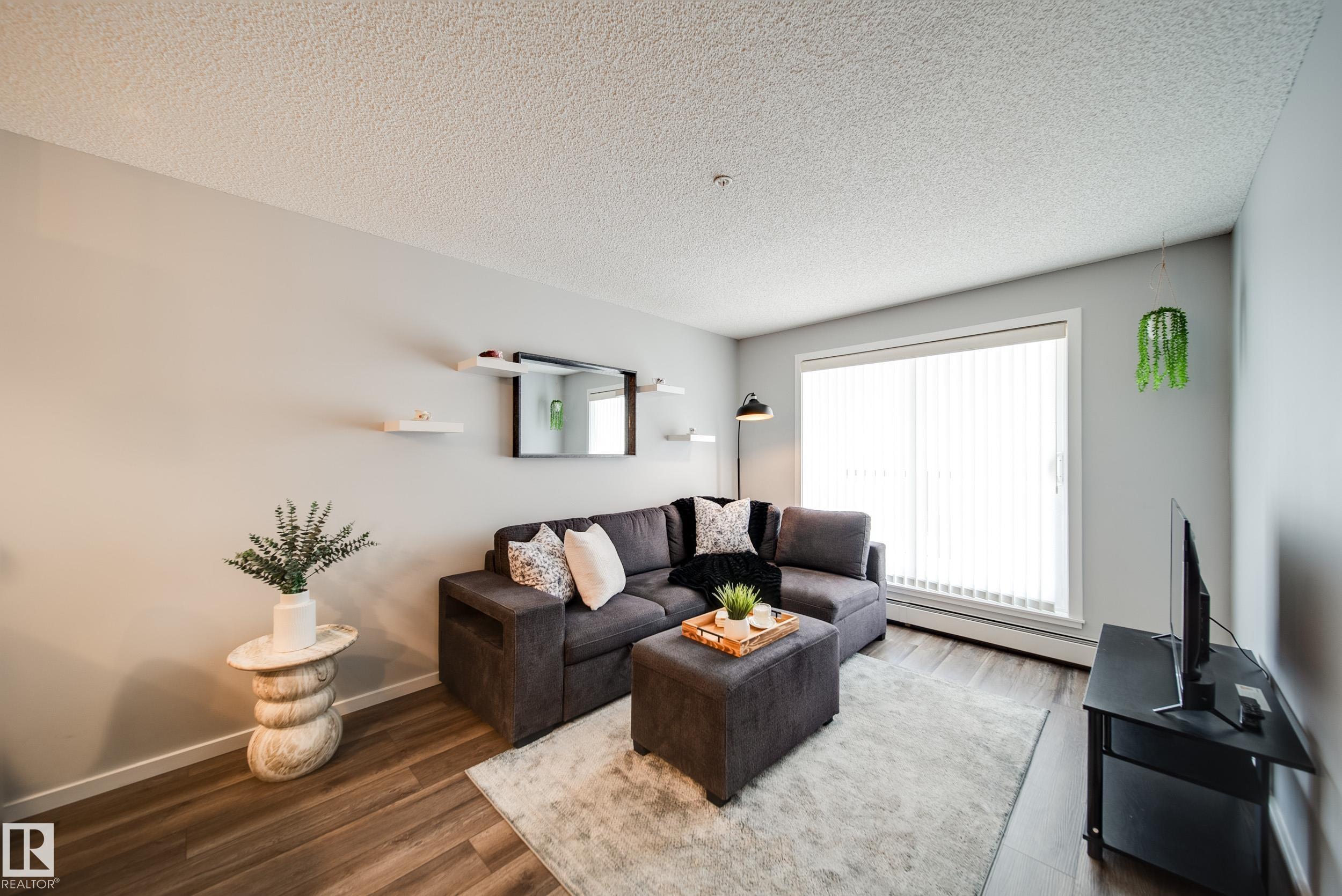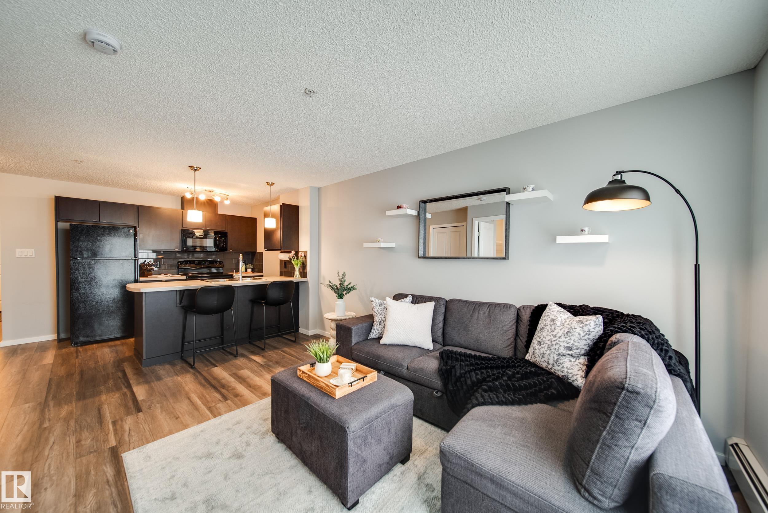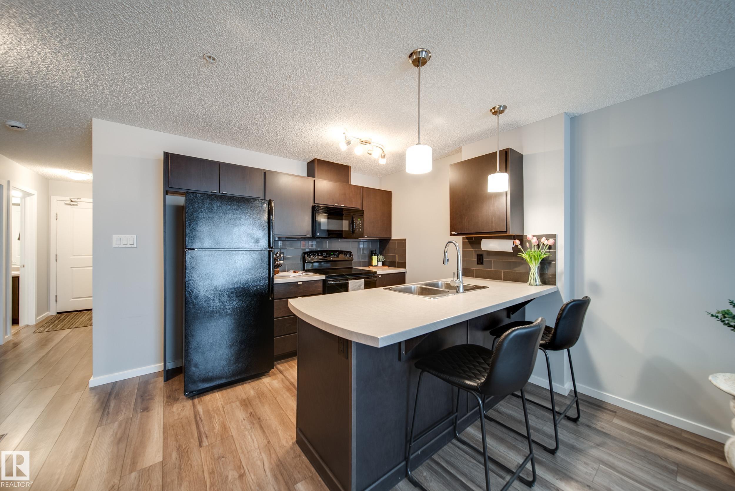 STUNNING RIVER VALLEY VIEWS! Welcome to The Avenue at Hermitage in Canon Ridge, where nature, convenience, and low maintenance living come together. This well maintained 2 bed, 2 bath condo offers a bright open concept layout w/ a spacious living room that flows into the functional kitchen featuring island seating & ample cabinetry. Step onto your private covered patio & take in the peaceful river valley views overlooking trails and green space, perfect for morning coffee or evening relaxation. The primary suite offers beautiful views, a walkthrough closet, and 4pc ensuite. The 2nd bedroom is thoughtfully positioned on the opposite side of the unit near an additional full bathroom, ideal for guests, roommates, or a home office. Complete with in-suite brand new washer and dryer & 1 titled underground parking stall. Enjoy secure building access, visitor parking, nearby parks, shopping, schools, transit, & quick access to the Yellowhead & Henday. Heat & water included in condo fees. Call this home!