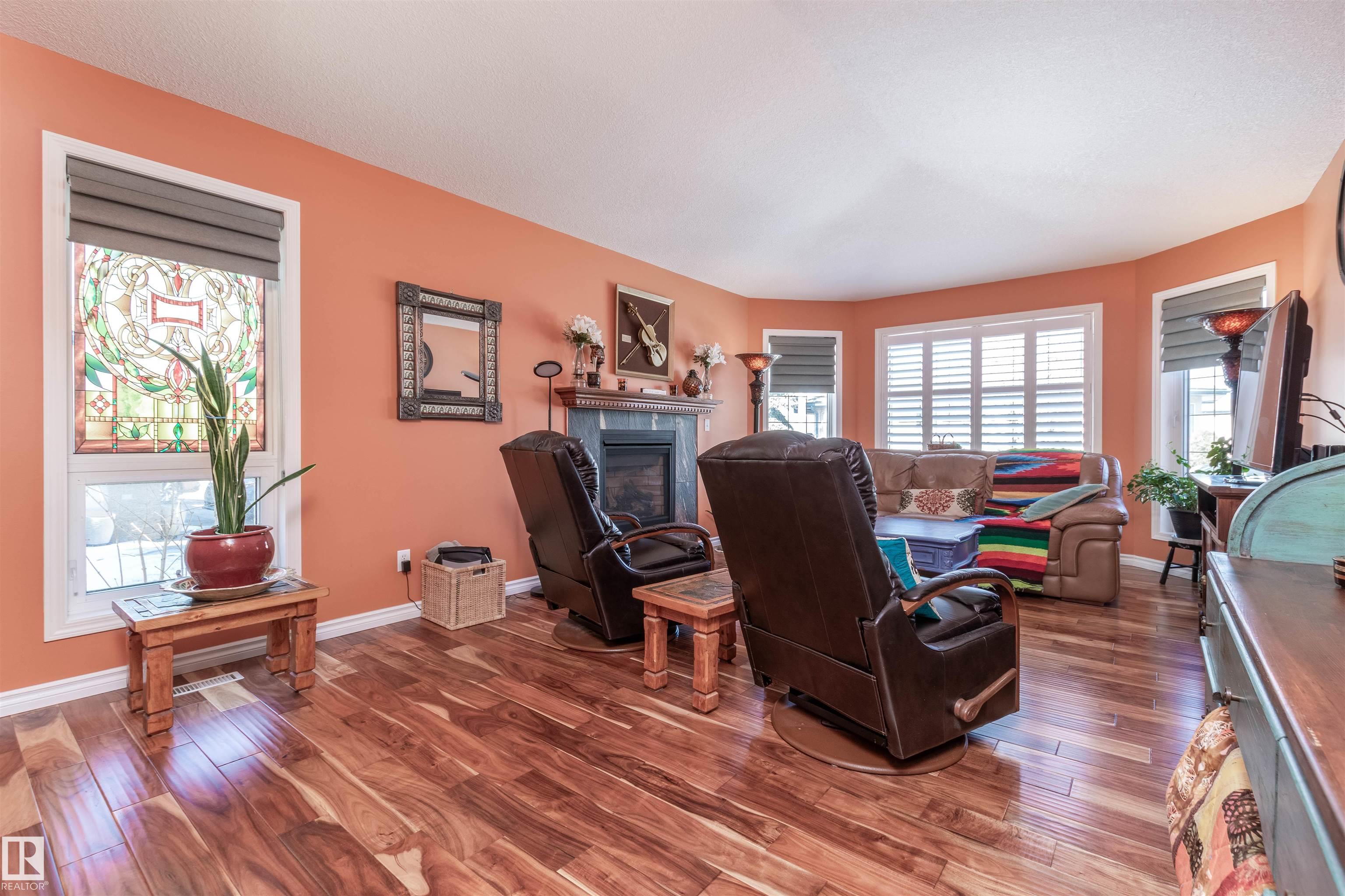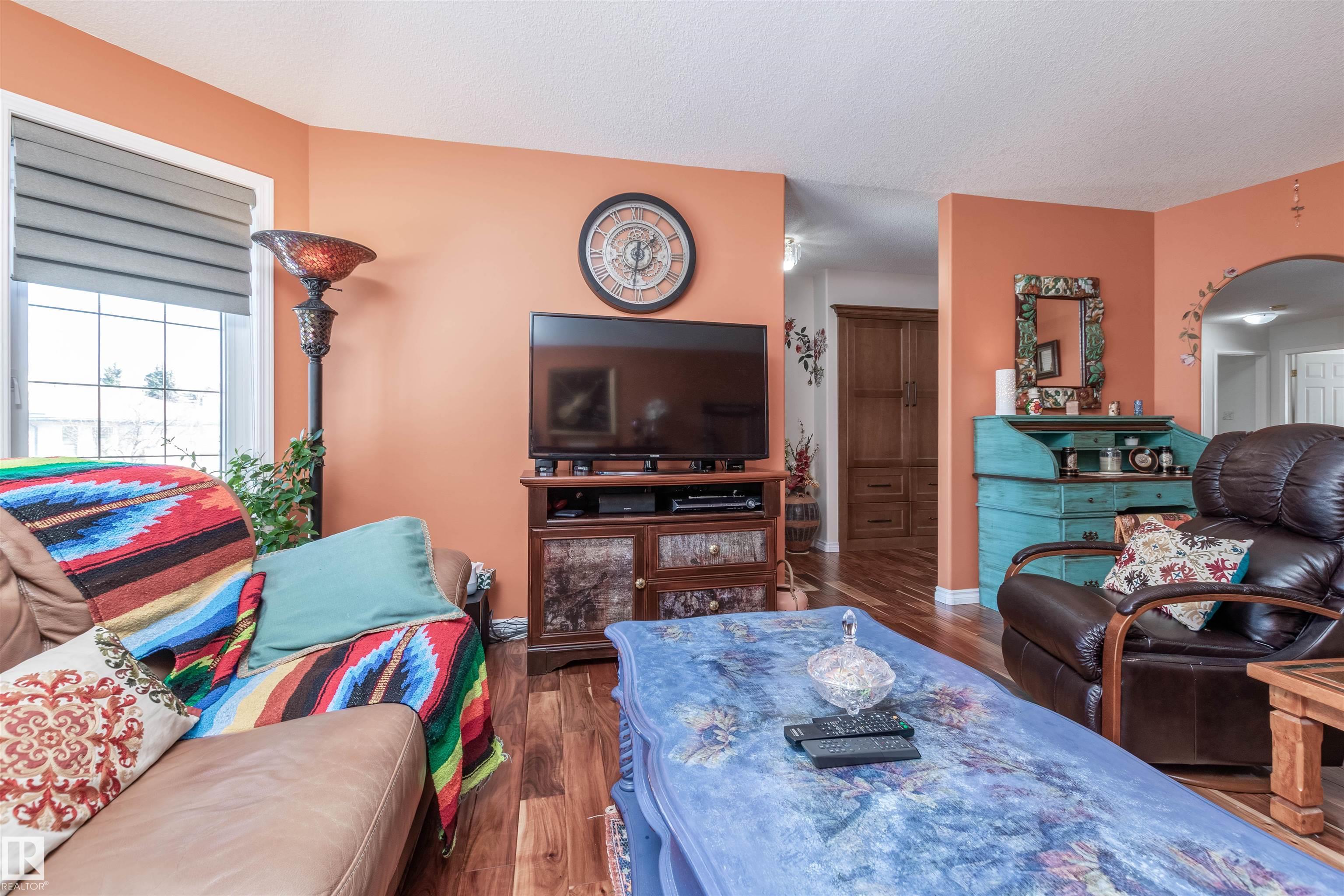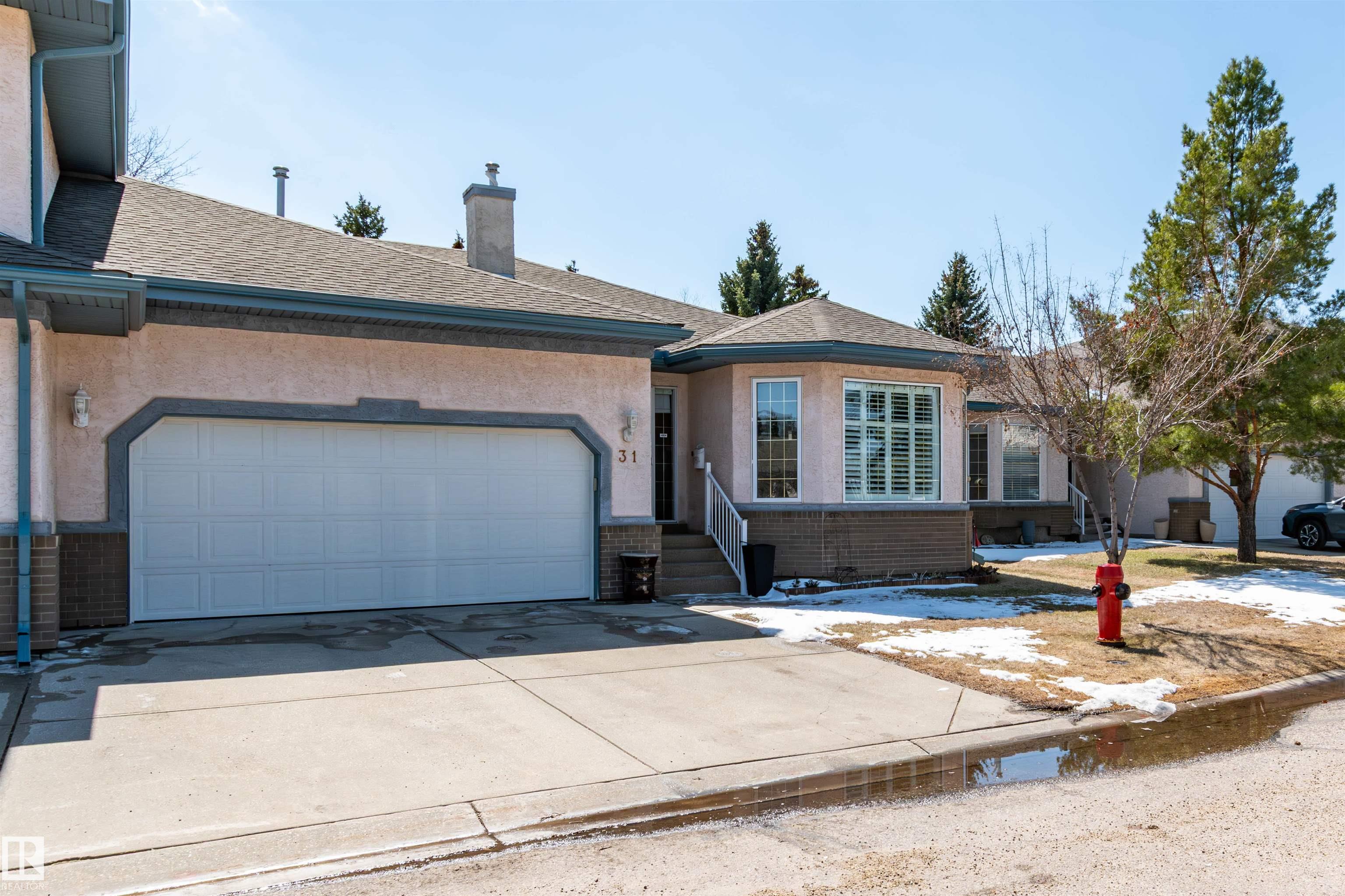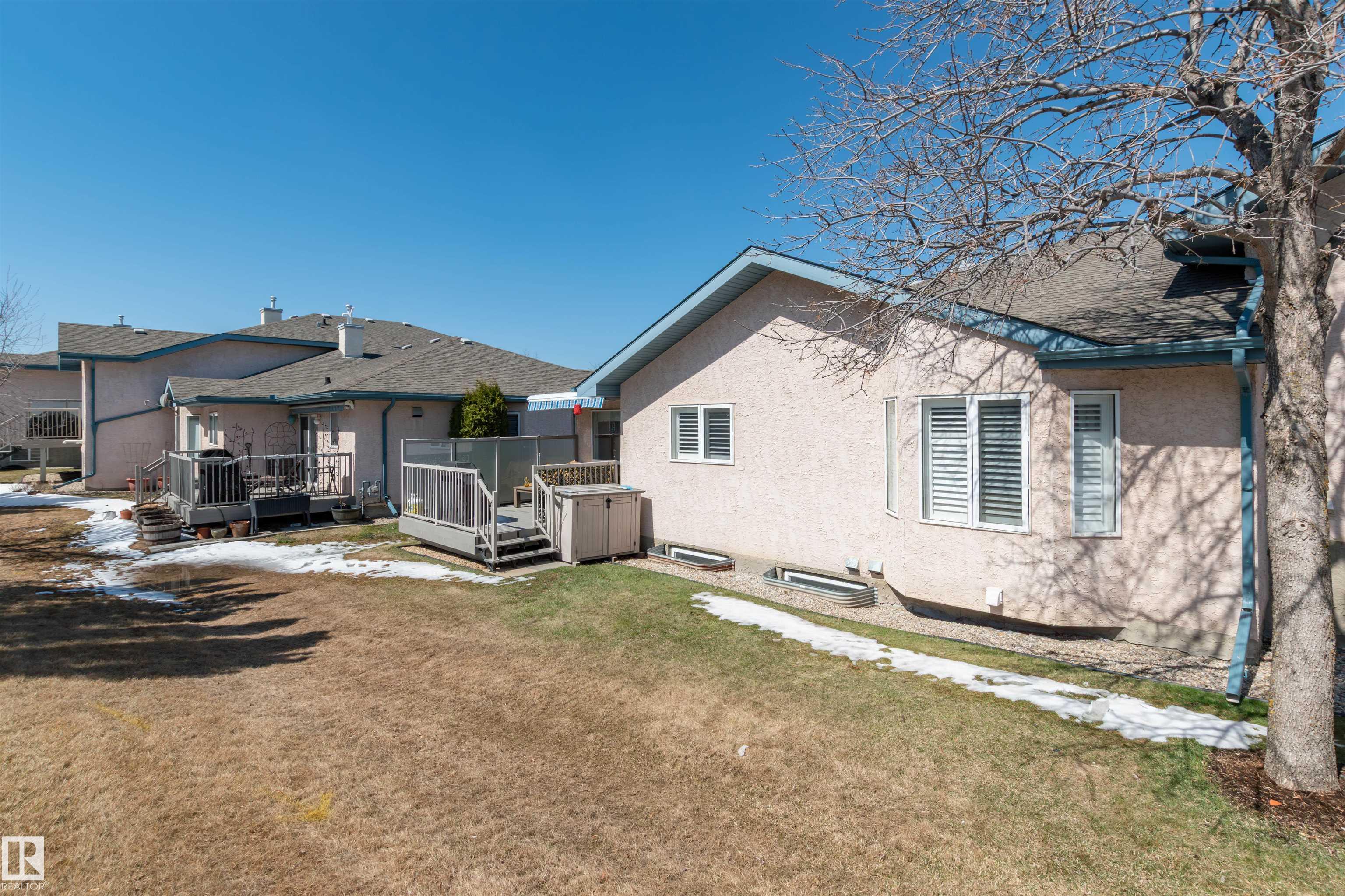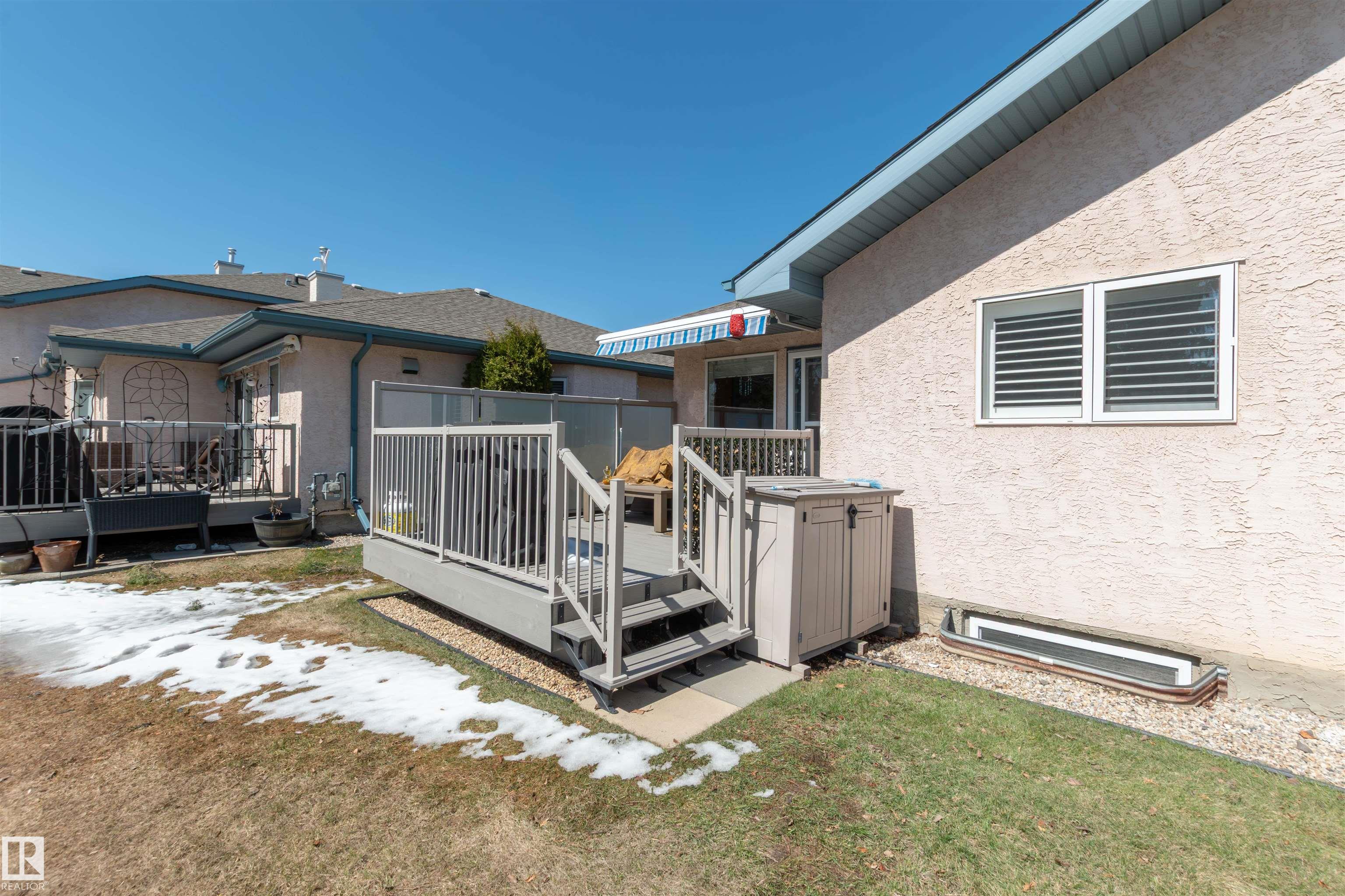 Executive condo living at it's finest! Estates Village is perfectly situated in Sherwood Park, close to ALL amenities, with ease of access (without proximity noise!) to the Anthony Henday ring road. Meticulously maintained 3 bedroom, 3 bath (4 piece Primary Ensuite!) bungalow unit with numerous enticing, quality upgrades. Gorgeous hand scrapped hardwood throughout the main floor. Newer carpeting with premium underlay in the main floor bedrooms. Custom wooden window shutters installed in the living room and primary bedroom. The custom designed, luxury wood storage and closet/cabinet unit, seamlessly integrates the foyer. Convenient main floor laundry room. LED lighting throughout. Newer composite deck with a Southern exposure!! Fully finished basement with a bedroom, full bath, Hobby Room, and plenty of additional storage. Water softener included. Truck ready garage (22 ft depth), fully insulated AND heated. The premium Epoxy floor in the garage makes for dust free parking, or perhaps a Man Cave escape?