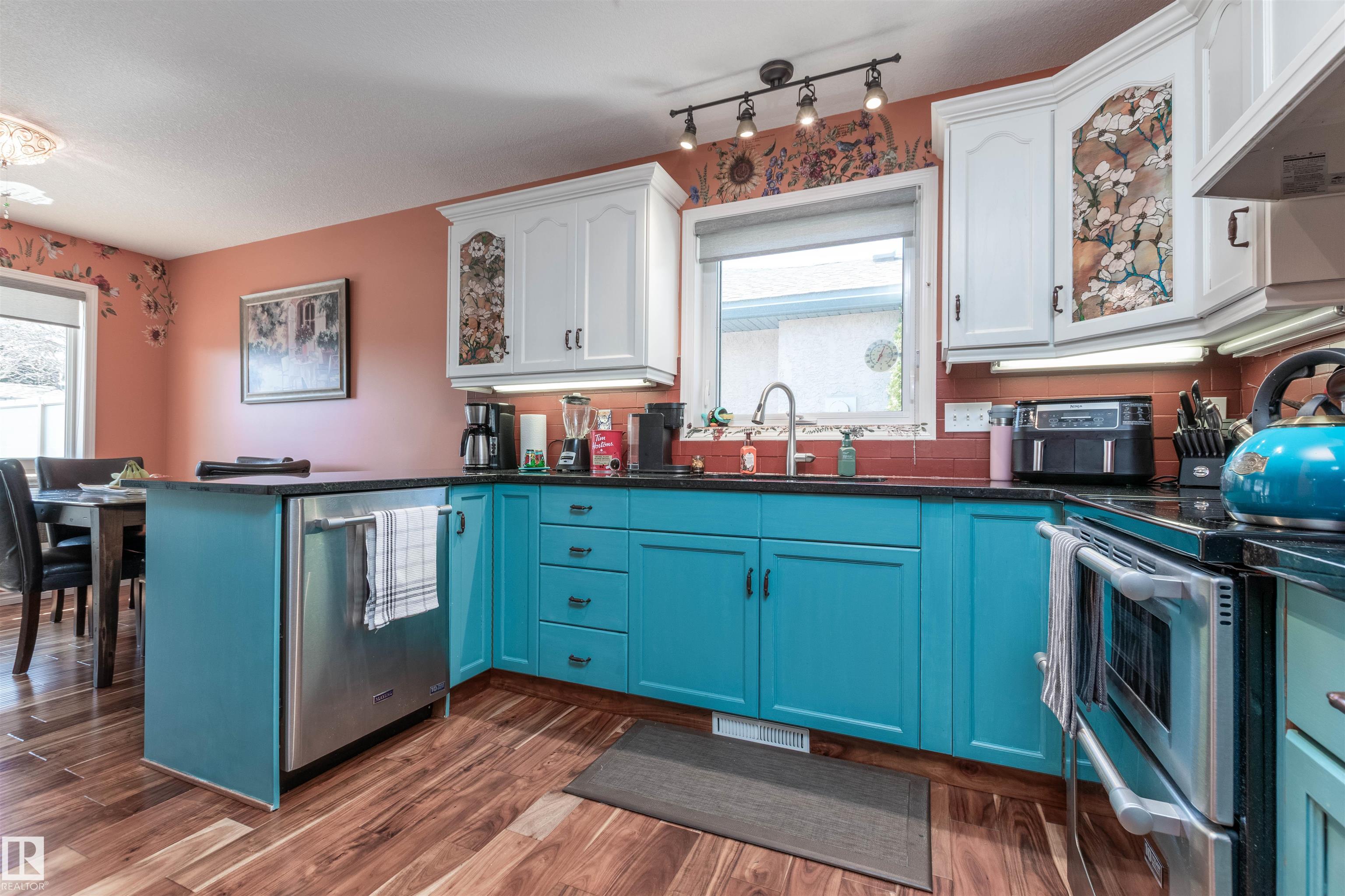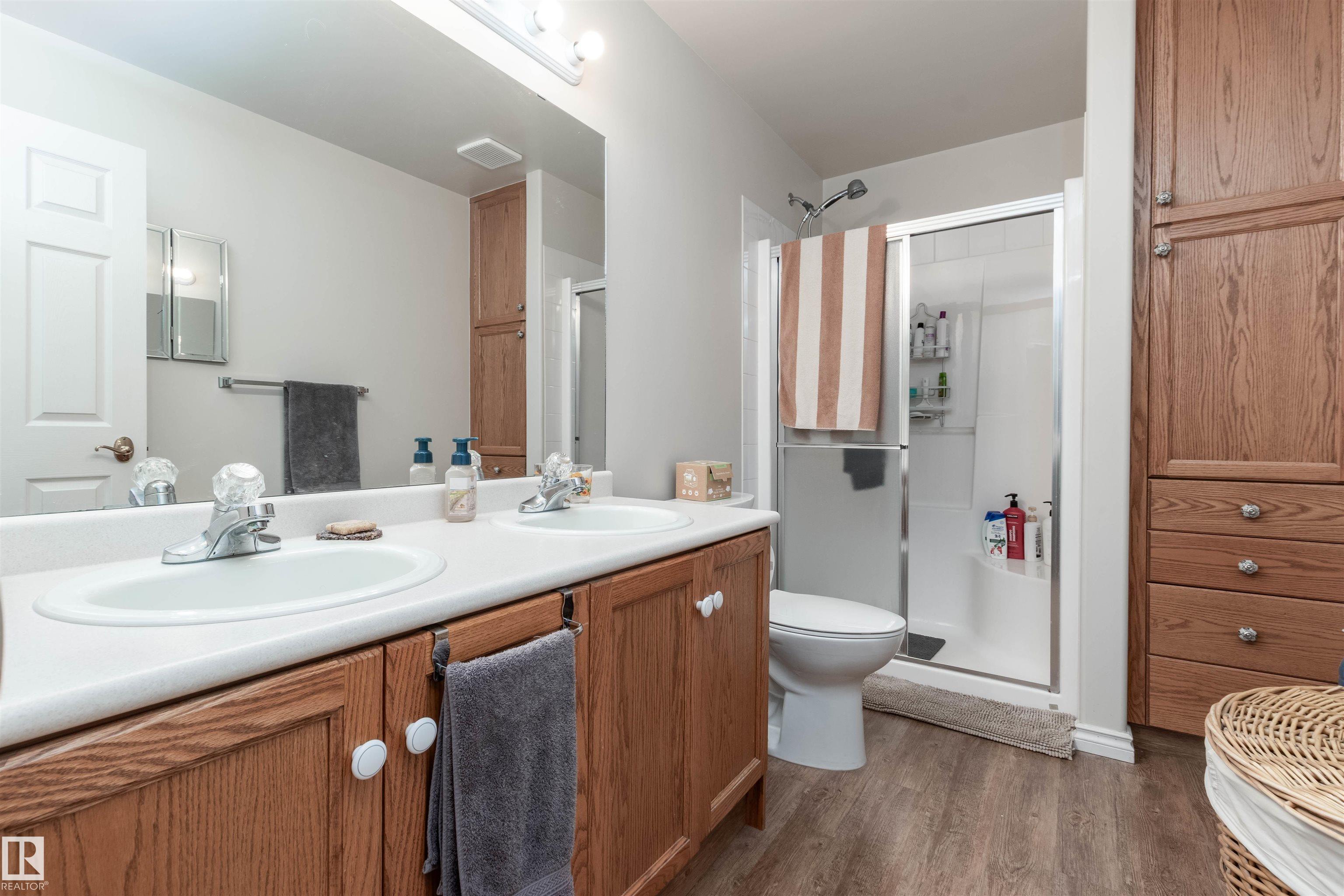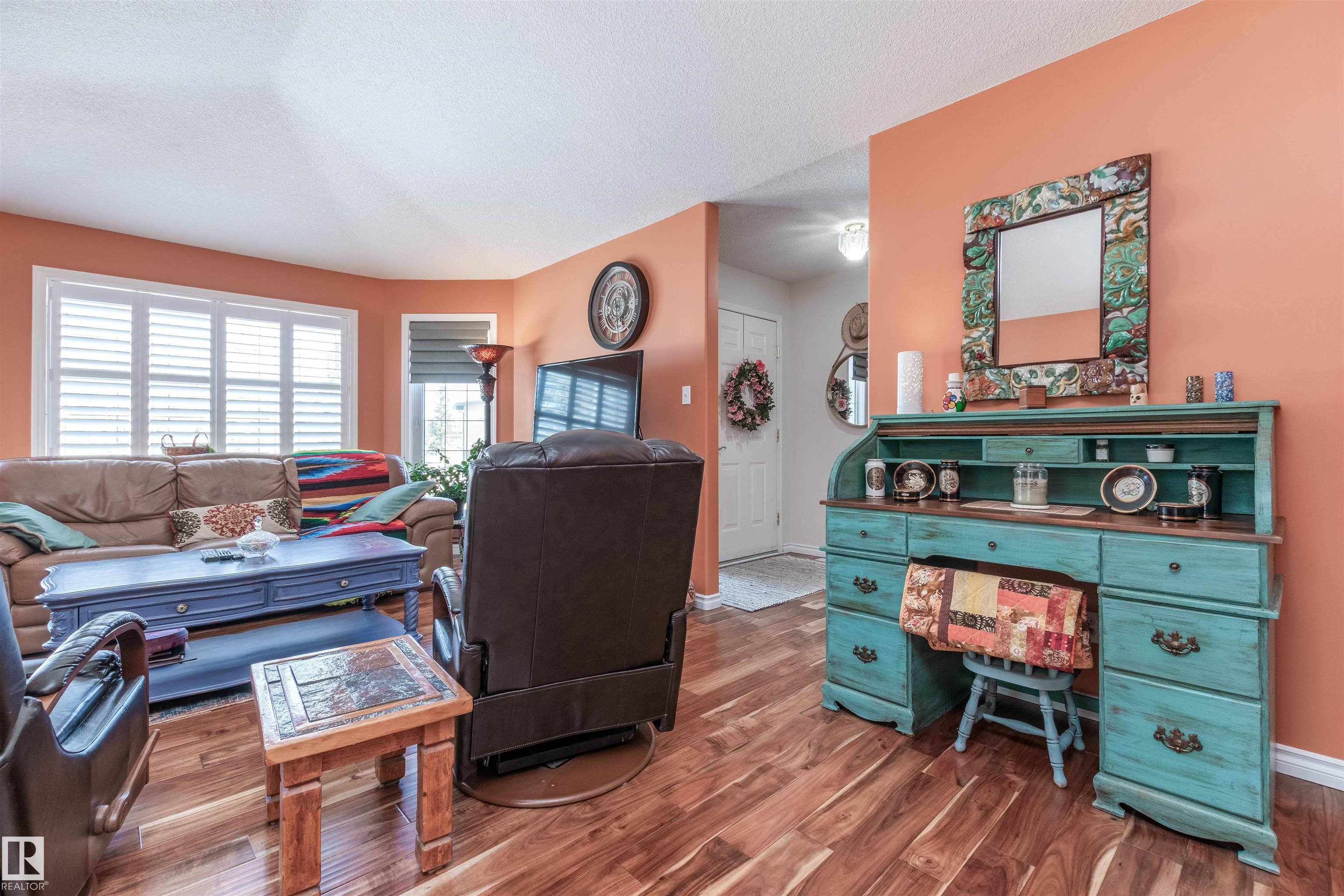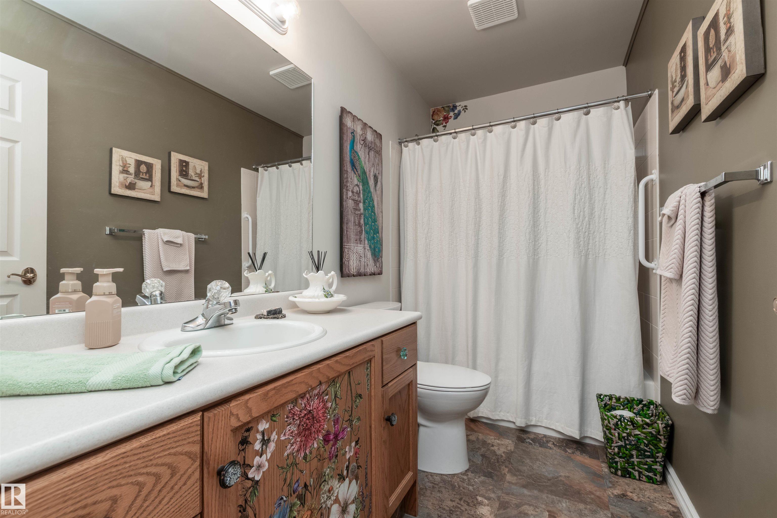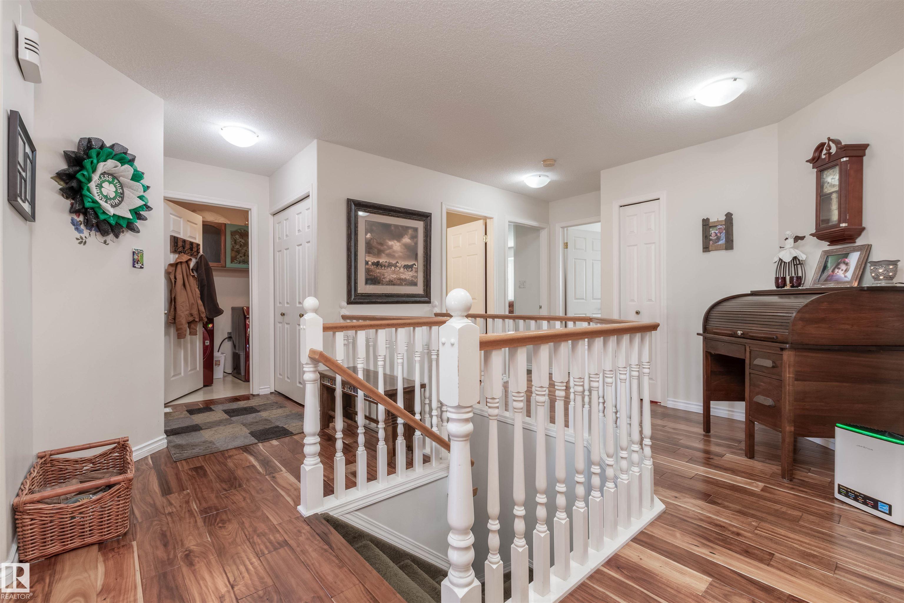 Executive condo living at it's finest! Estates Village is perfectly situated in Sherwood Park, close to ALL amenities, with ease of access (without proximity noise!) to the Anthony Henday ring road. Meticulously maintained 3 bedroom, 3 bath (4 piece Primary Ensuite!) bungalow unit with numerous enticing, quality upgrades. Gorgeous hand scrapped hardwood throughout the main floor. Newer carpeting with premium underlay in the main floor bedrooms. Custom wooden window shutters installed in the living room and primary bedroom. The custom designed, luxury wood storage and closet/cabinet unit, seamlessly integrates the foyer. Convenient main floor laundry room. LED lighting throughout. Newer composite deck with a Southern exposure!! Fully finished basement with a bedroom, full bath, Hobby Room, and plenty of additional storage. Water softener included. Truck ready garage (22 ft depth), fully insulated AND heated. The premium Epoxy floor in the garage makes for dust free parking, or perhaps a Man Cave escape?