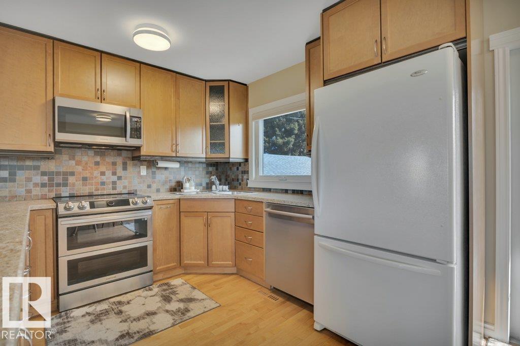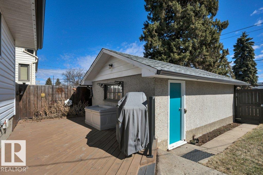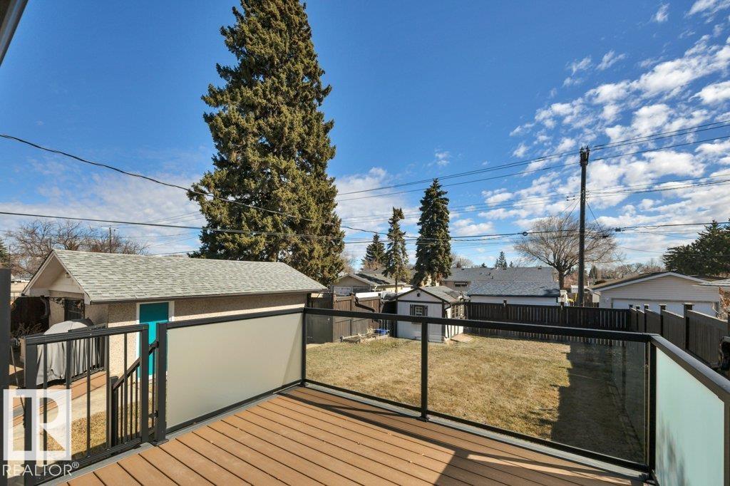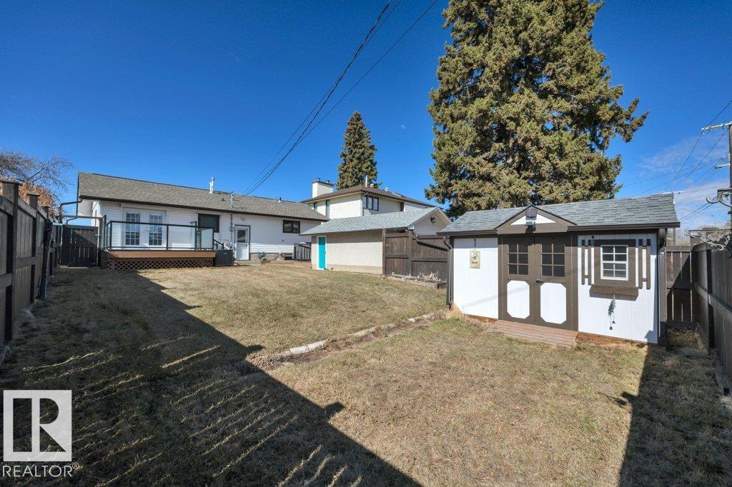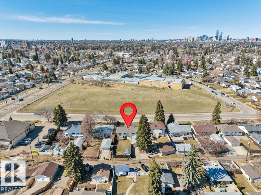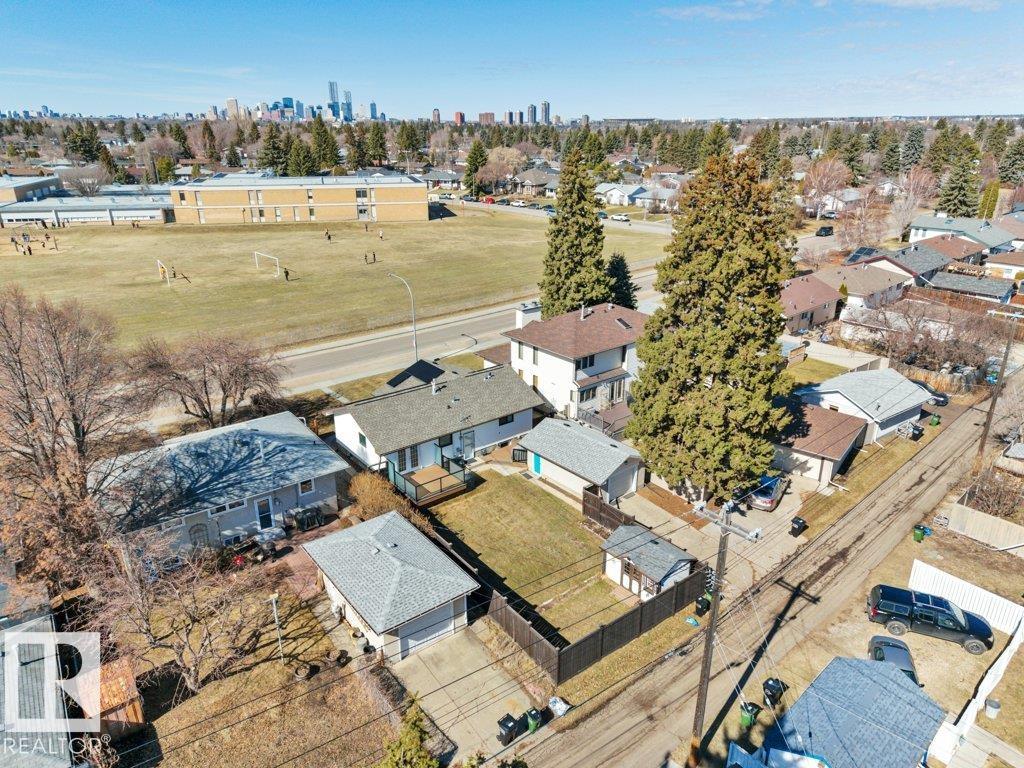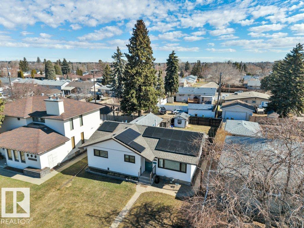 Welcome to a move in ready, fully renovated 1,052 SF bungalow located across from St. George Catholic K-12 school, complete with SOLAR! Let the kids go play where you can see them from your living room, or walk to school every day! Featuring 3 bedrooms upstairs, with a bright living room that has a view of the park and field. The kitchen and appliances were renovated (2018-2023) along with the barrier-free main floor washroom (2025)! Downstairs you have another renovated washroom, additional bedroom, a family room with built in speaker wiring for entertainment, laundry and a large amount of additional storage. Roof (2023), Gemstone lighting (2024), furnace (2019), A/C (2021), composite deck (2022), triple pane windows (2023) and Hunter Douglas window coverings (2023) (some motorized) has all been done. All that plus great access to downtown Edmonton, the River Valley, Anthony Henday Drive and shopping!