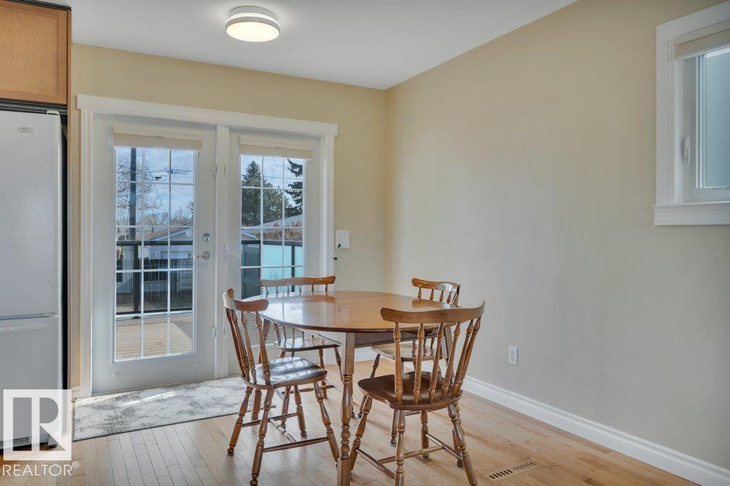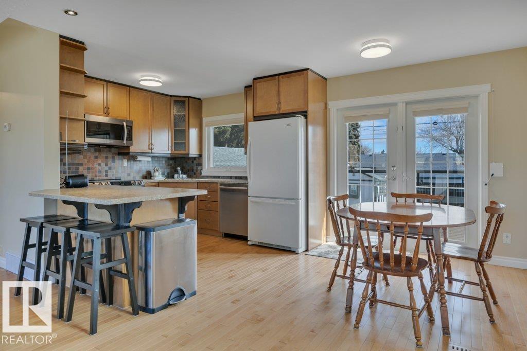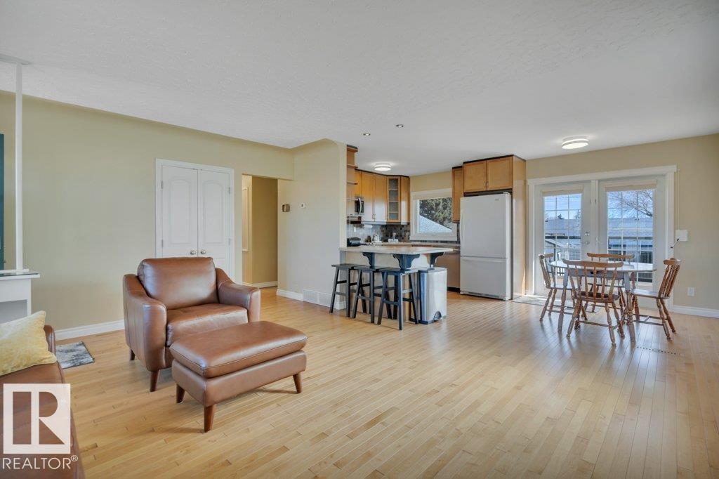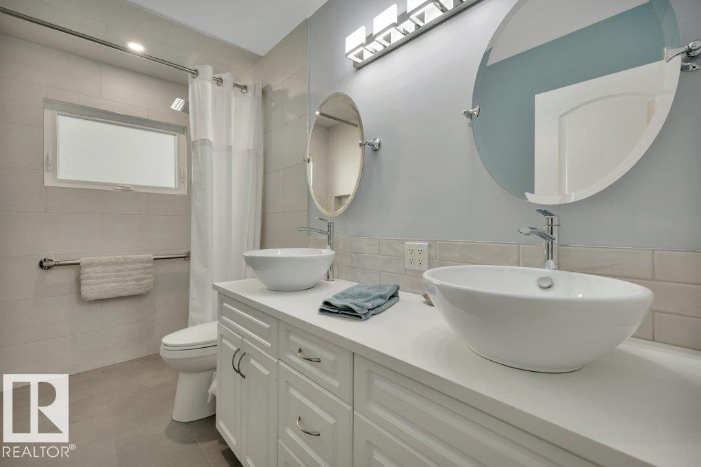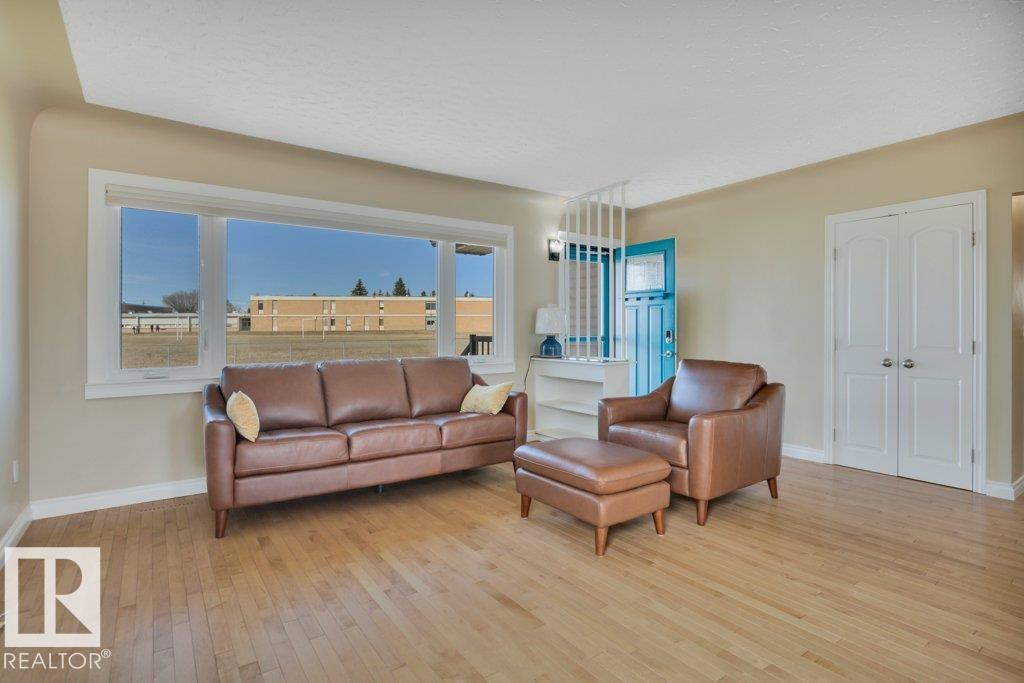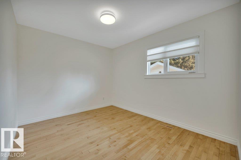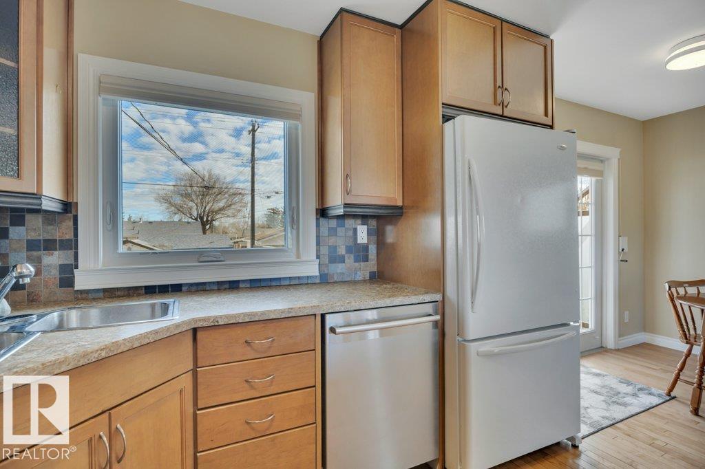 Welcome to a move in ready, fully renovated 1,052 SF bungalow located across from St. George Catholic K-12 school, complete with SOLAR! Let the kids go play where you can see them from your living room, or walk to school every day! Featuring 3 bedrooms upstairs, with a bright living room that has a view of the park and field. The kitchen and appliances were renovated (2018-2023) along with the barrier-free main floor washroom (2025)! Downstairs you have another renovated washroom, additional bedroom, a family room with built in speaker wiring for entertainment, laundry and a large amount of additional storage. Roof (2023), Gemstone lighting (2024), furnace (2019), A/C (2021), composite deck (2022), triple pane windows (2023) and Hunter Douglas window coverings (2023) (some motorized) has all been done. All that plus great access to downtown Edmonton, the River Valley, Anthony Henday Drive and shopping!